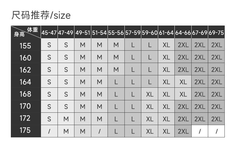 S, M, L, XL, XXL