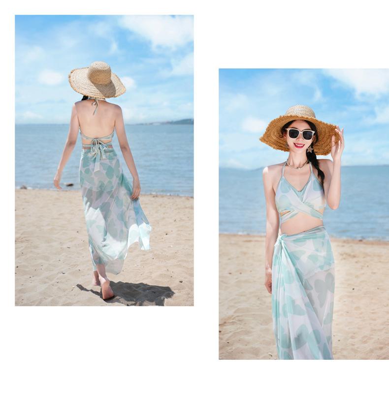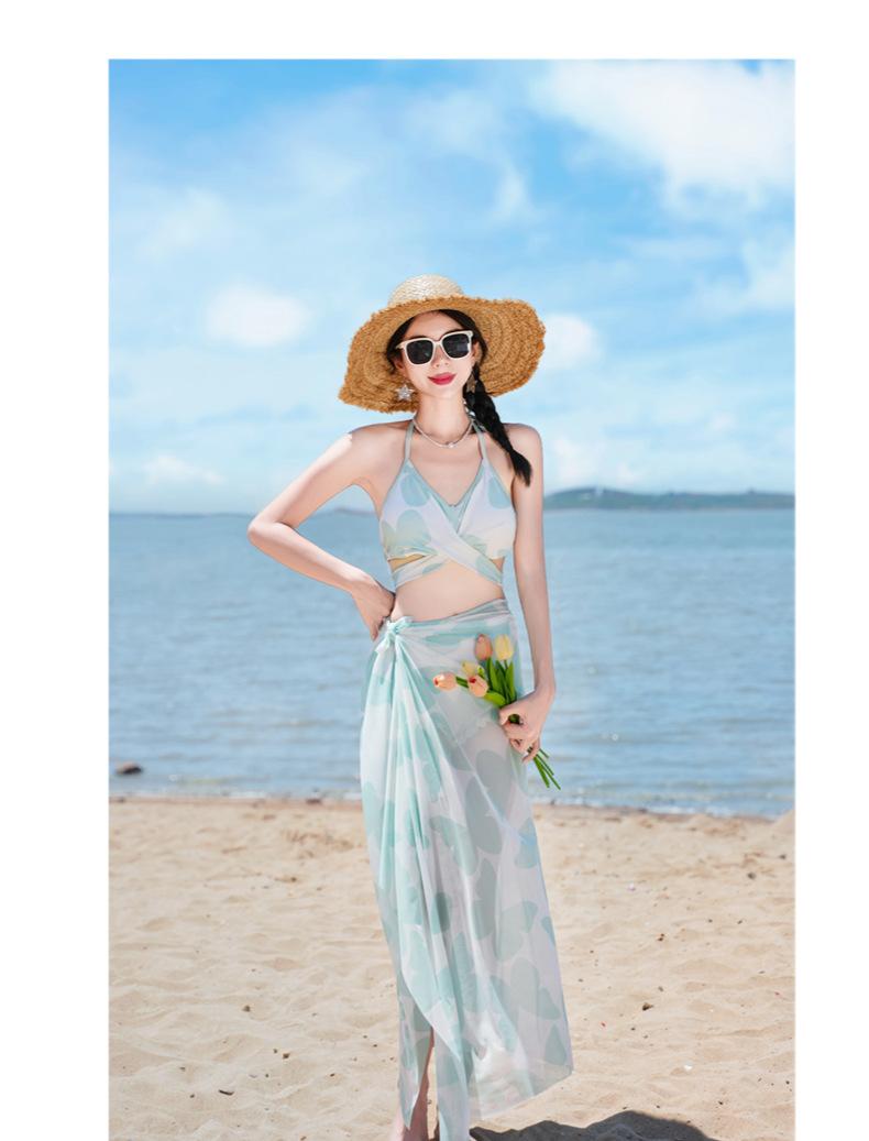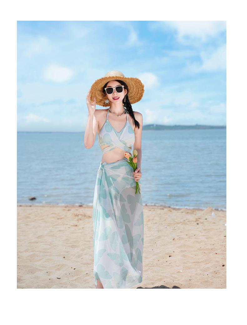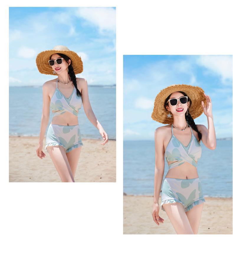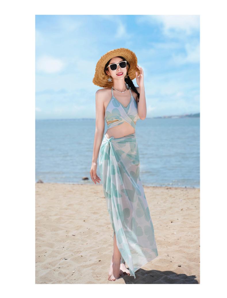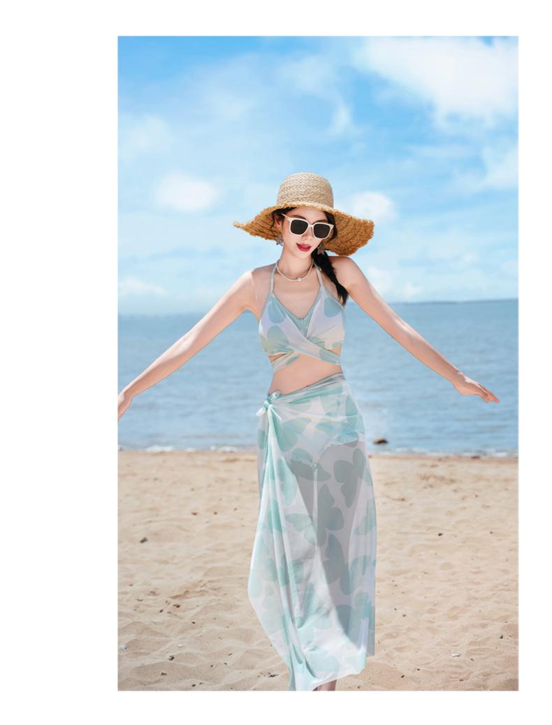 Traje de baño de bikini de tres piezas dividido para mujer, traje de baño bohemio sexy para vacaciones en la playa de aguas termales