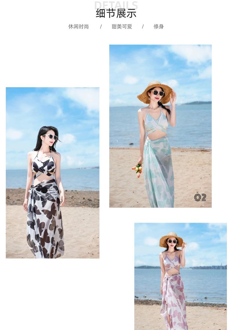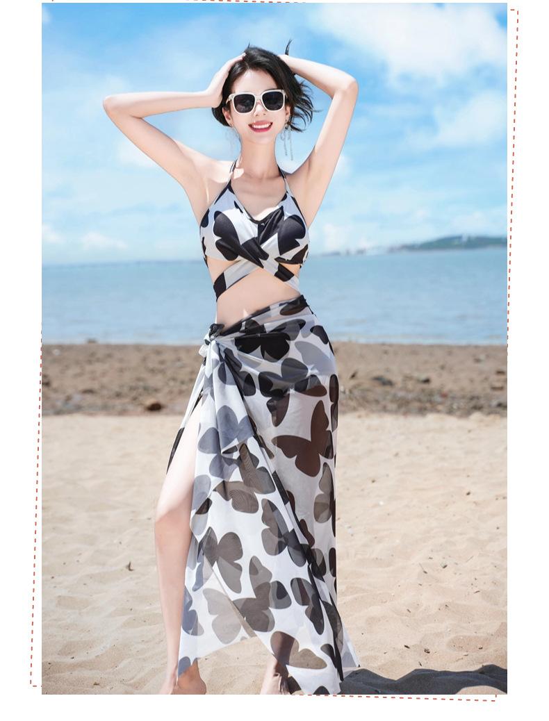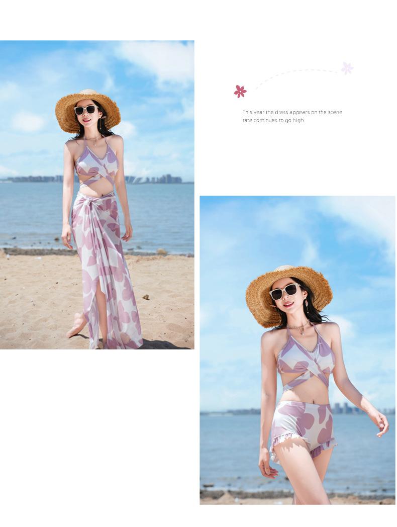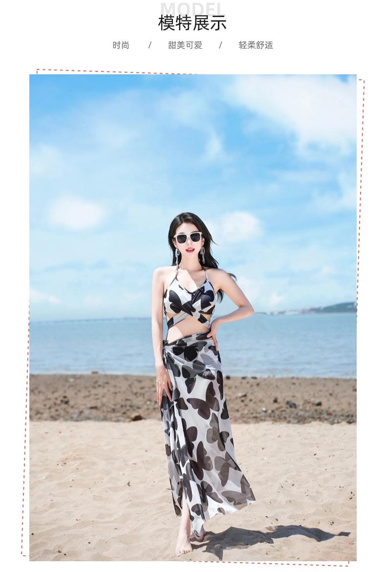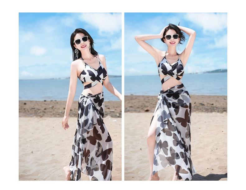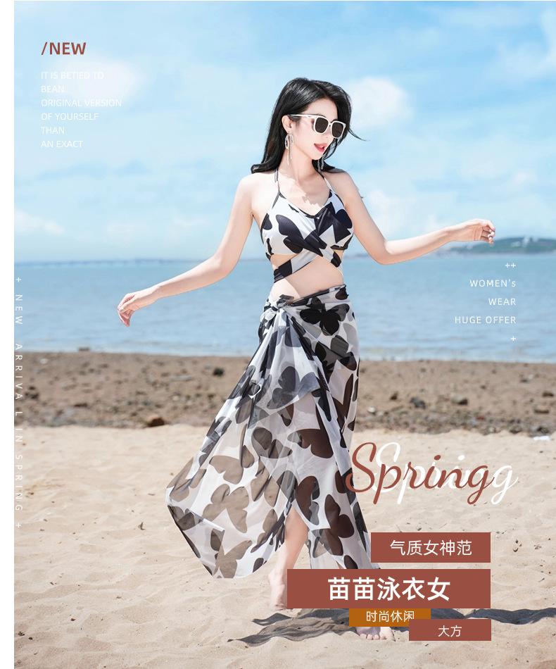 Traje de baño de bikini de tres piezas dividido para mujer, traje de baño bohemio sexy para vacaciones en la playa de aguas termales
