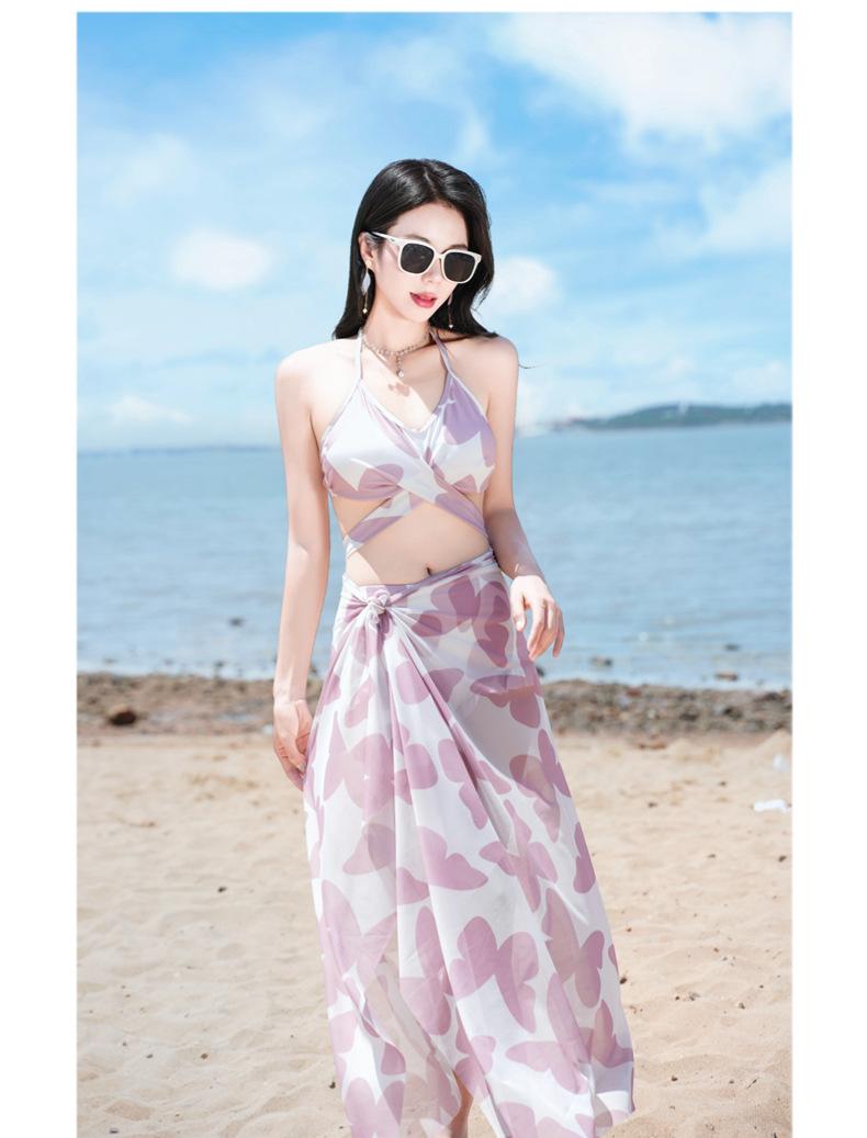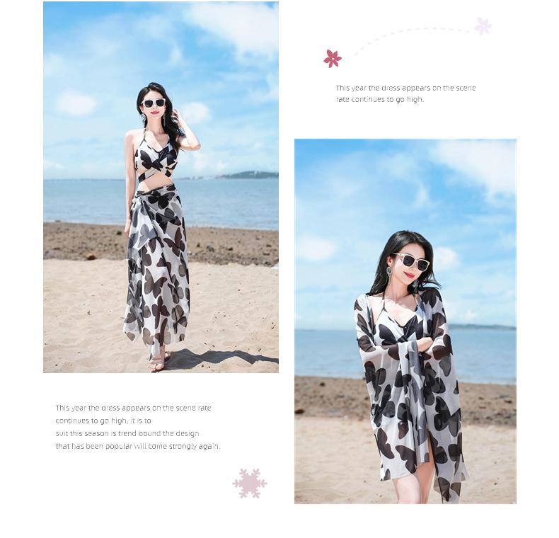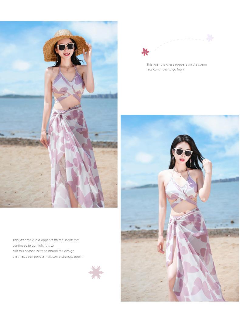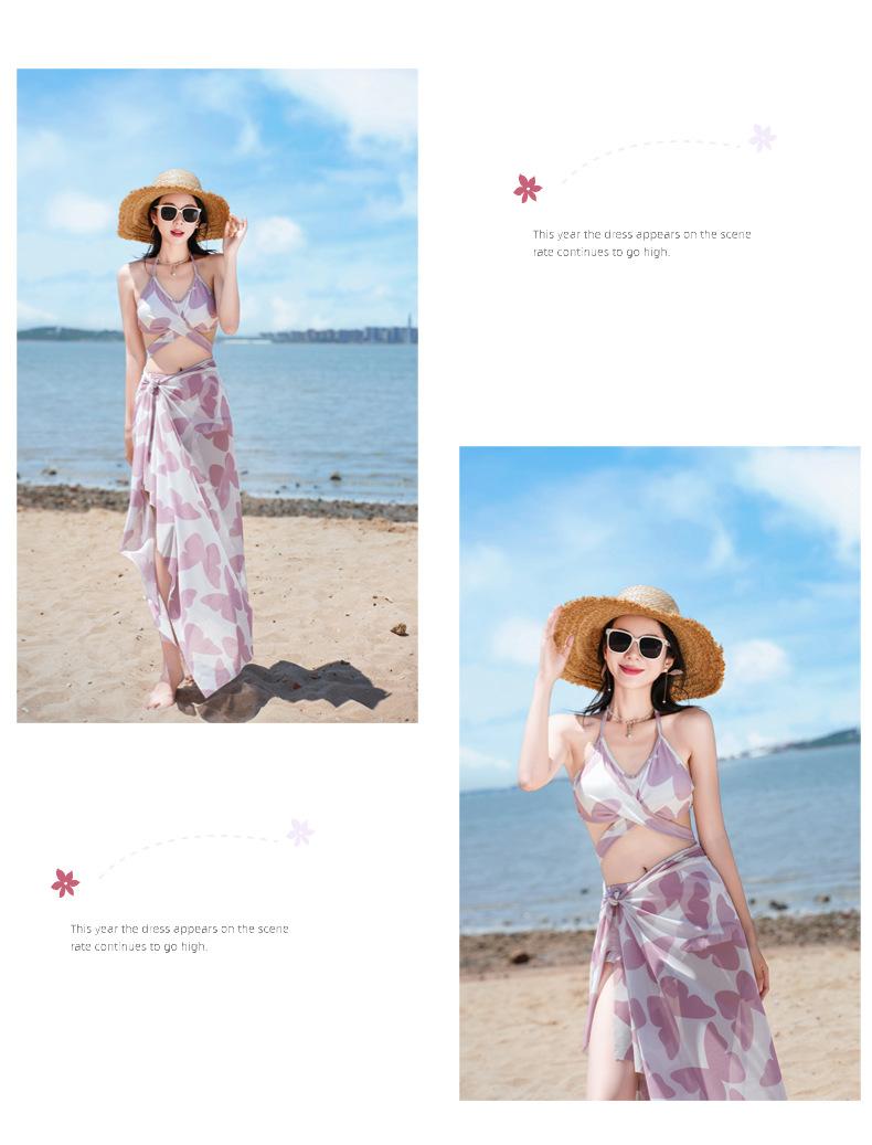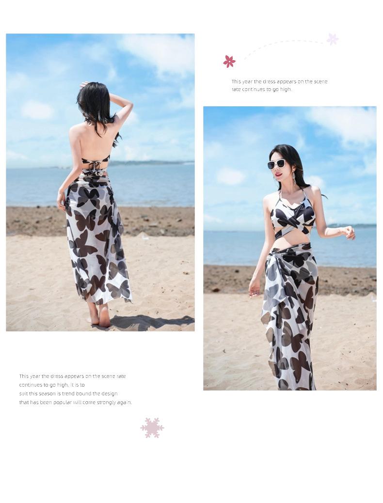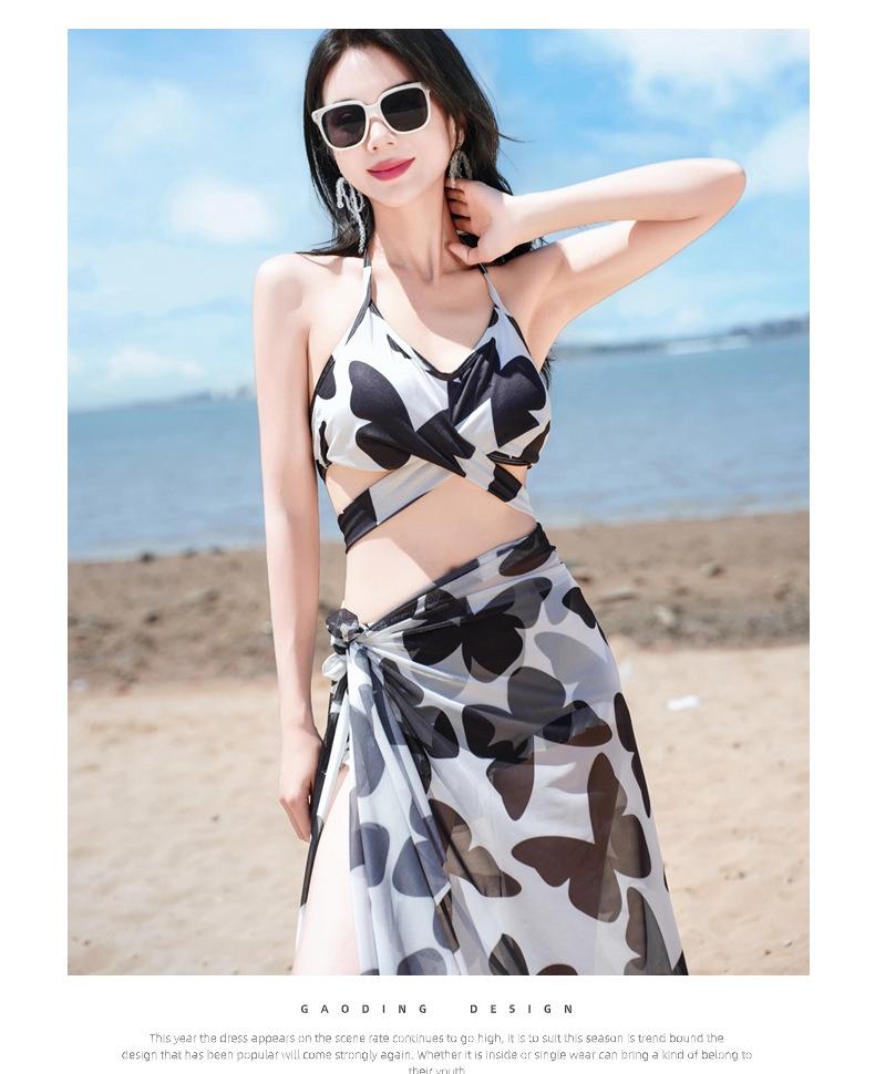 Traje de baño de bikini de tres piezas dividido para mujer, traje de baño bohemio sexy para vacaciones en la playa de aguas termales