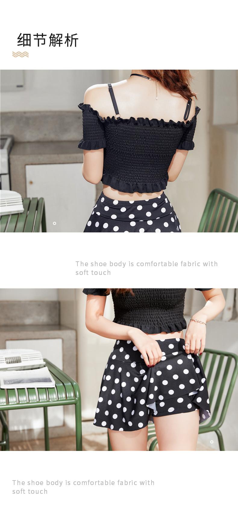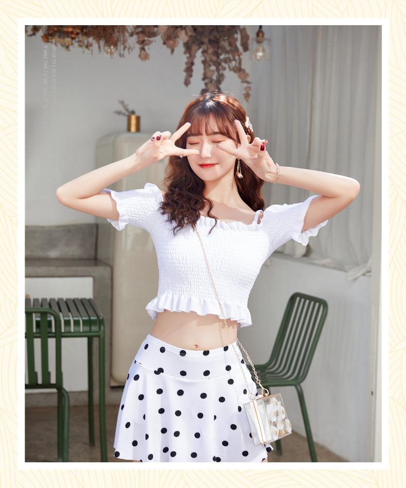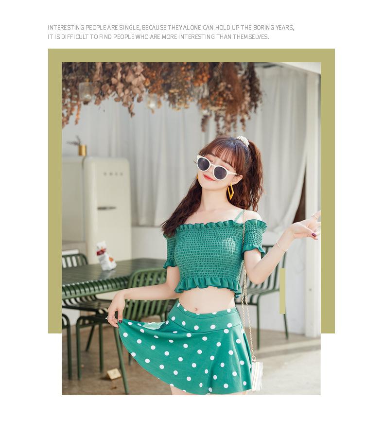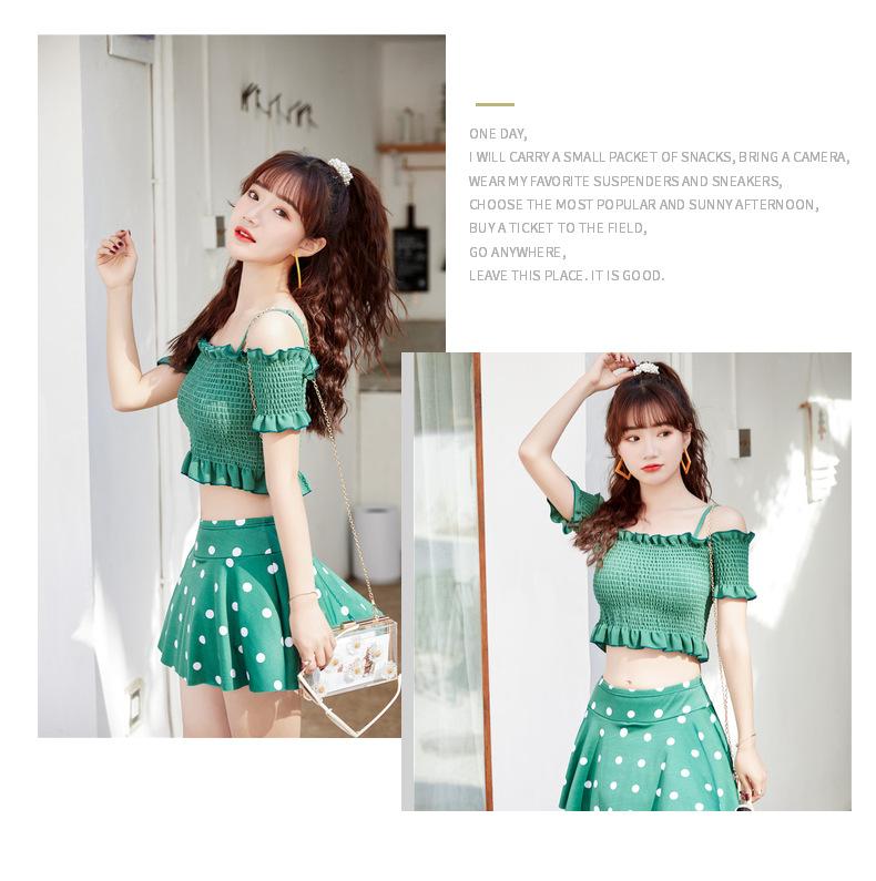 Traje de baño coreano Ins, muy vendido, para mujer, con falda dividida de dos piezas, estilo unicolor, estilo fresco, traje de baño de lunares ondulados para chica estudiante.