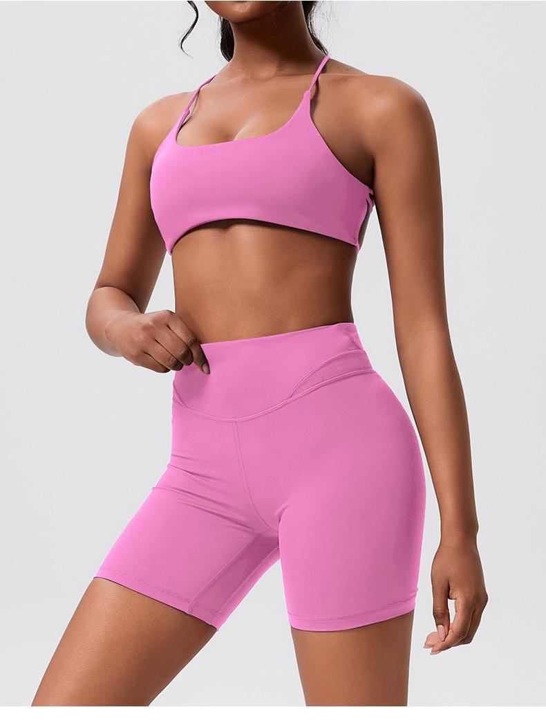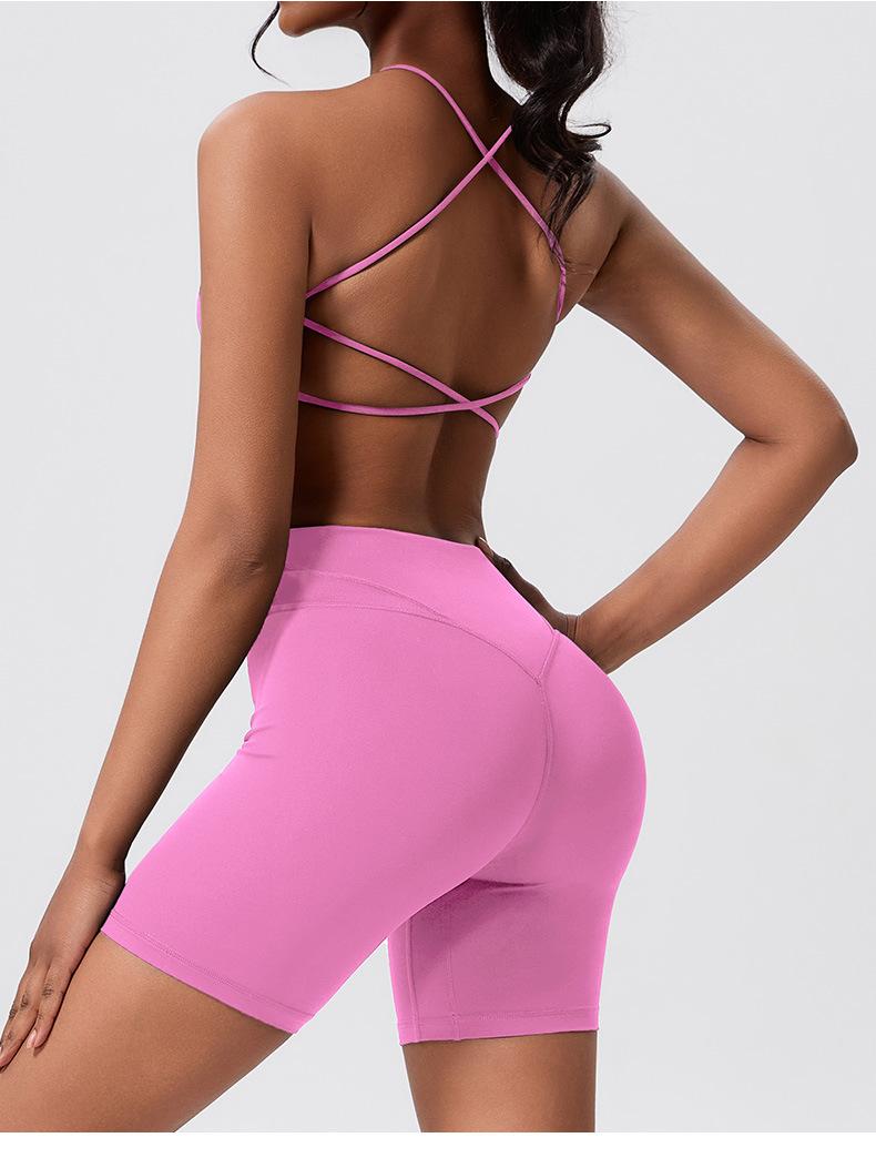 Nuevo traje de verano para correr al aire libre, fitness, hermoso chaleco deportivo adelgazante de espalda, cintura alta, traje de yoga ajustado a la cadera color melocotón