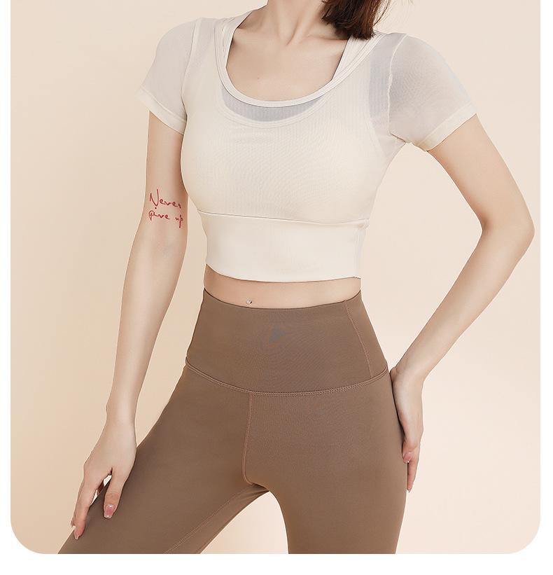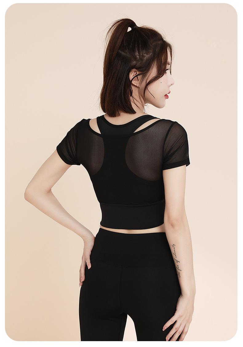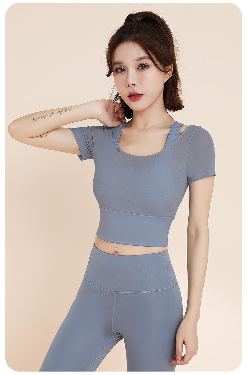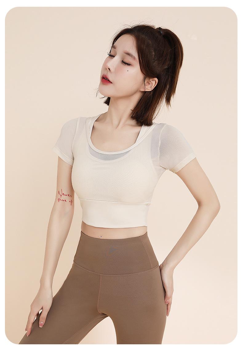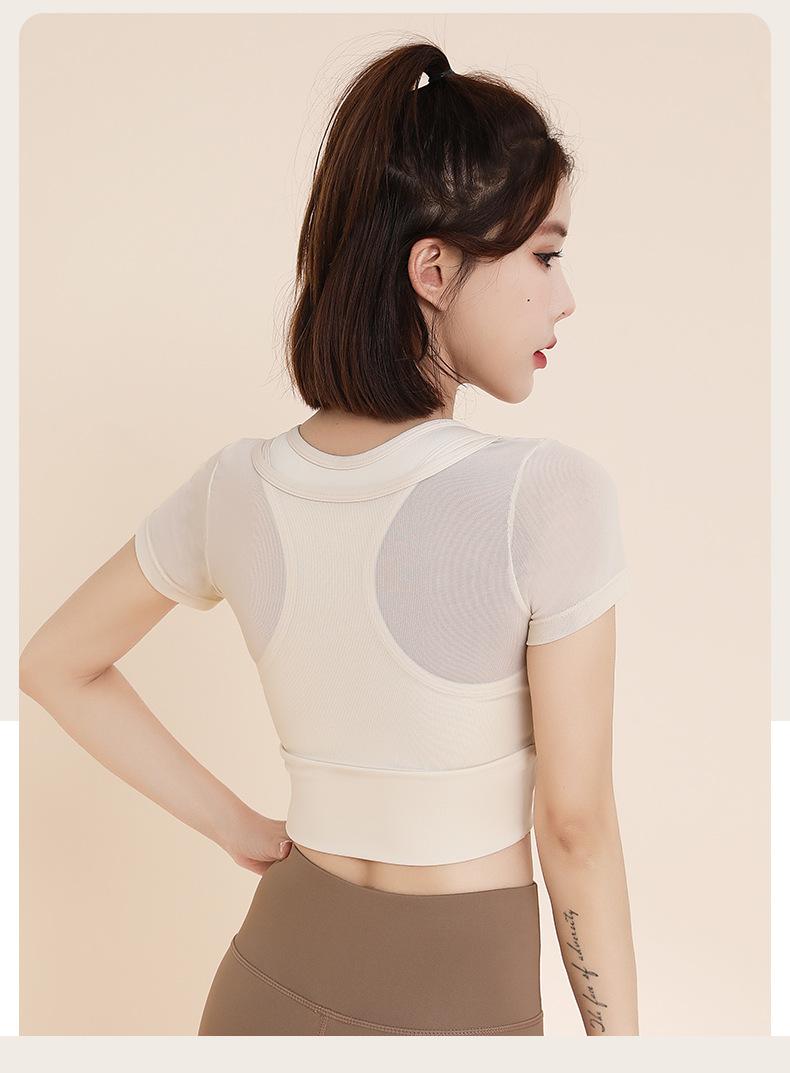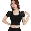 Traje de yoga de malla de secado rápido para mujer, de manga corta, ajustado, adelgazante, para deportes, correr, fitness, top de verano para mujer