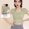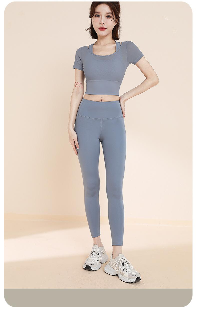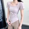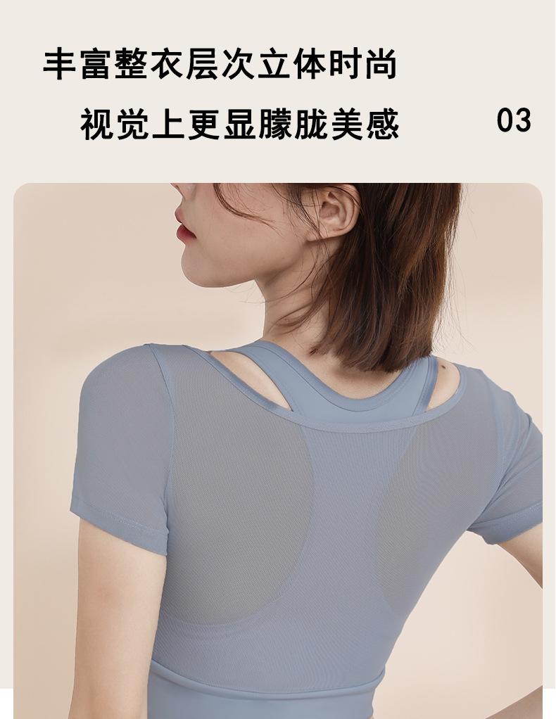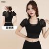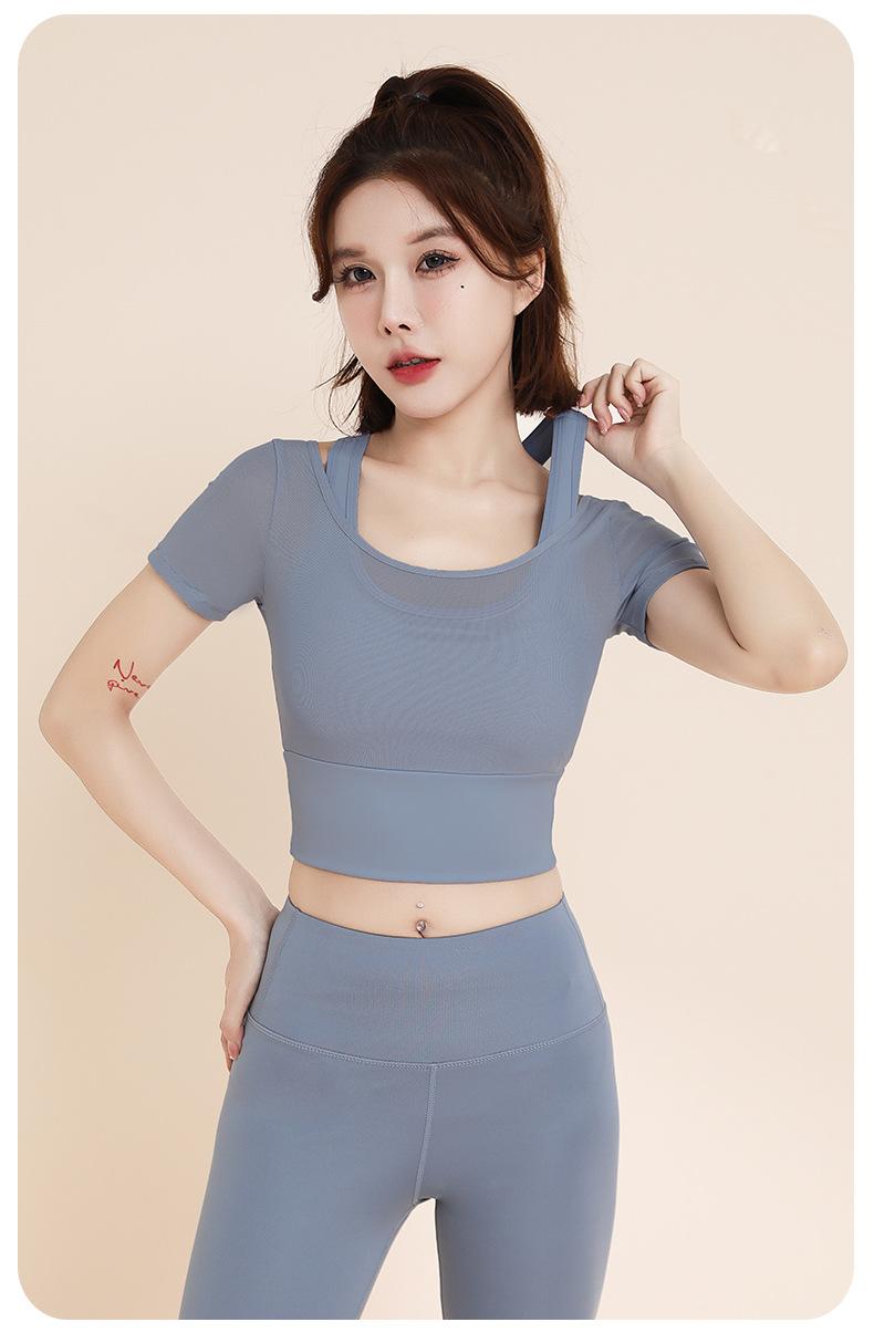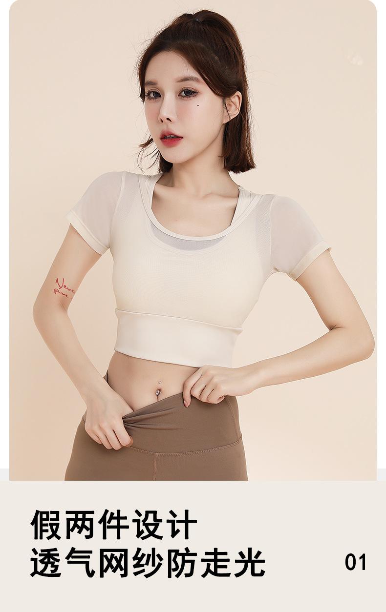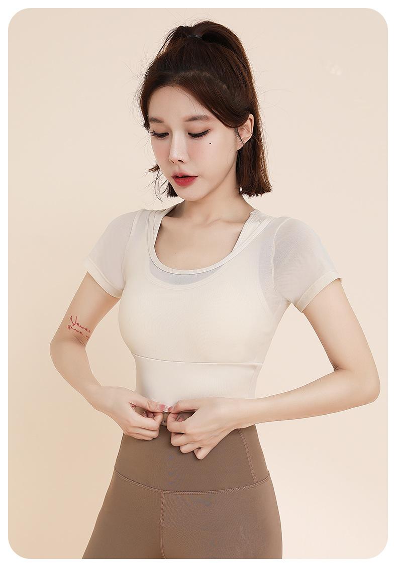 Traje de yoga de malla de secado rápido para mujer, de manga corta, ajustado, adelgazante, para deportes, correr, fitness, top de verano para mujer