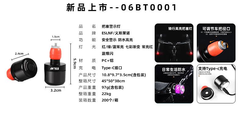 ESLNF Luz de palanca para bicicleta de montaña, luz de advertencia de seguridad para conducción nocturna, equipo de conducción para bicicleta de carretera, resistente al agua y con carga USB