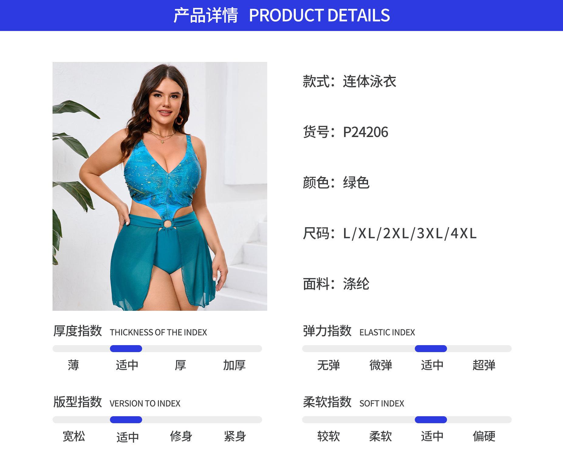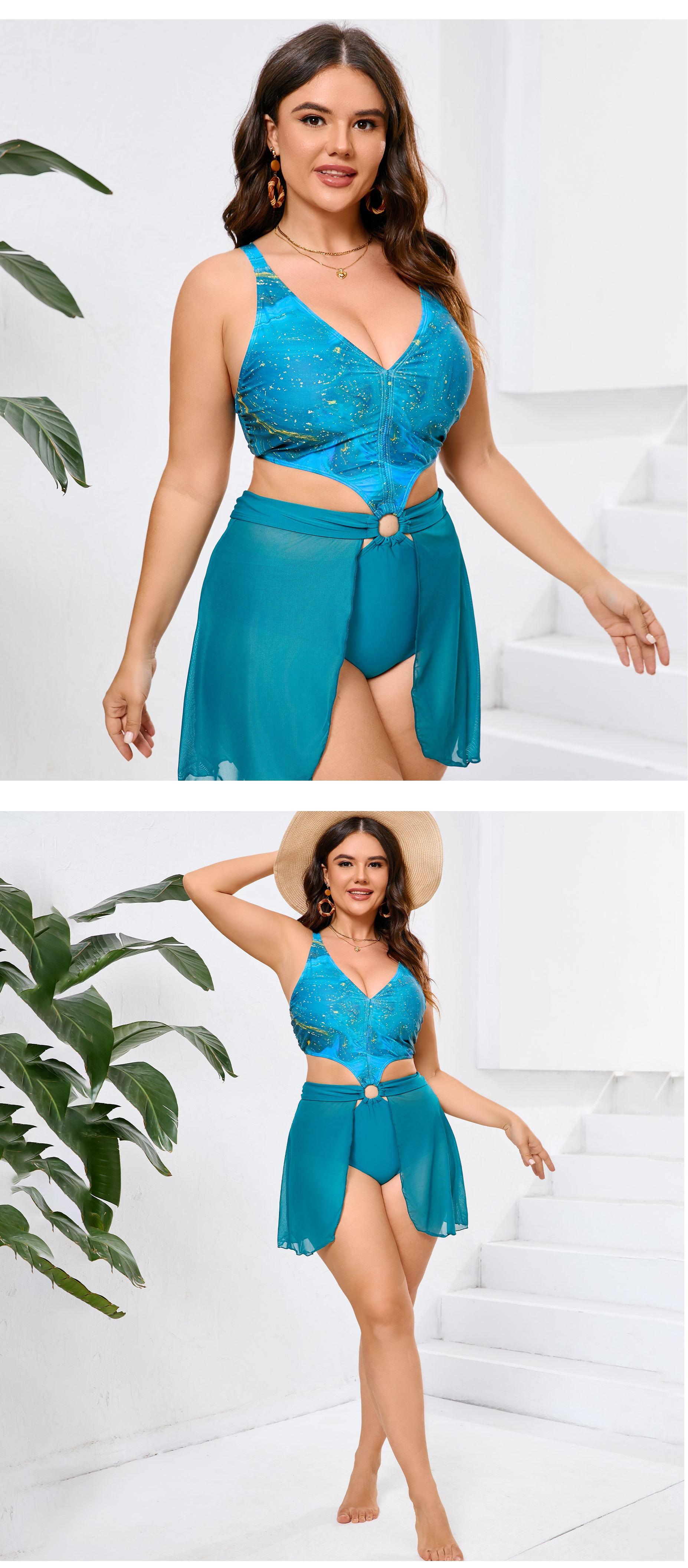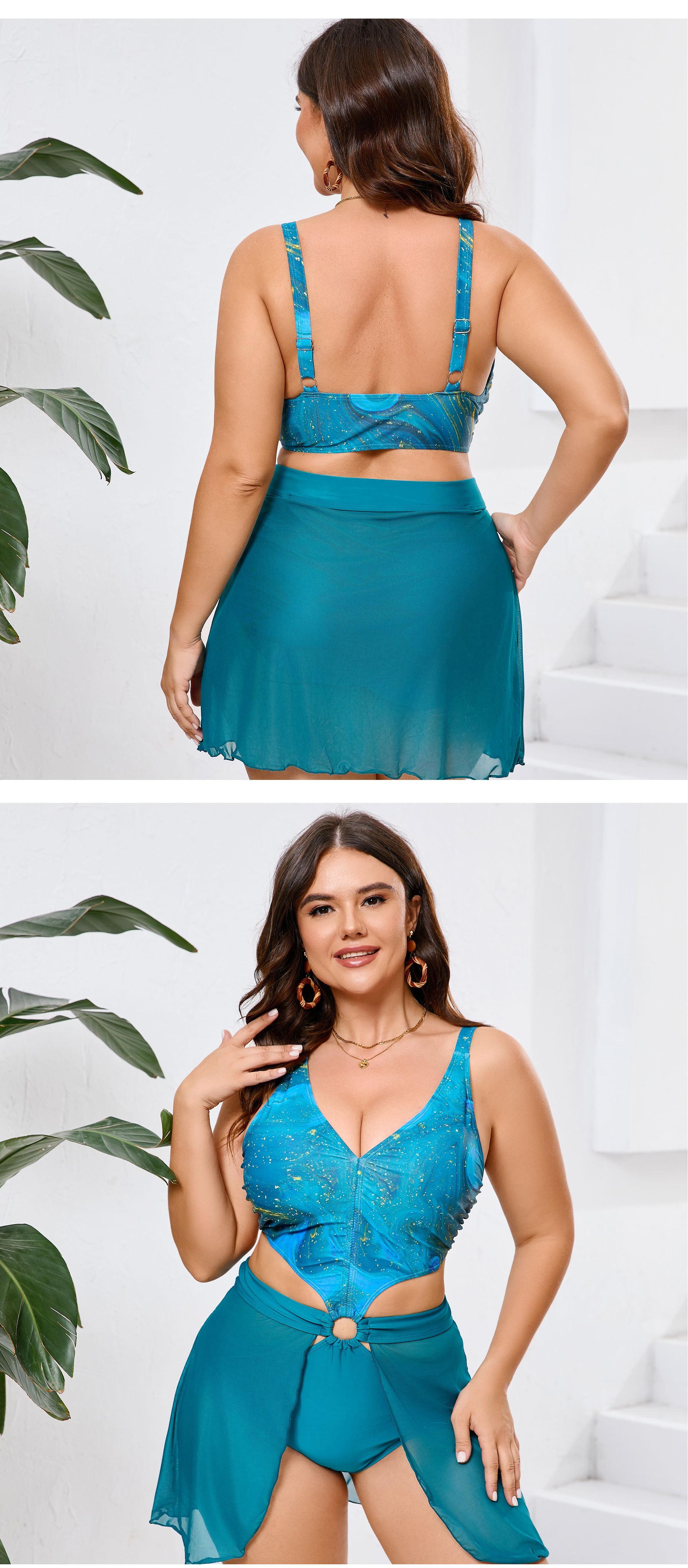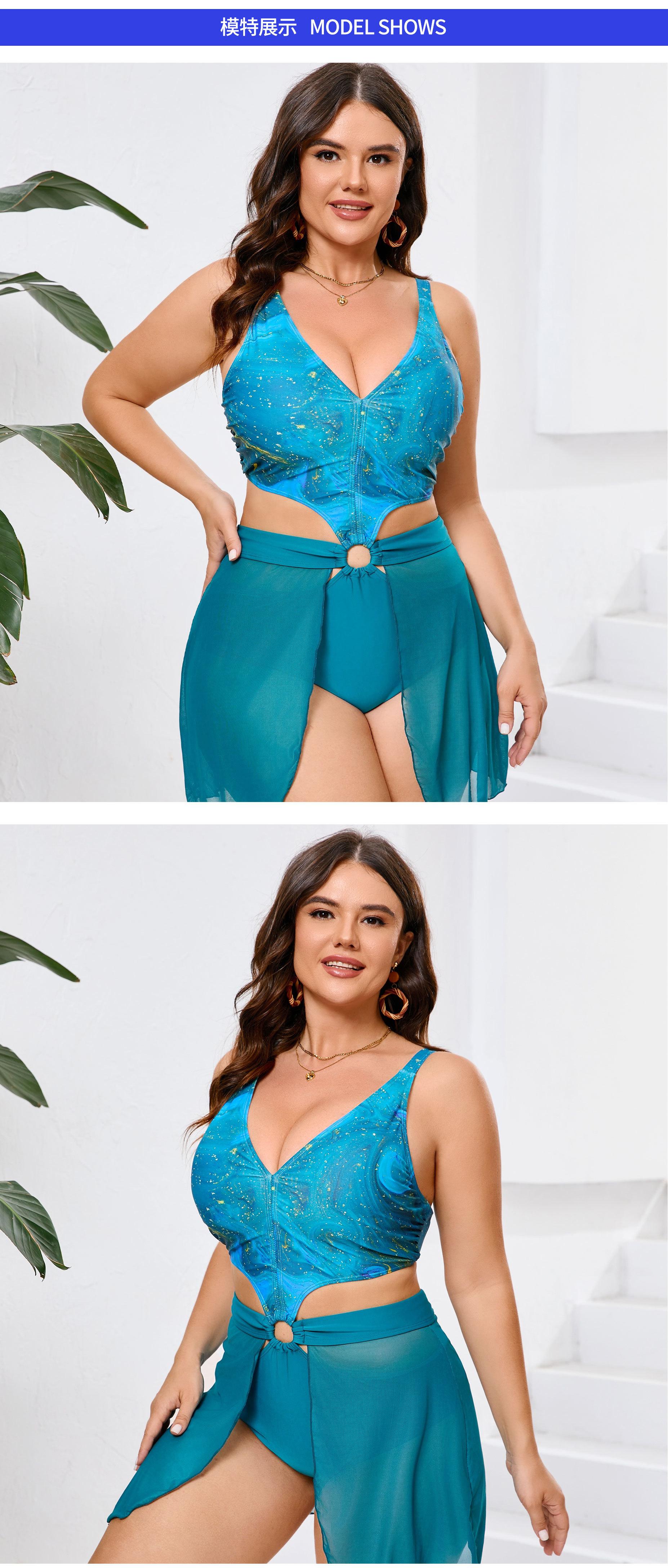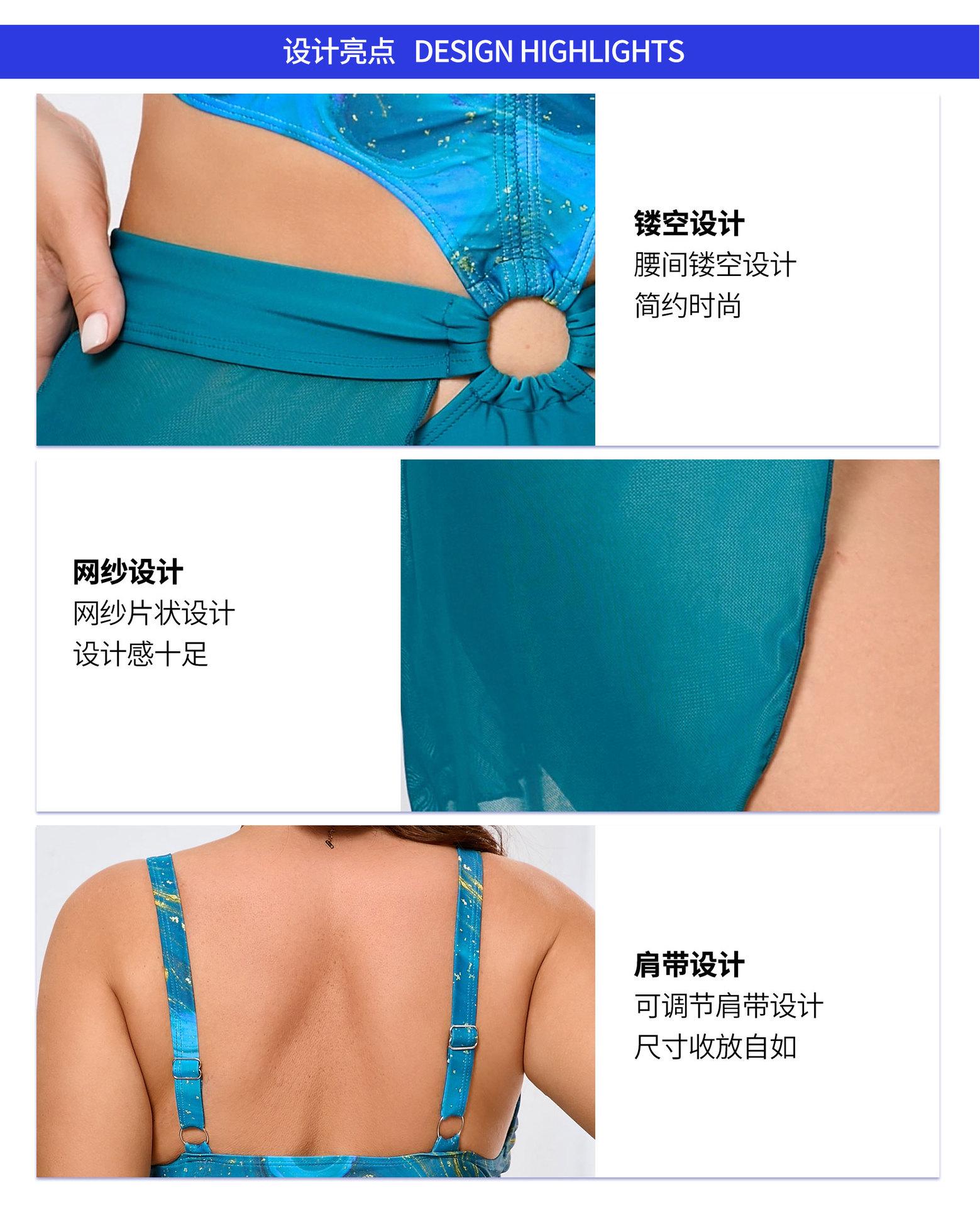 2024 Nuevo traje de baño de una pieza de talla grande europeo y americano con estampado de estrellas y falda de tul