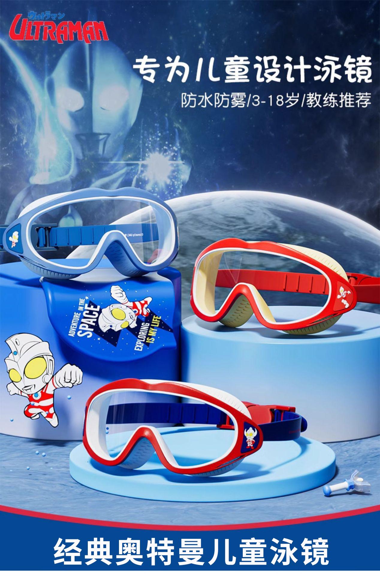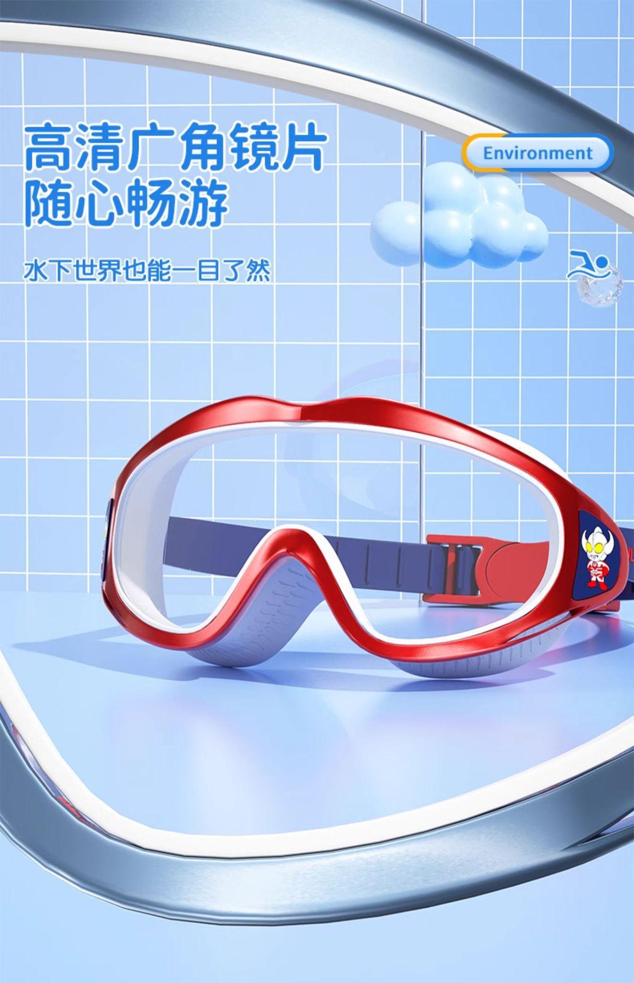 Gafas de natación clásicas Ultraman para niños, HD, impermeables, antivaho, montura grande, gorro de natación, traje de baño, equipo de natación