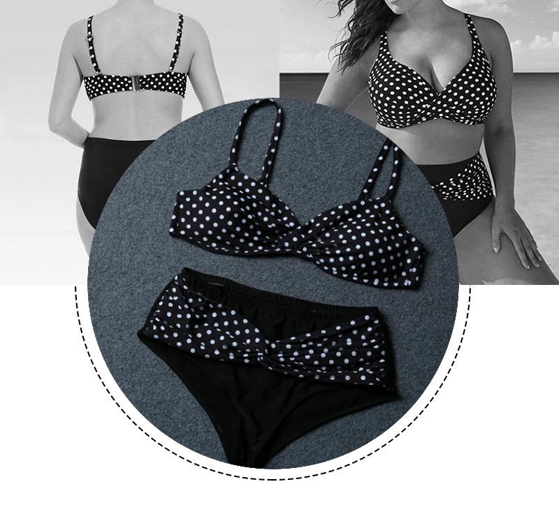 Traje de Baño de Moda Nueva 2023 Europeo y Americano Ola Lunares Tirantes Dividido Talla Grande Calzones Bikini Traje de Baño para Mujer