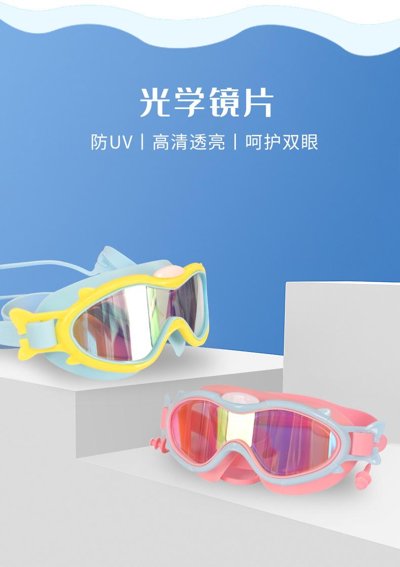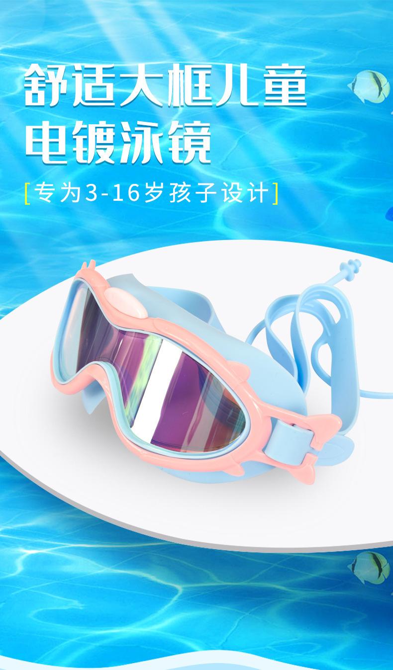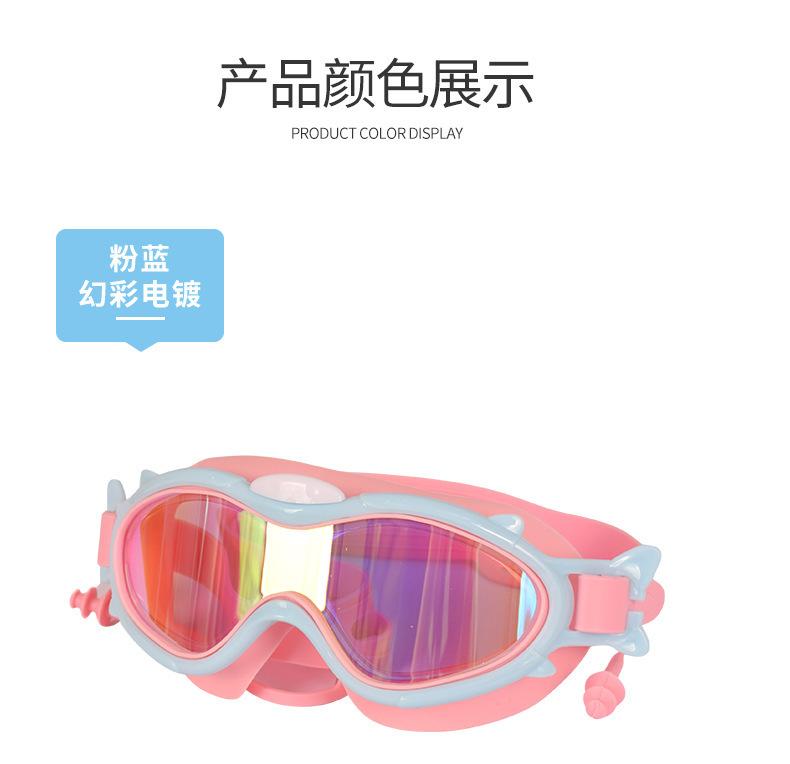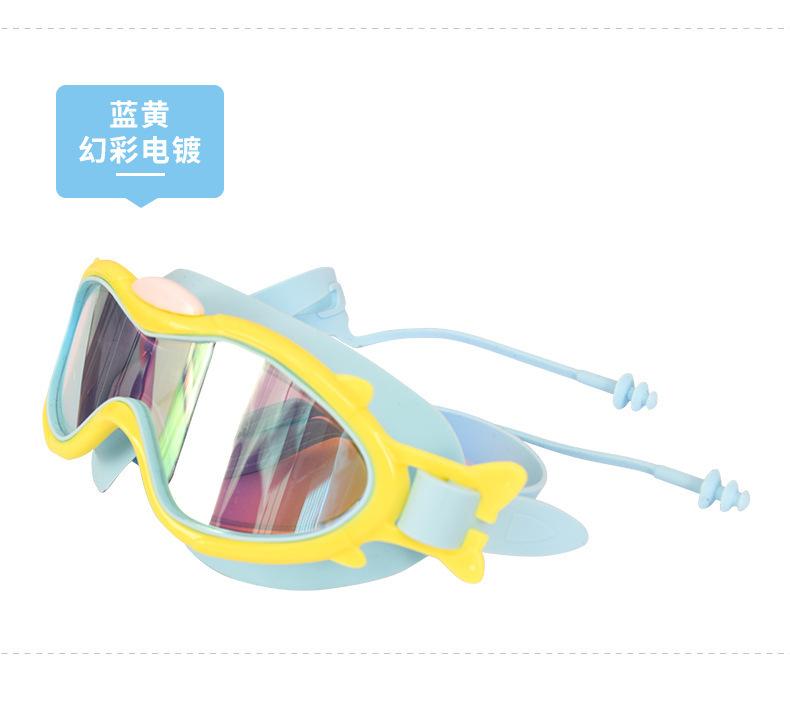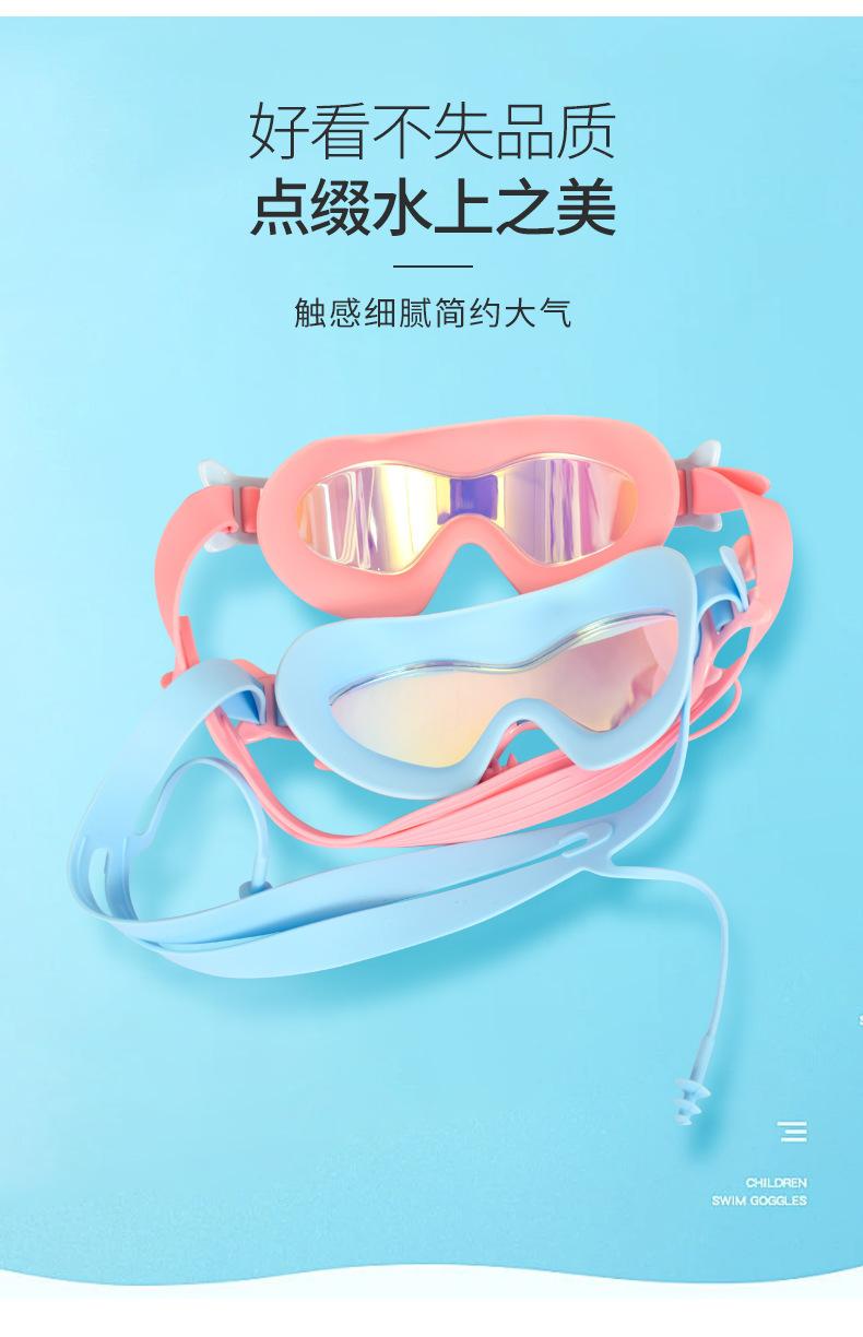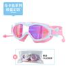 Gafas de natación electrochapadas de montura grande para niños, impermeables, antivaho, transparentes, con protección UV, tapones para los oídos integrados, gafas de natación de silicona sellada