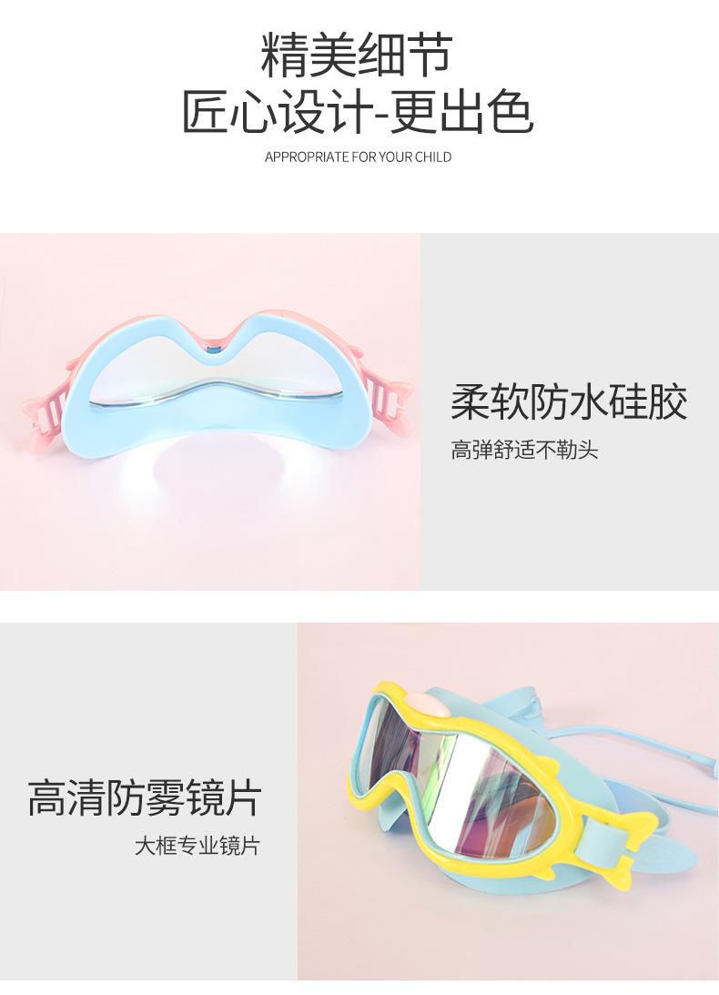 Gafas de natación electrochapadas de marco grande para niños impermeables, antivaho, transparentes, anti-UV tapones para los oídos integrados gafas de natación de silicona sellada