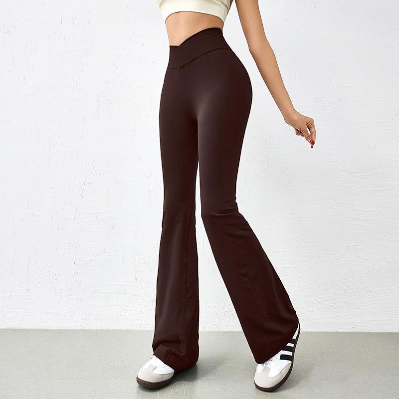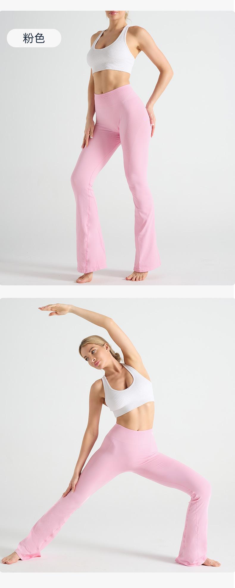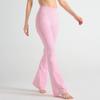 Pantalones de yoga Micro-Lam de pierna ancha y cintura alta para mujer, pantalones de entrenamiento abdominal, elásticos, acampanados, transpirables, color rosa