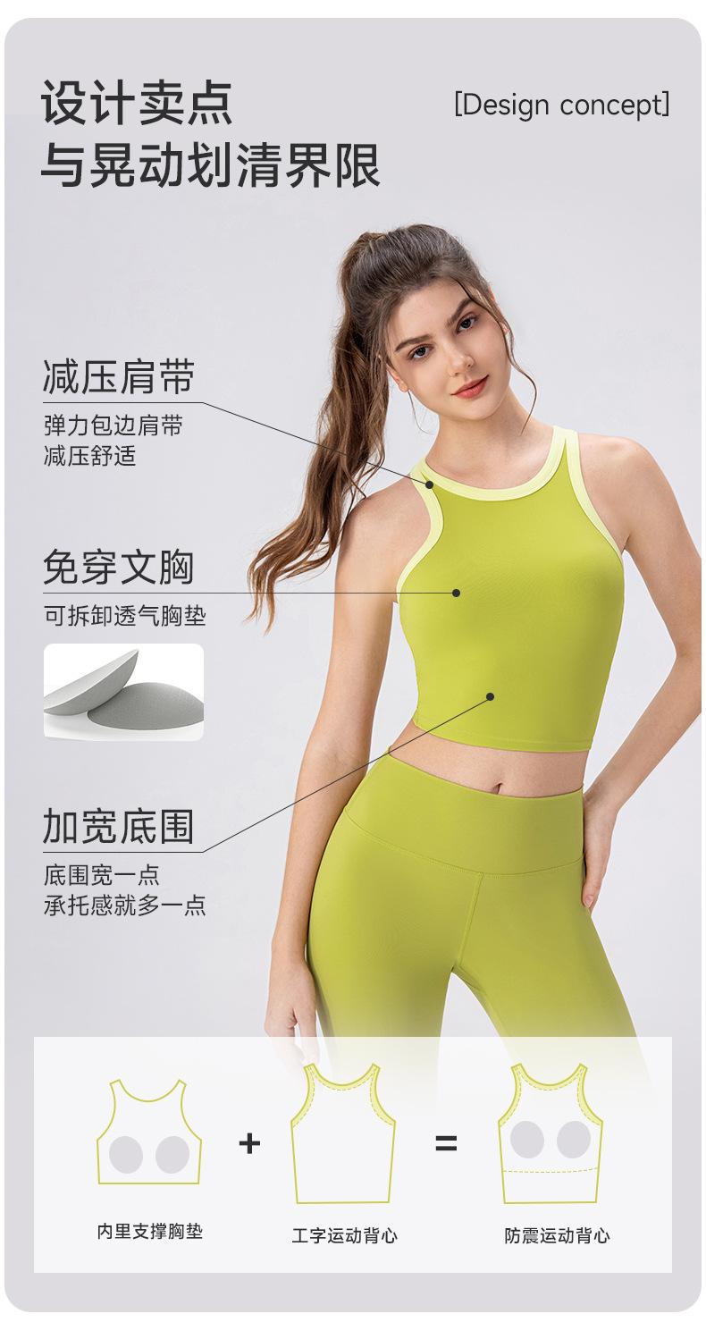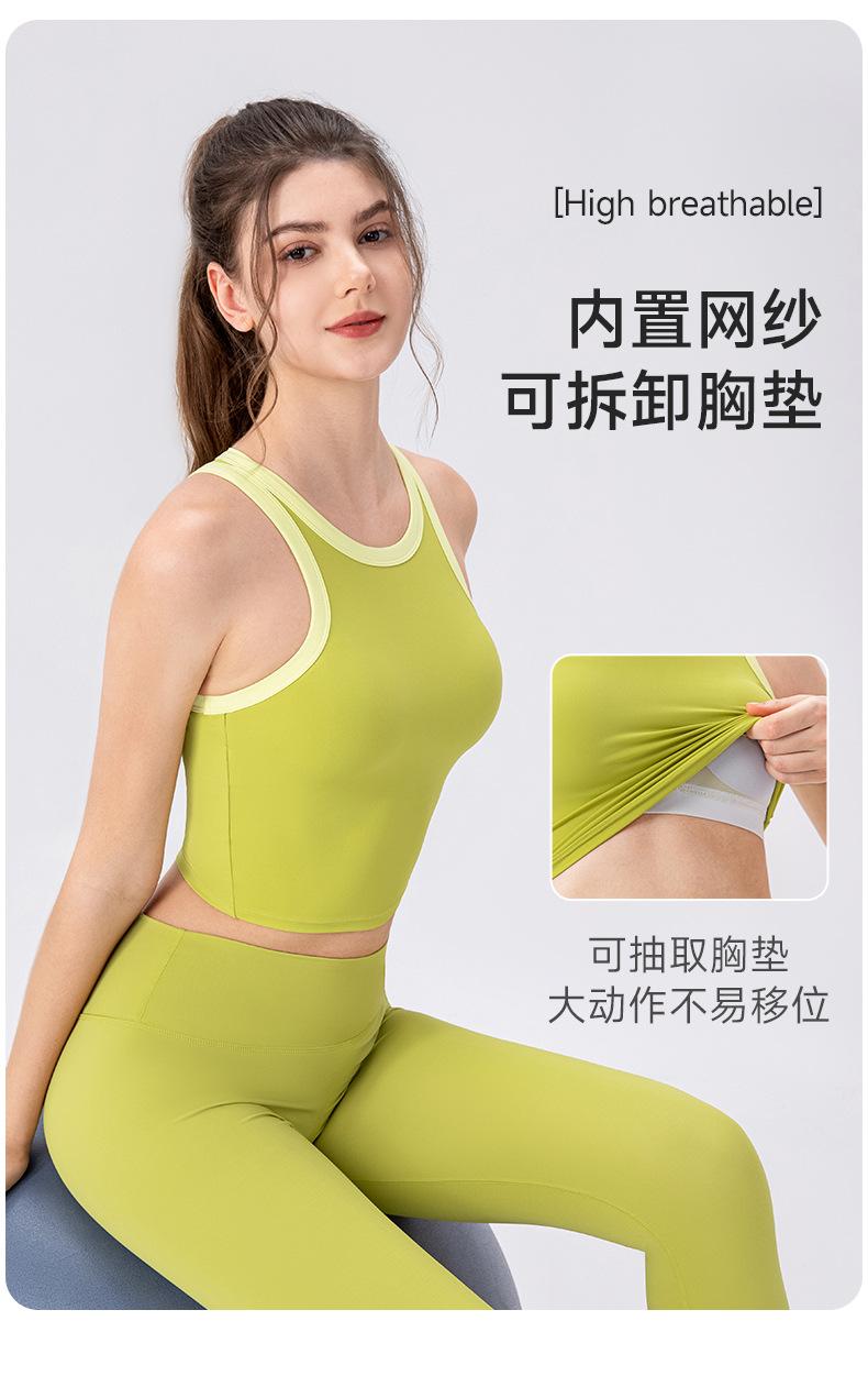 Chaleco de yoga de cuello redondo para mujer, ropa exterior para correr, fitness, chaleco en forma de I, ropa interior deportiva transpirable a juego 24009
