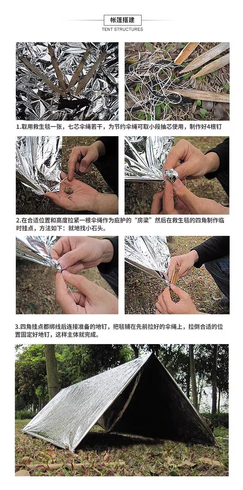 Manta de Aislamiento de Emergencia para Exteriores Manta de Emergencia para Supervivencia Manta Protectora Solar Plateada de Doble Cara Equipo Portátil de Supervivencia para Emergencias