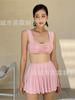 Traje de baño de tres piezas estilo coreano 2024, nuevo estilo Ins, multicolor, con hombros descubiertos, espalda descubierta, dulce, conservador, con abertura, para mujer