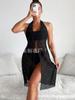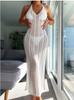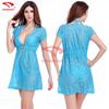 Descripción del producto: Top de bikini de encaje sexy con flor de ganchillo hueco de encaje completo, vestido de playa para vacaciones junto al mar, vestido sexy transparente hueco con escote en V profundo