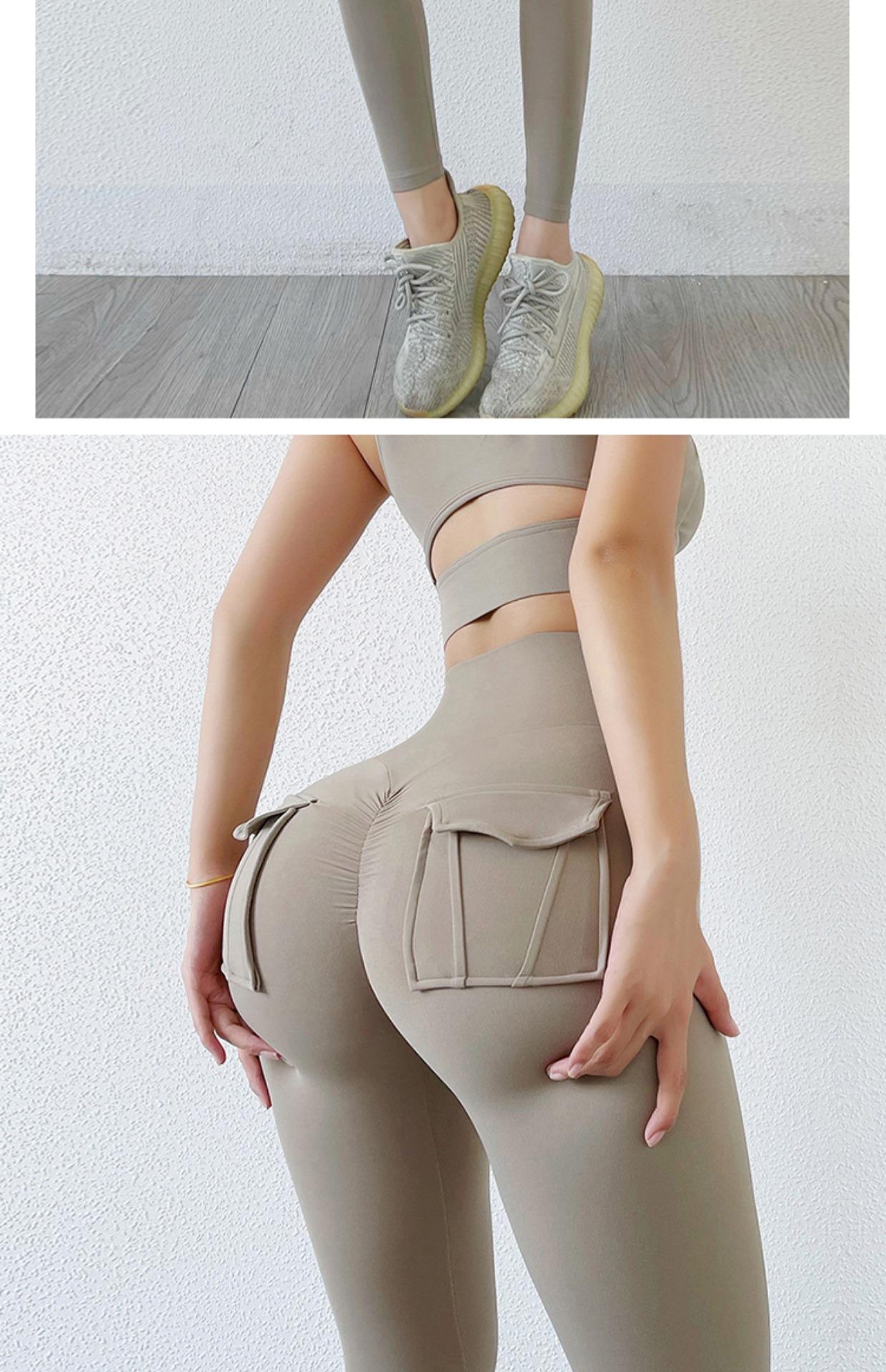 Pantalones de Bolsillo con Solapa Desnudos de Celebridad de Internet Pantalones de Yoga para Mujer de Cintura Alta para Levantar Cadera Pantalones Melocotón de Alta Elasticidad de Secado Rápido Ropa Deportiva Pantalones de Fitness