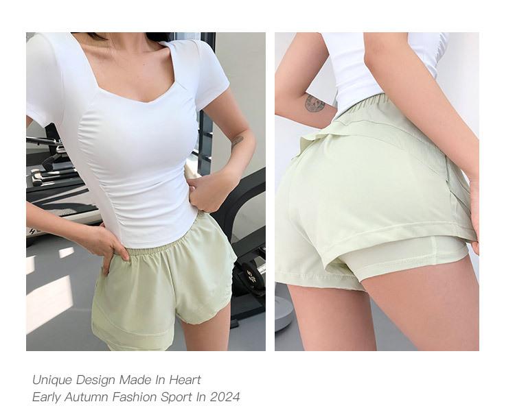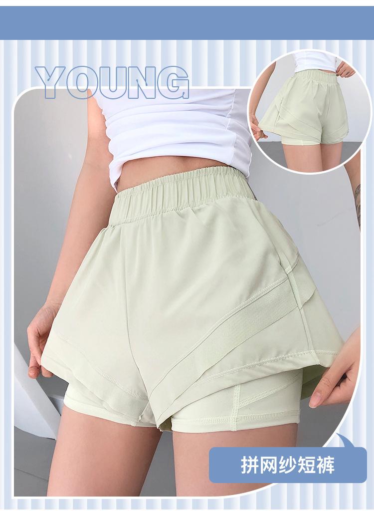 Shorts deportivos falsos de dos piezas para mujer, Antiexposición, Holgados, De secado rápido, Transpirables, Cintura alta, Casuales para correr, entrenamiento, fitness, pantalones de yoga