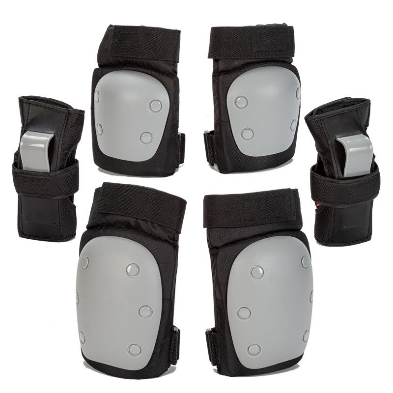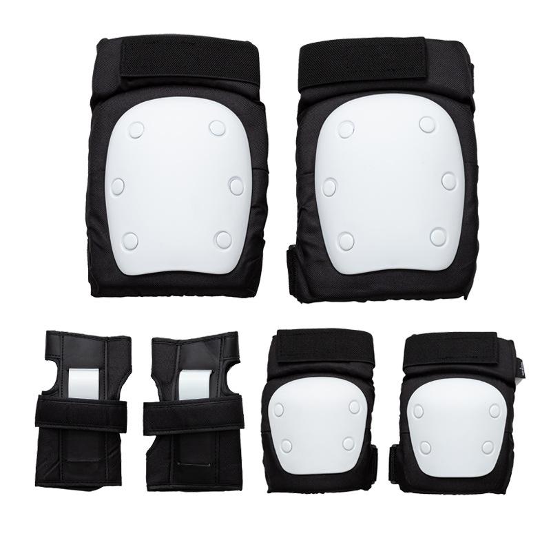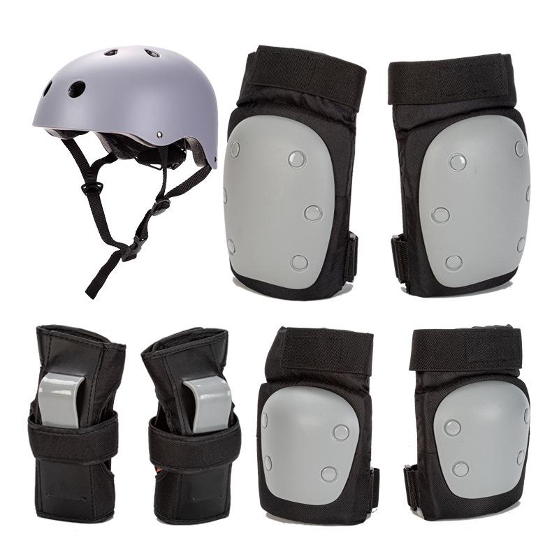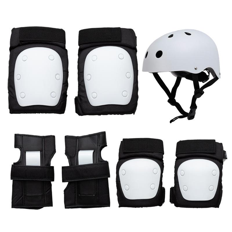 black helmet black protective gear, white helmet white protective gear, Pink helmet pink protective gear, gray...