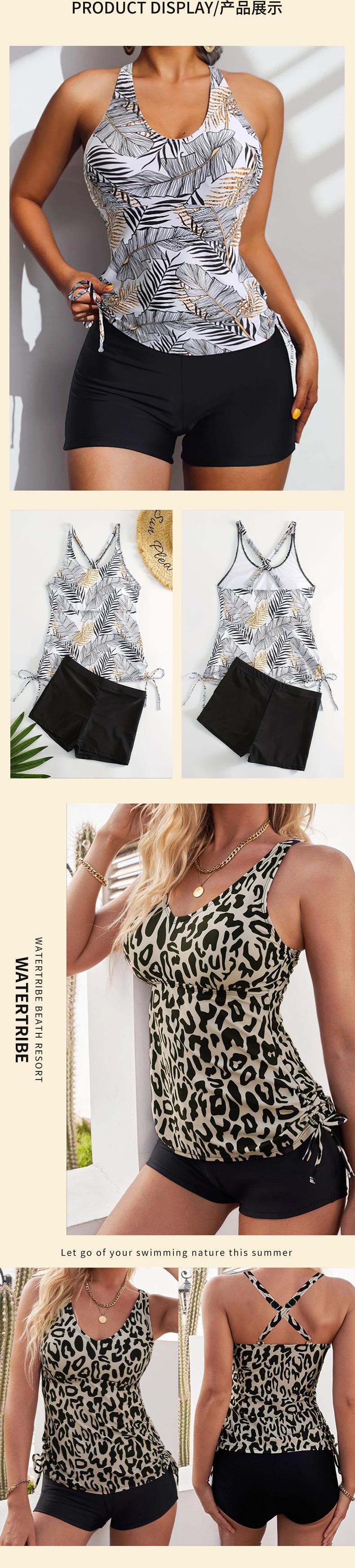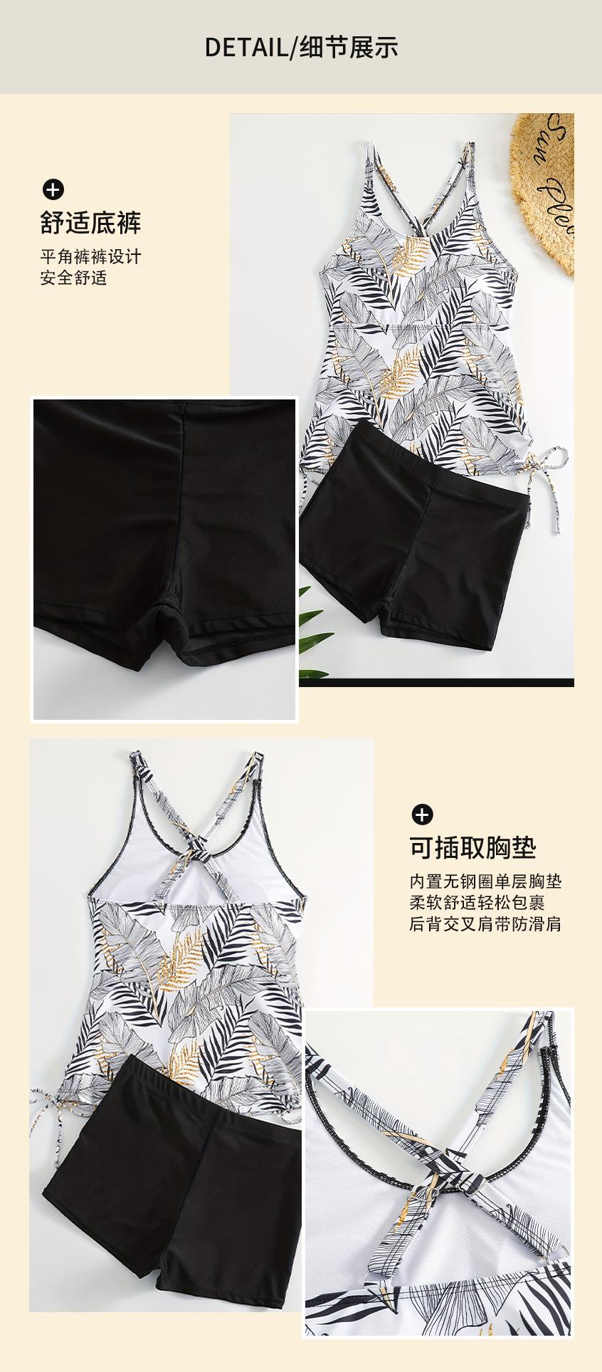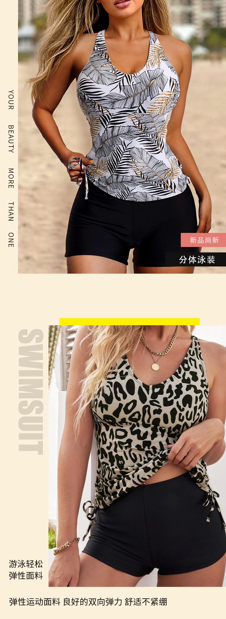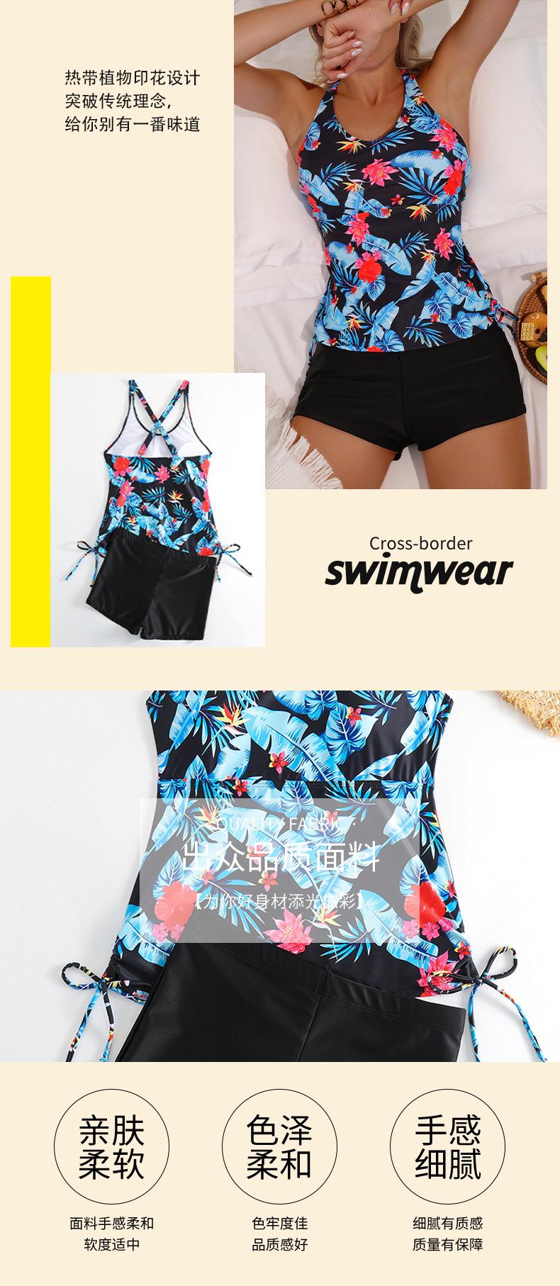 Nuevo Traje de Baño Conservador de Dos Piezas con Estampado Tropical Transfronterizo Europeo y Americano para Mujer Cubierto de Malla Tanini Dividido Plano