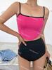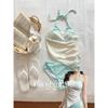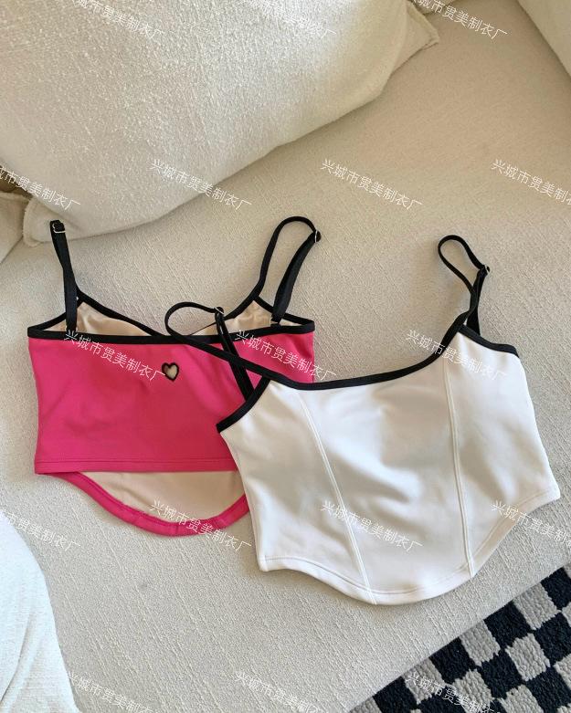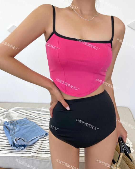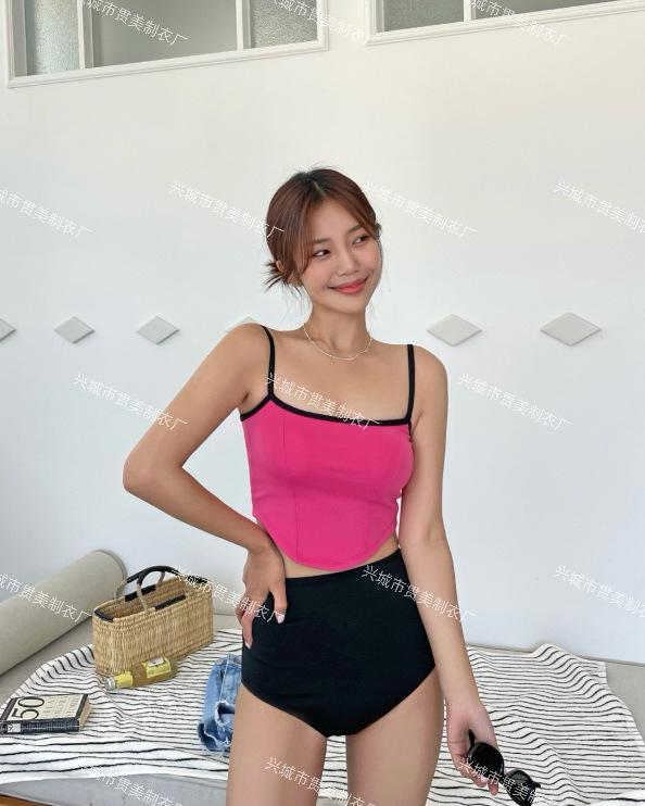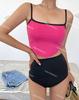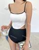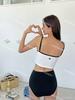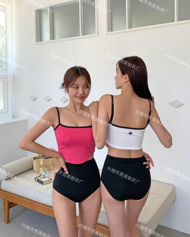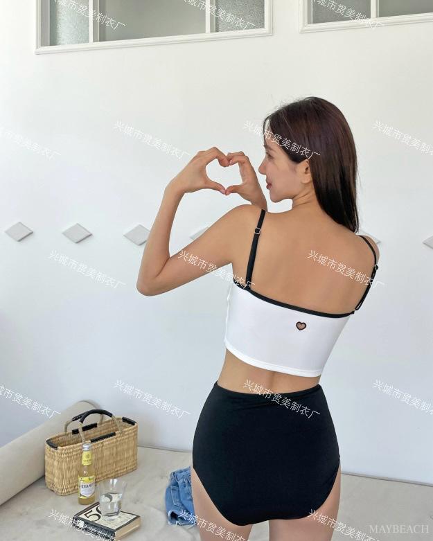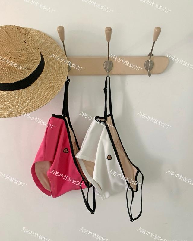 [5 colores] Nueva versión coreana del traje de baño de color contrastante para mujer, sexy, sin espalda, con bordado de amor, bikini dividido de moda simple