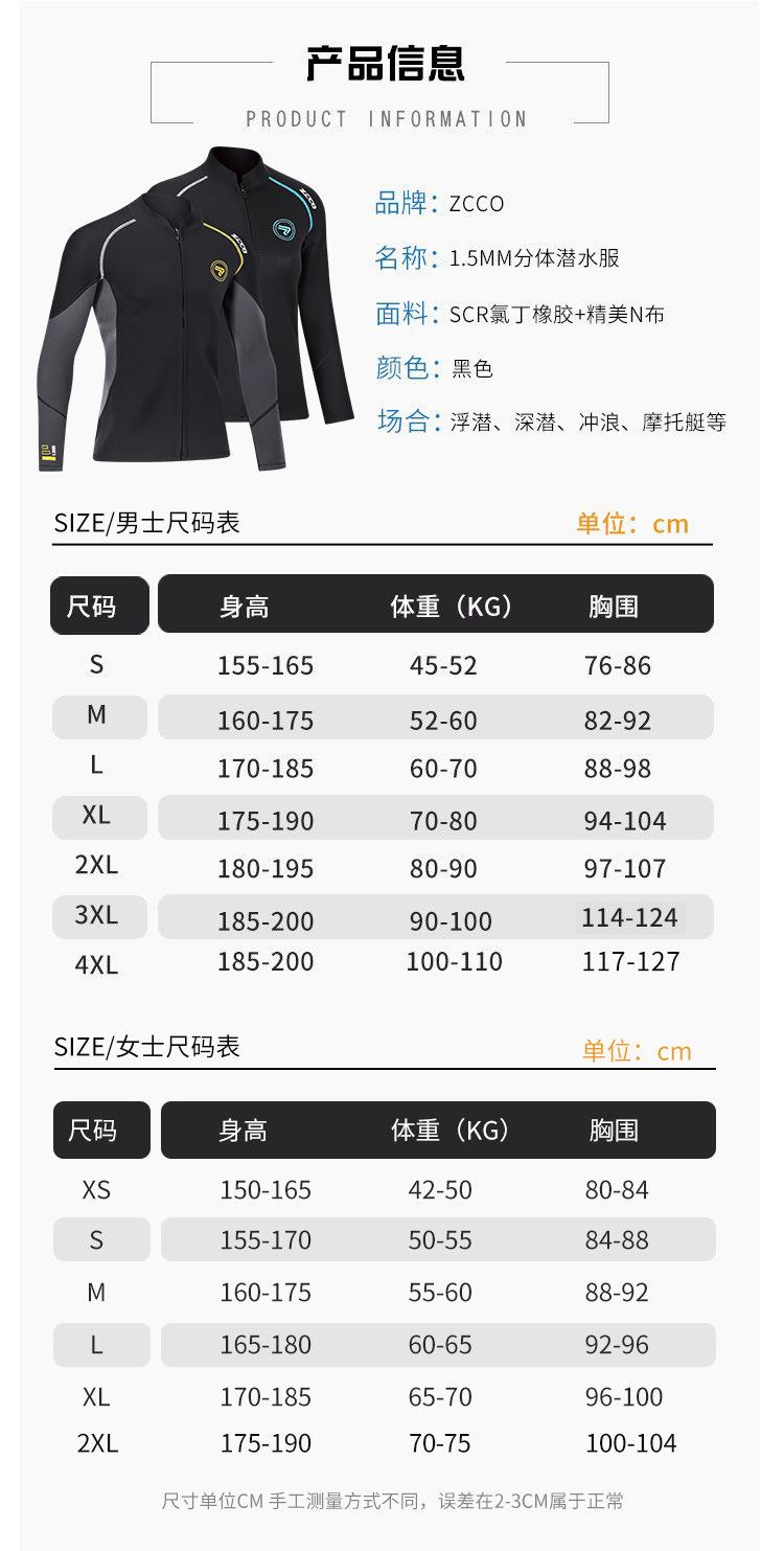 Traje de Buceo ZCCO 1.5MM Top Dividido Manga Larga Ropa de Snorkel A Prueba de Frío Cálido Traje de Neopreno Talla Grande Ropa de Surf