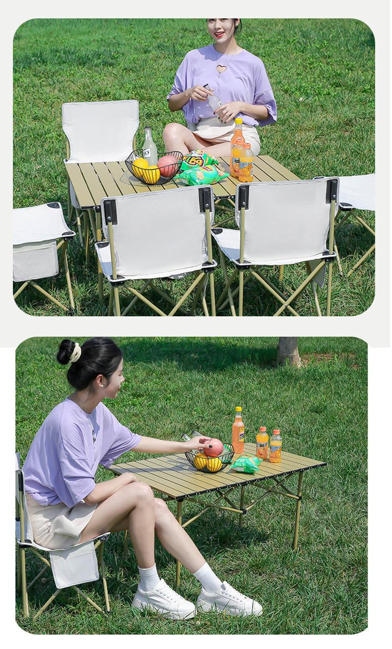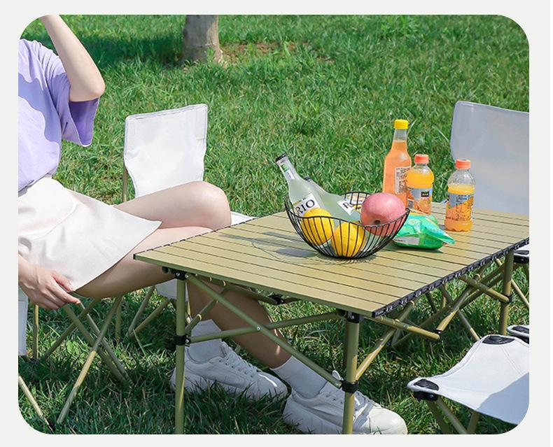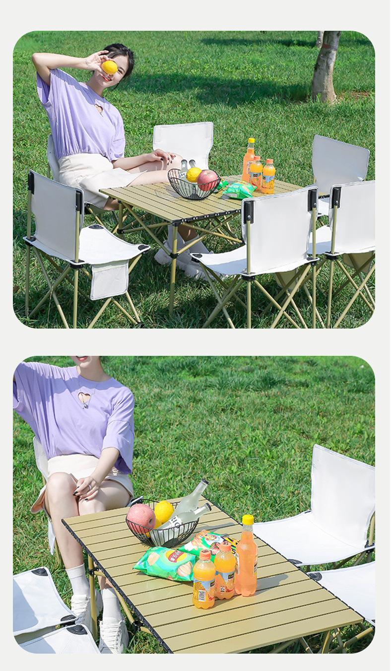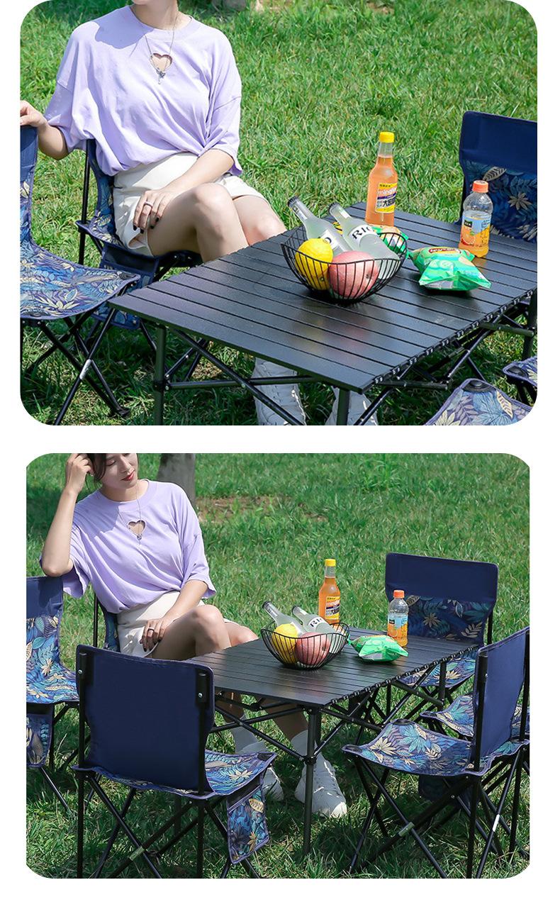 Mesa Plegable para Exterior Aleación de Acero al Carbono Mesa y Sillas Tipo Rollo de Huevo Mesa de Picnic para Camping Juego Completo Portátil de Equipo Ligero
