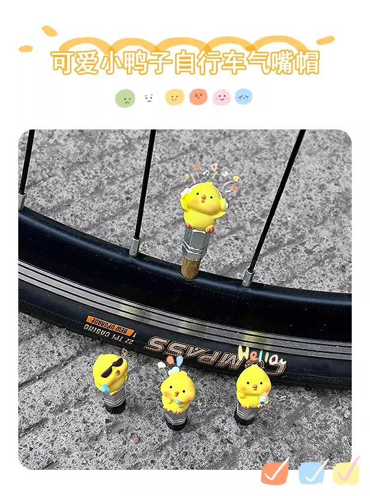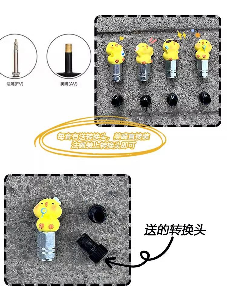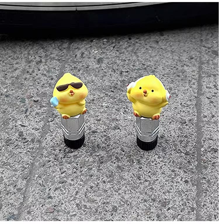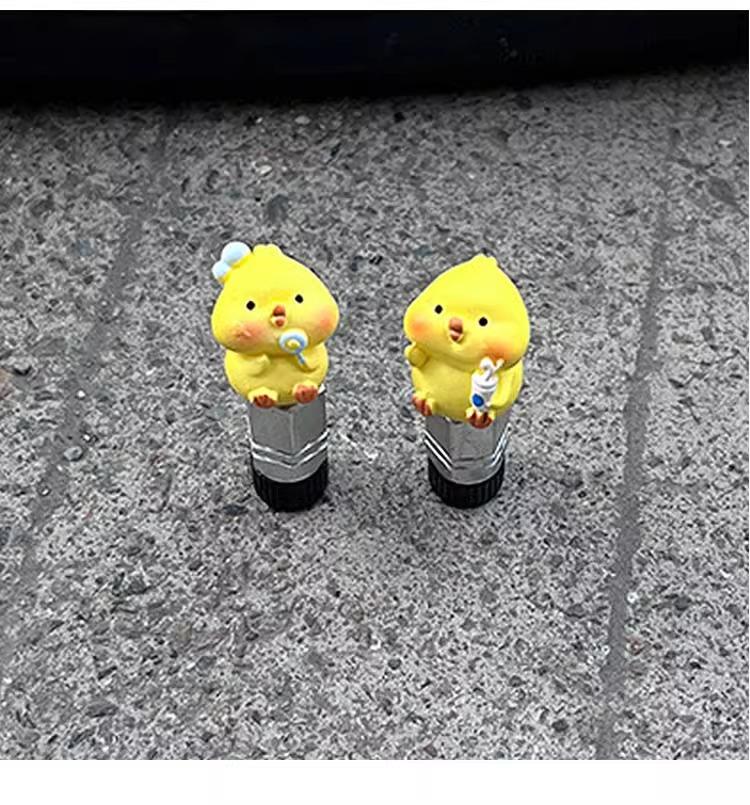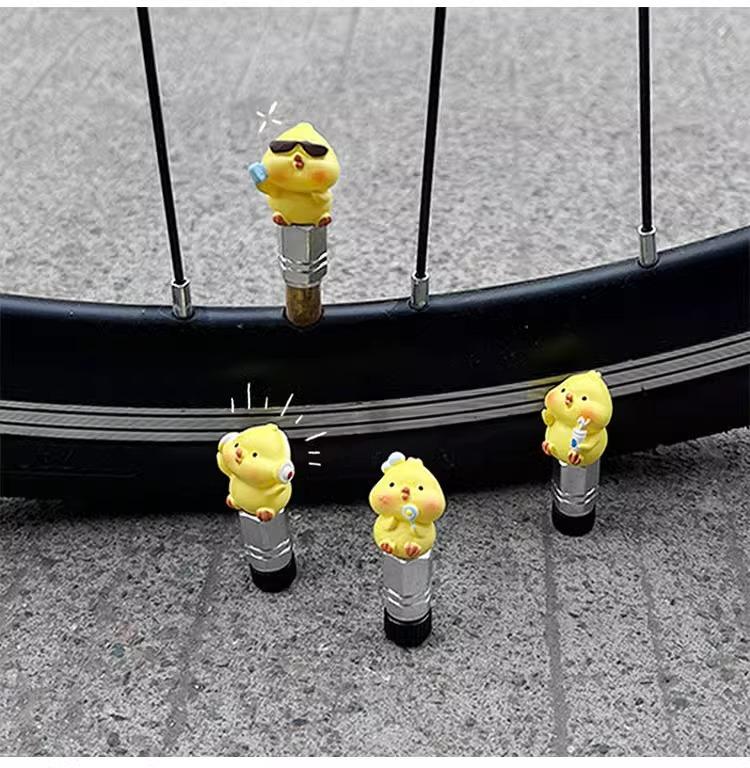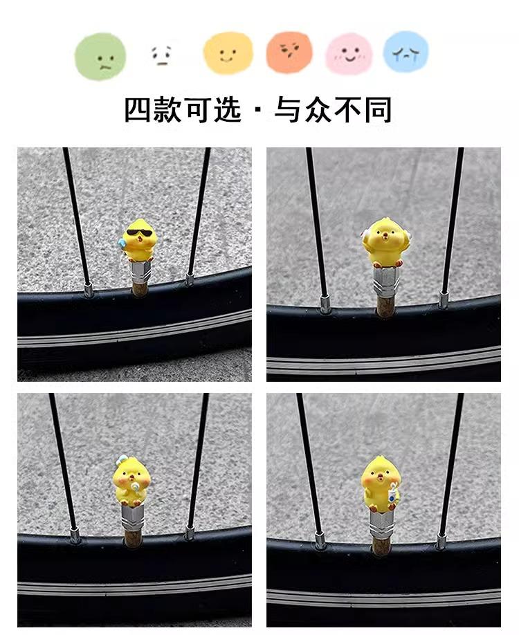 Decoración de funda de núcleo de válvula de neumático de bicicleta, color pollo amarillo pequeño, conversión creativa, cabeza, boca francesa, hermosa boca, orificio de inflado de neumáticos