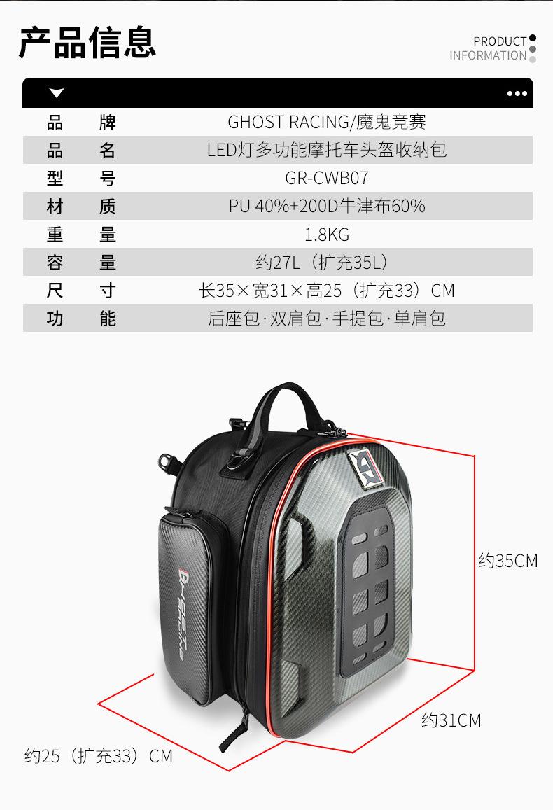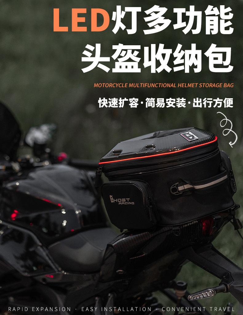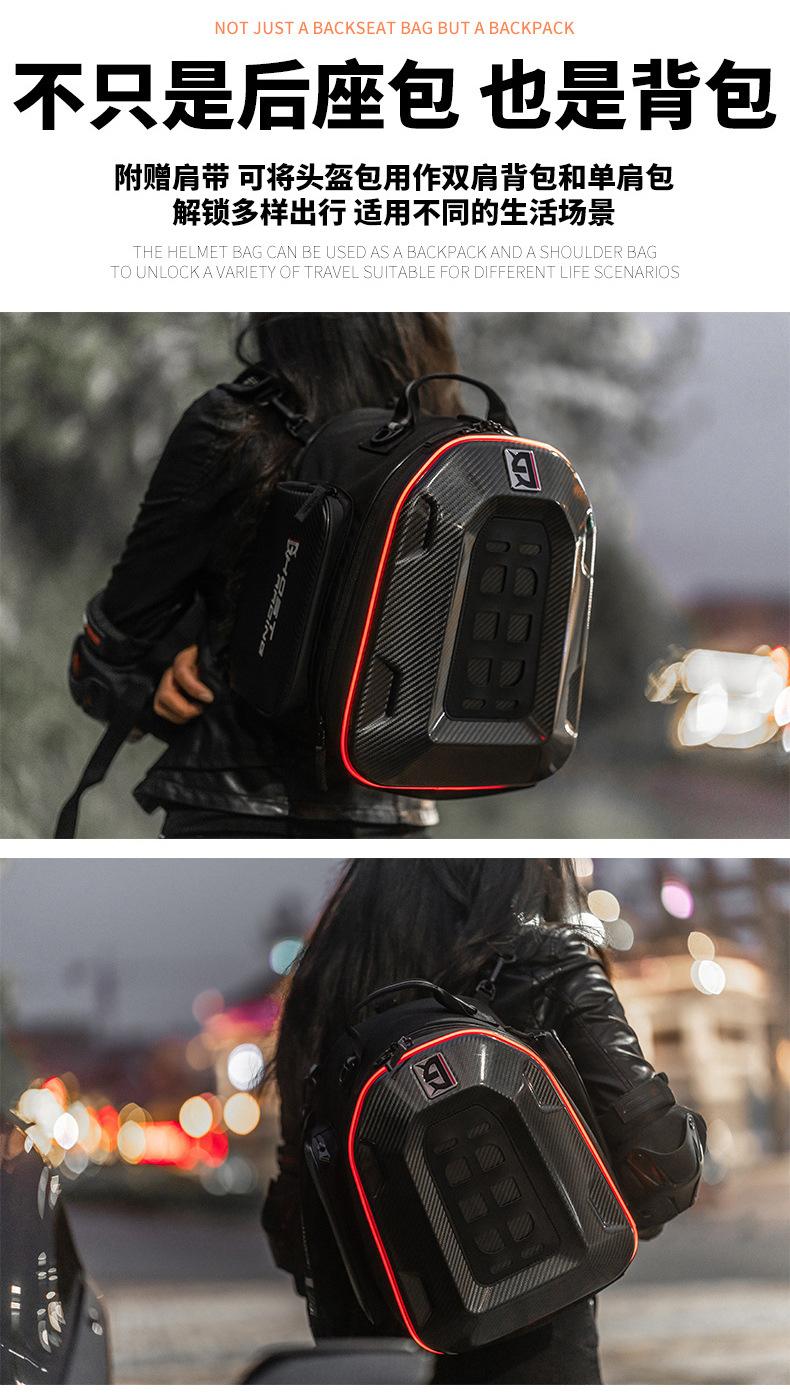 Mochila para Motociclismo Multifuncional Bolsa Trasera Bolsa de Cola Bolsa de Hombro Completa Bolsa para Casco Carcasa Dura Bolso de Mano Luz LED