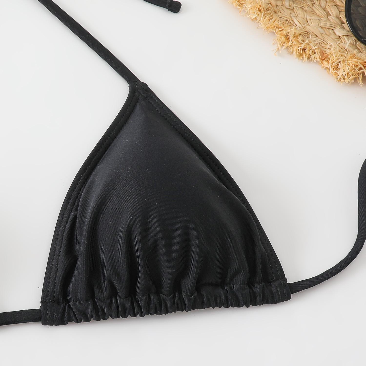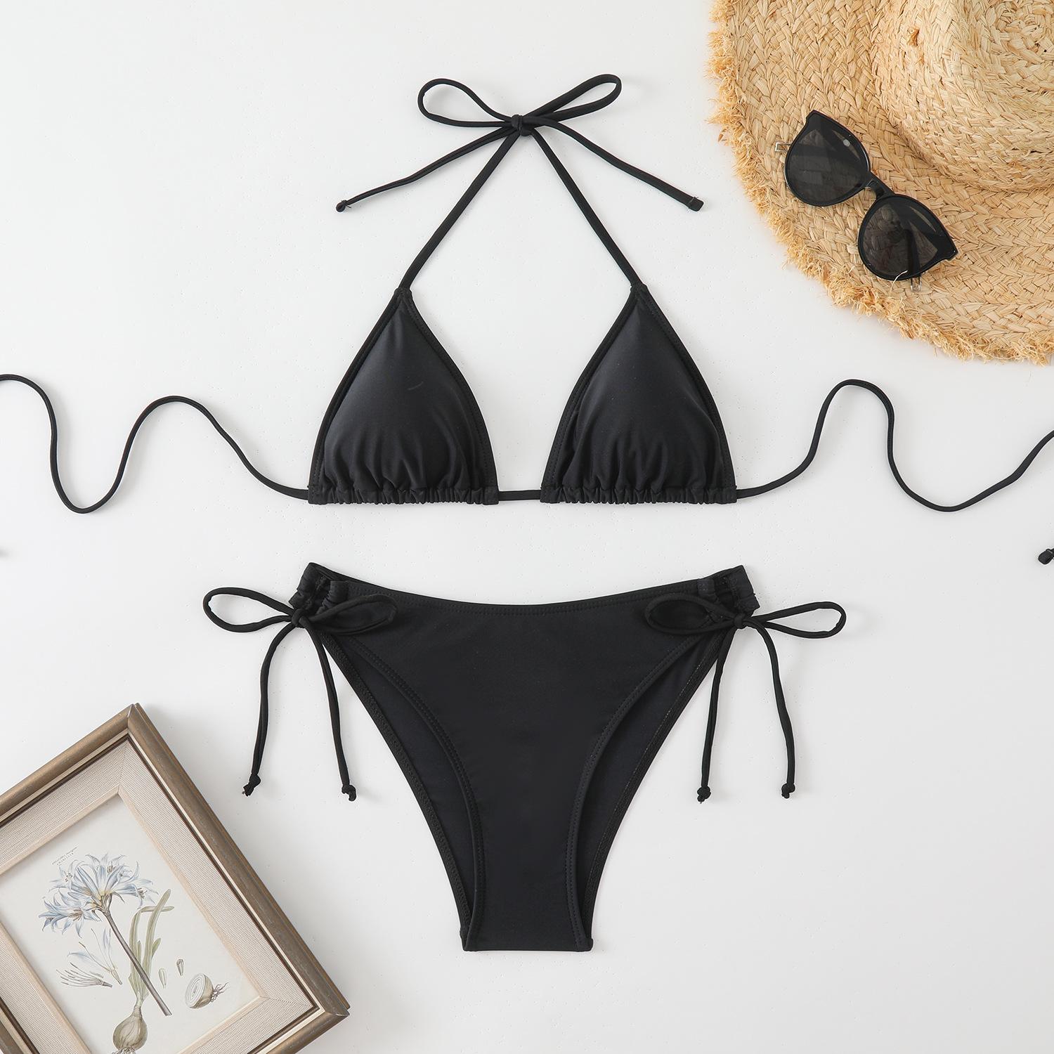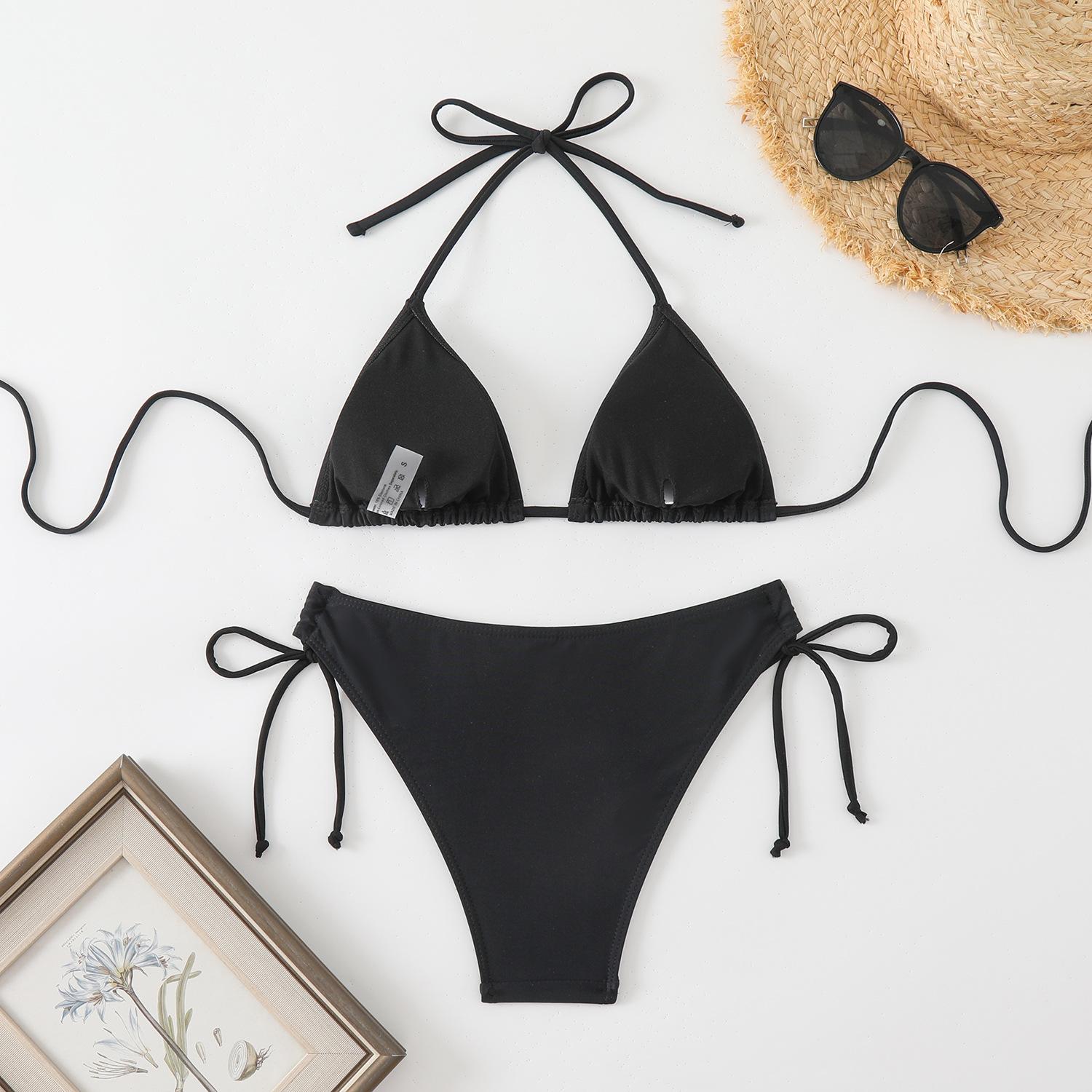 Traje de baño europeo y americano para mujer, bikini sexy de tres puntos con tirantes tipo halter, color liso, para chica atractiva, traje de baño de comercio exterior a la moda.