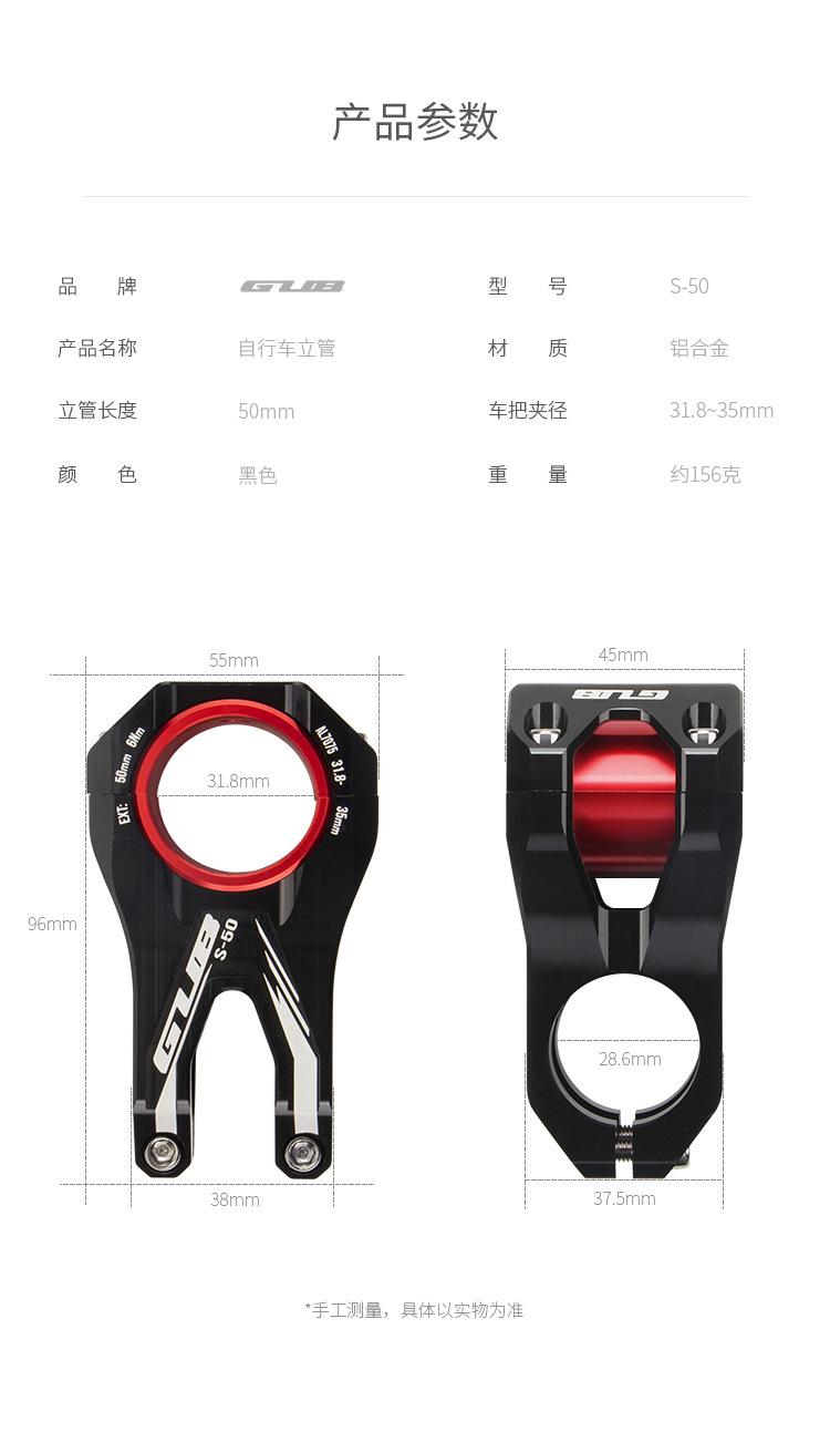 Potencia corta para bicicleta de montaña GUB S-50, 31,8 x 50 mm, aleación de aluminio CNC, potencia hueca para bicicleta de descenso