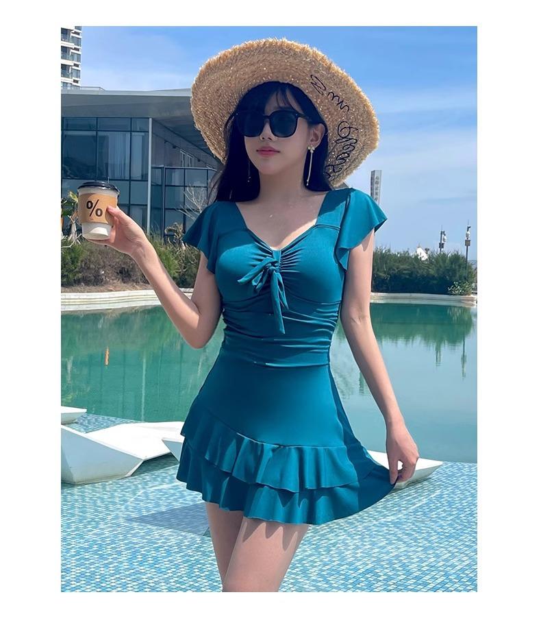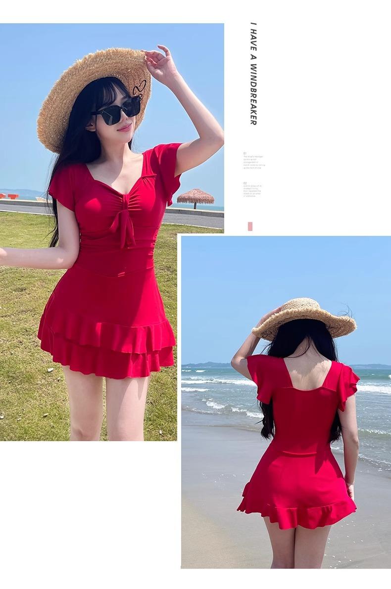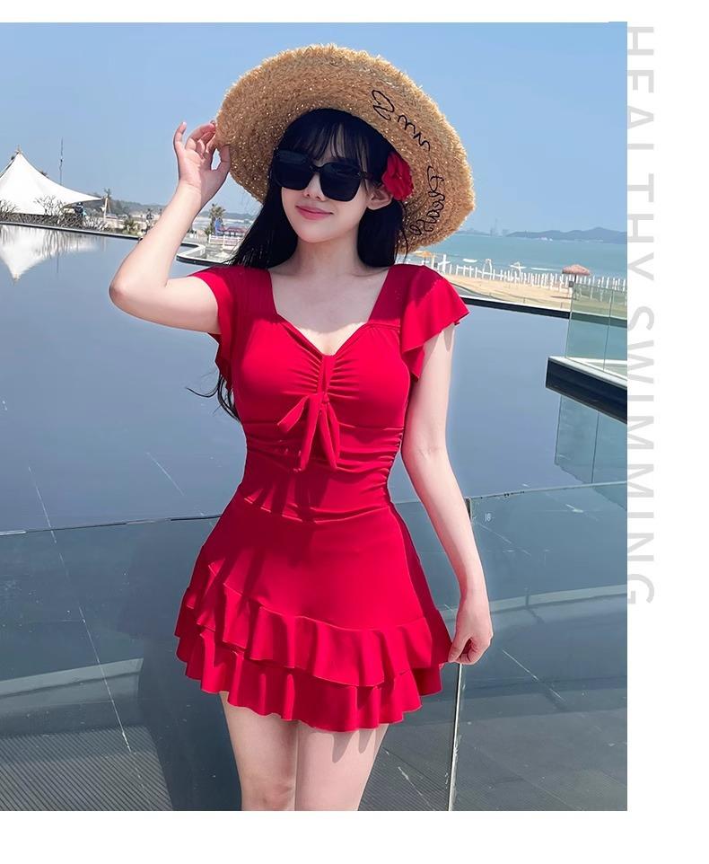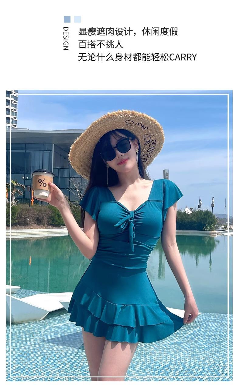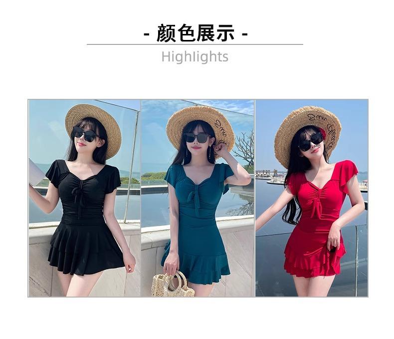 Traje de Baño Entero de Talla Grande para Mujer 2025 Nuevo Estilo Caliente Cubriendo Vientre y Look Adelgazante Conservador Gordo mm Vacaciones Traje de Baño para Aguas Termales