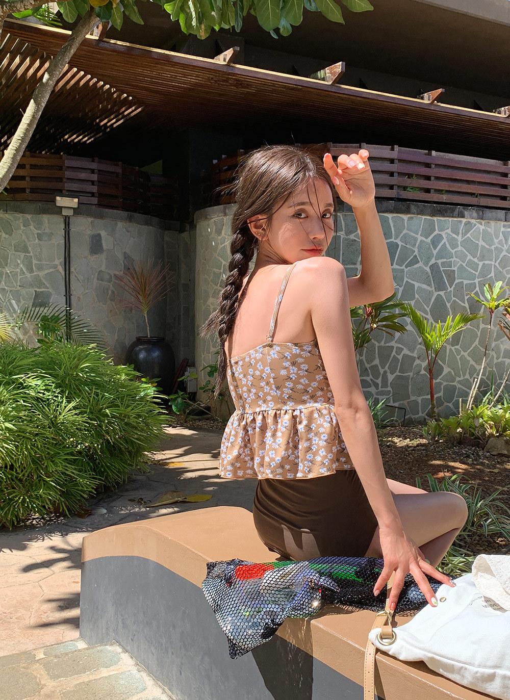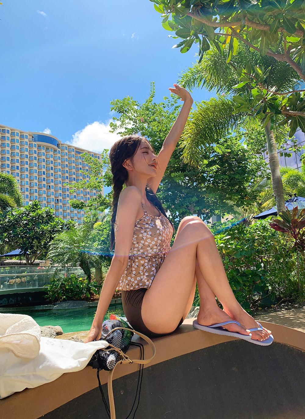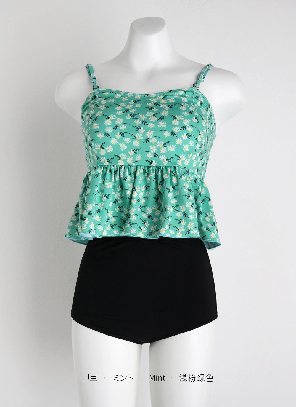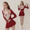 23 nuevo estilo ins hada pequeña fresca chica floral volantes delgado cintura alta conservador traje de baño con abertura mujer