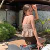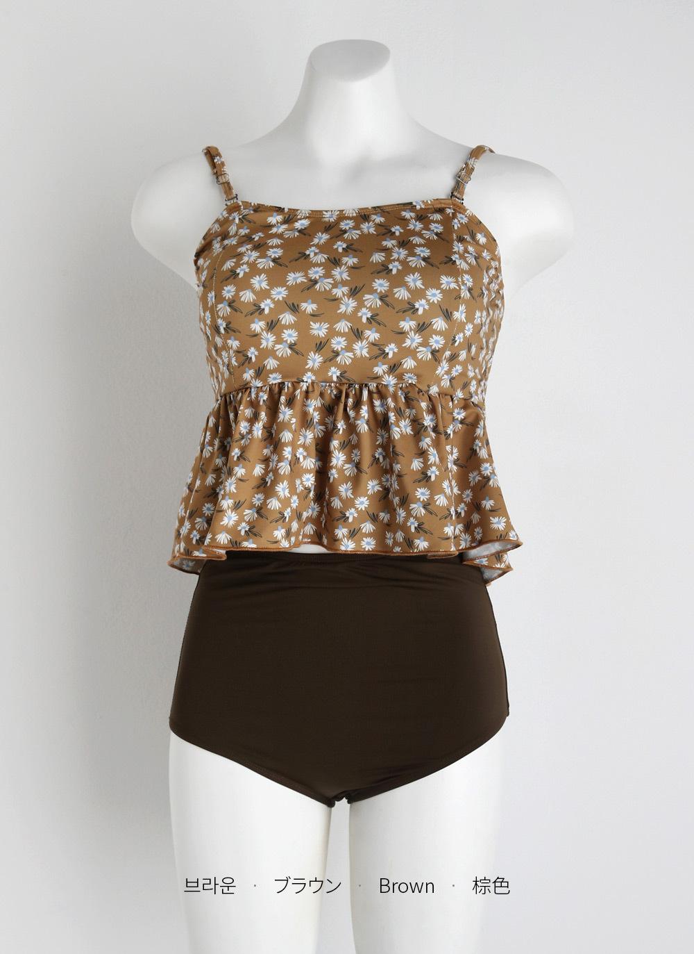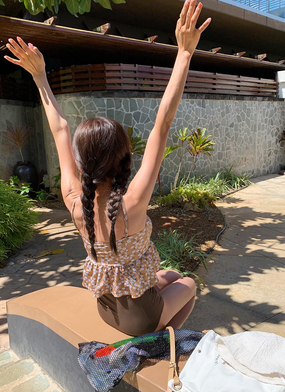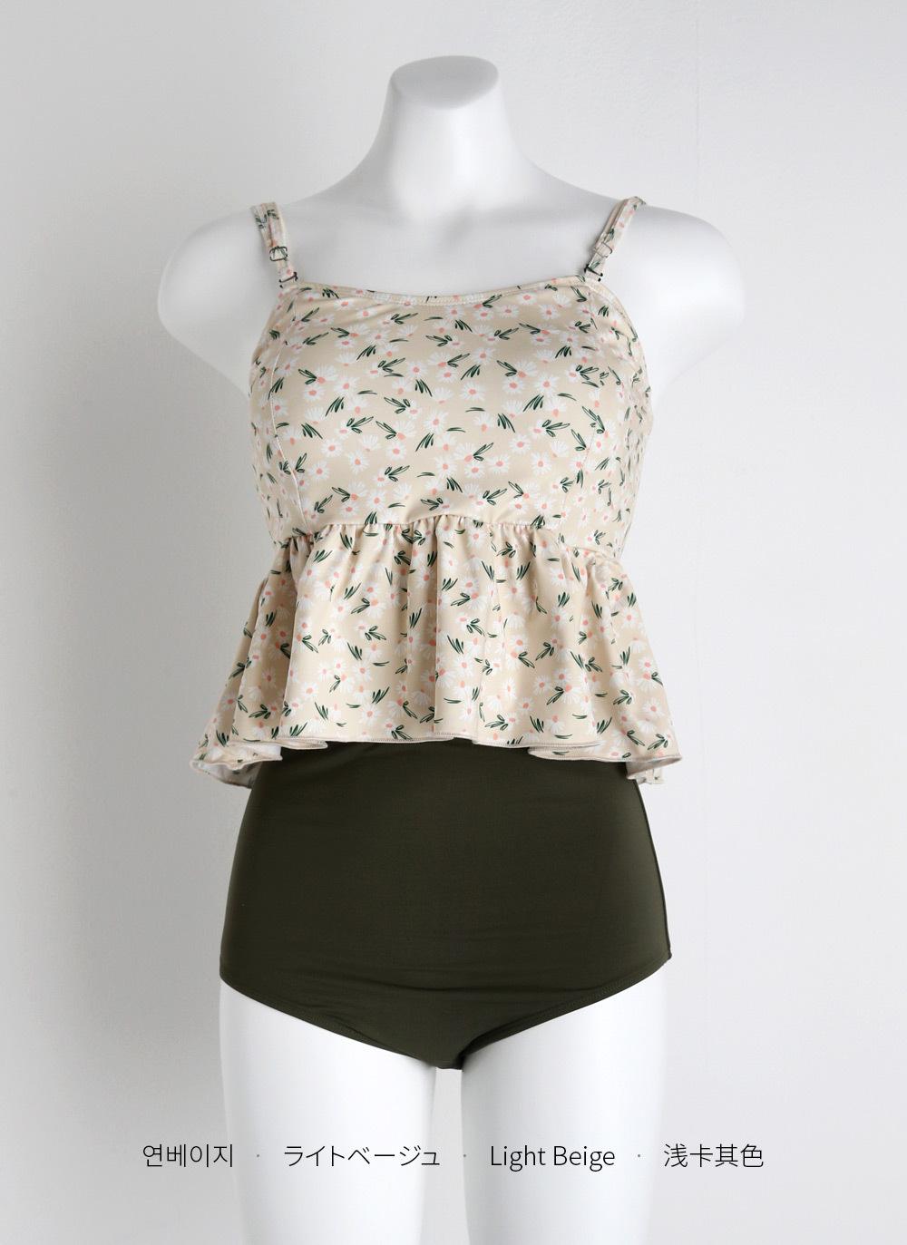 23 nuevo estilo ins hada pequeña fresca chica floral volantes delgado cintura alta conservador traje de baño con abertura mujer