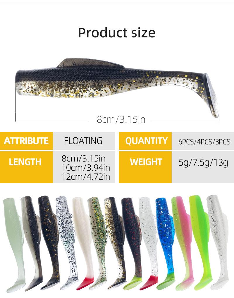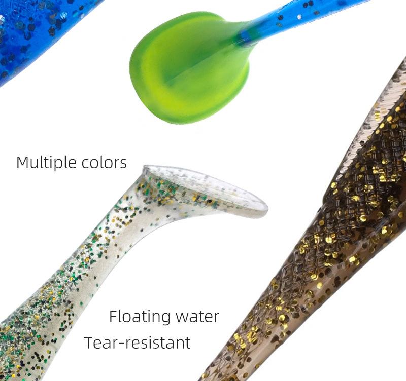 Señuelo Blando de TPR Pegamento Suave Señuelo Luya Cola T Doble Color Capturado Lobina Pez Mandarín Flotante Agua Señuelo Blando Traje Negro Pit