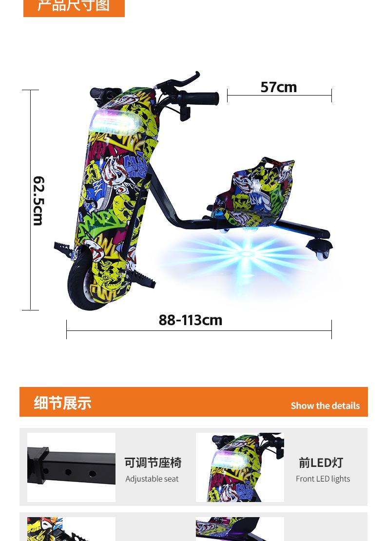 Coche eléctrico de deriva de tres ruedas, coche de batería, coche de deriva para niños, control remoto, volquete, cuadrado, juguete para niños, kart