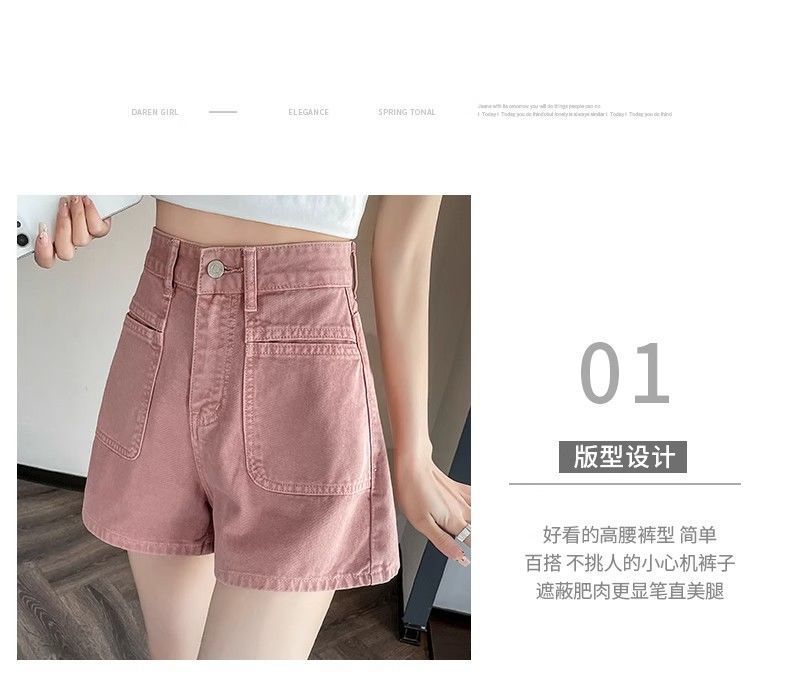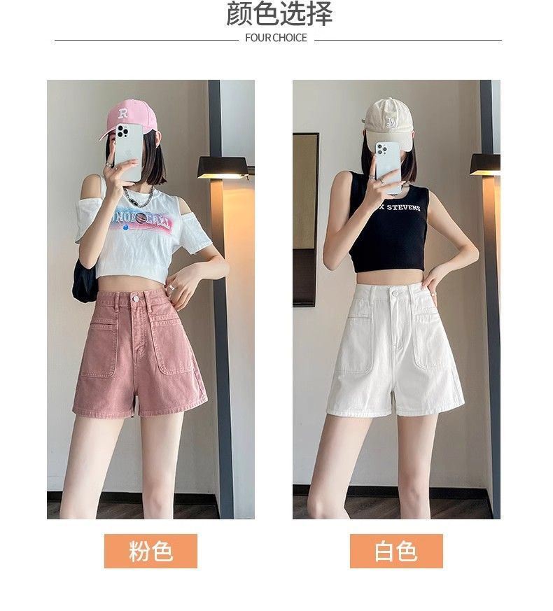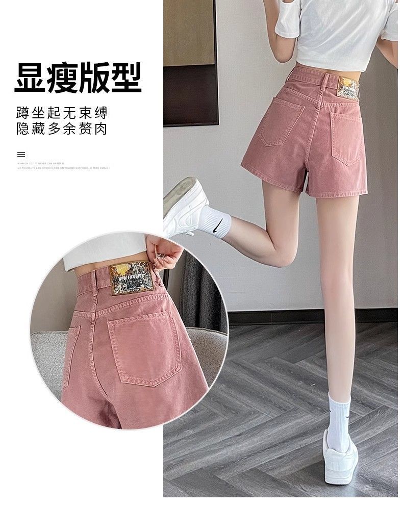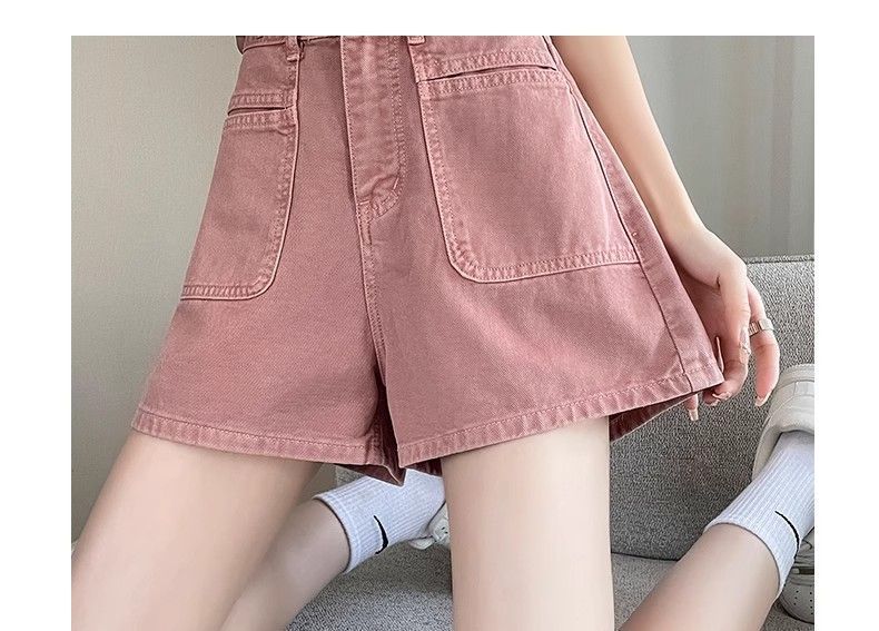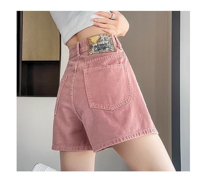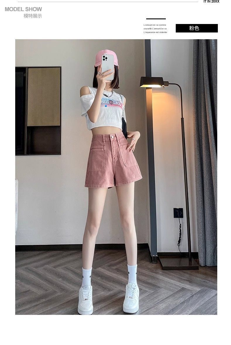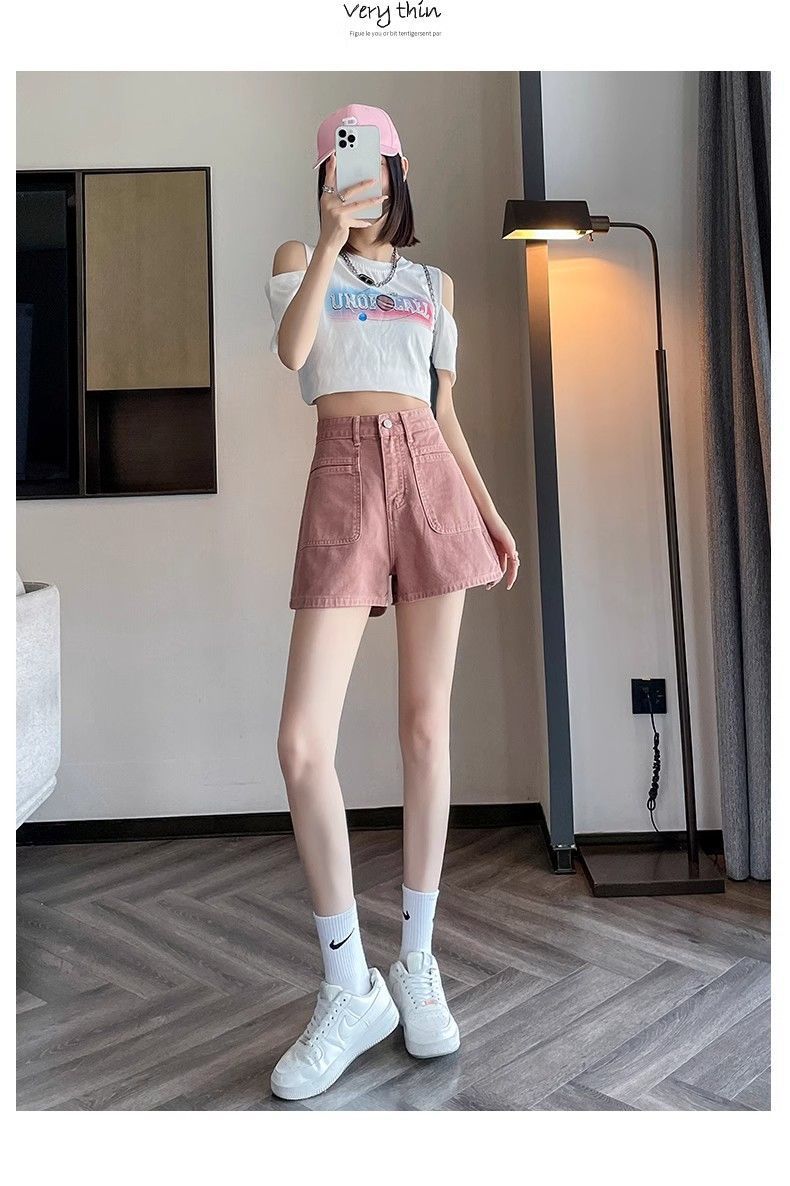 Shorts de mezclilla rosas para mujer Verano 2024 Nuevos Cintura alta A- Palabra Sueltos Adelgazantes Pantalones cortos para Spice Girls Ropa exterior Pantalones