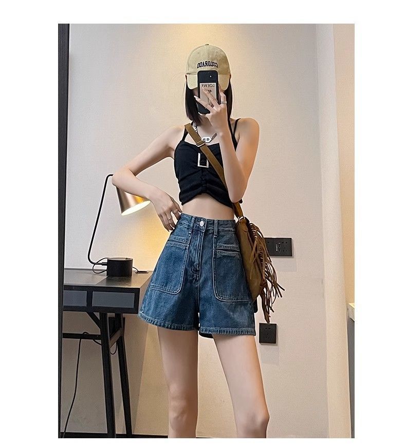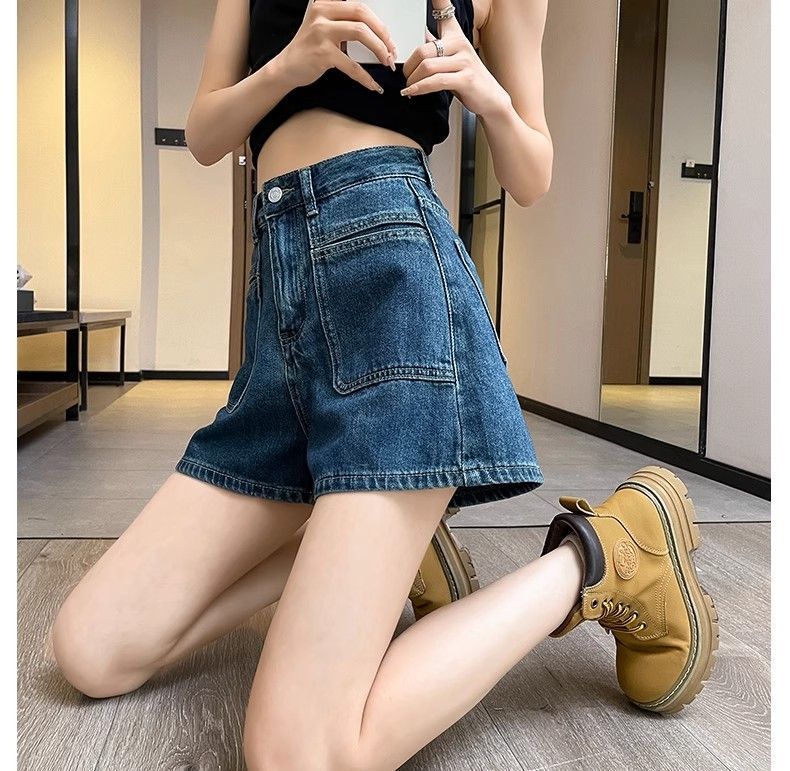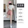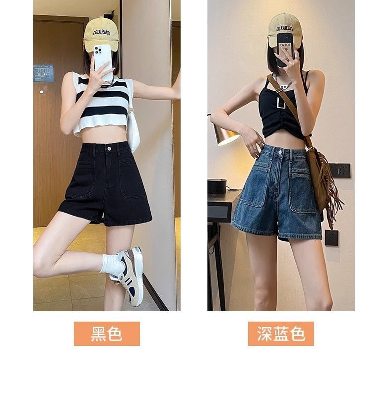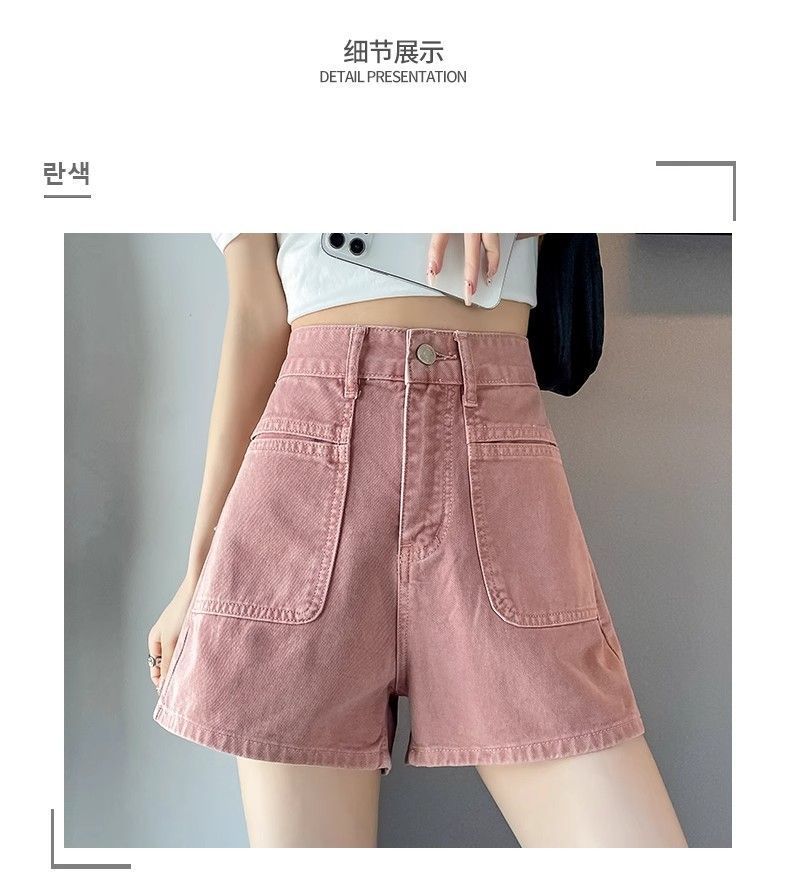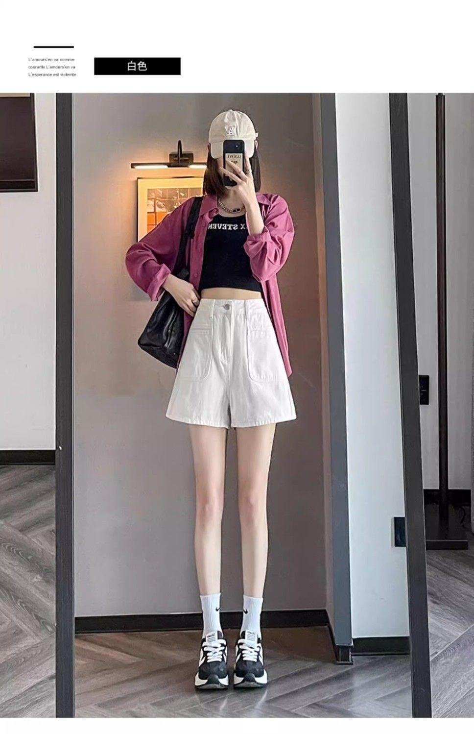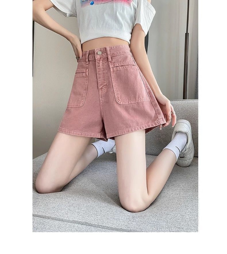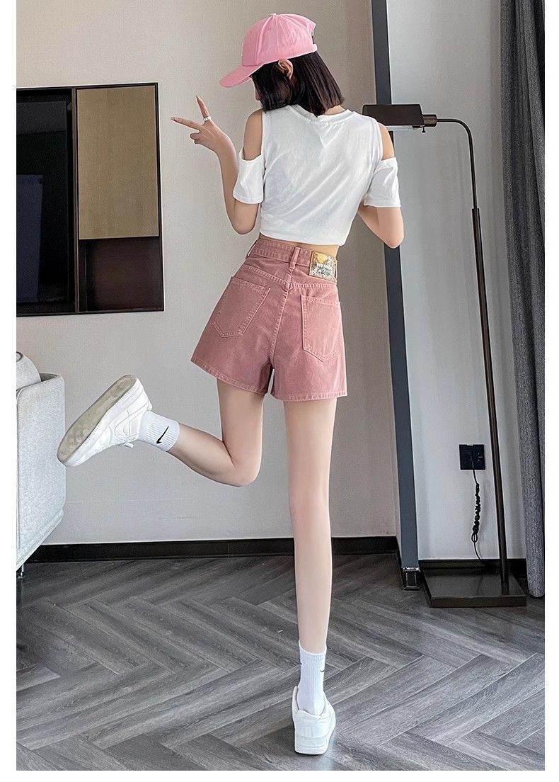 Shorts de mezclilla rosas para mujer Verano 2024 Nuevos Cintura alta A- Palabra Sueltos Adelgazantes Pantalones cortos para Spice Girls Ropa exterior Pantalones