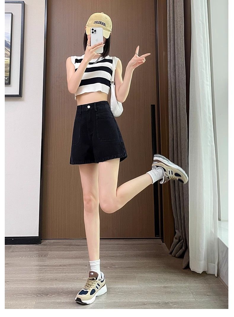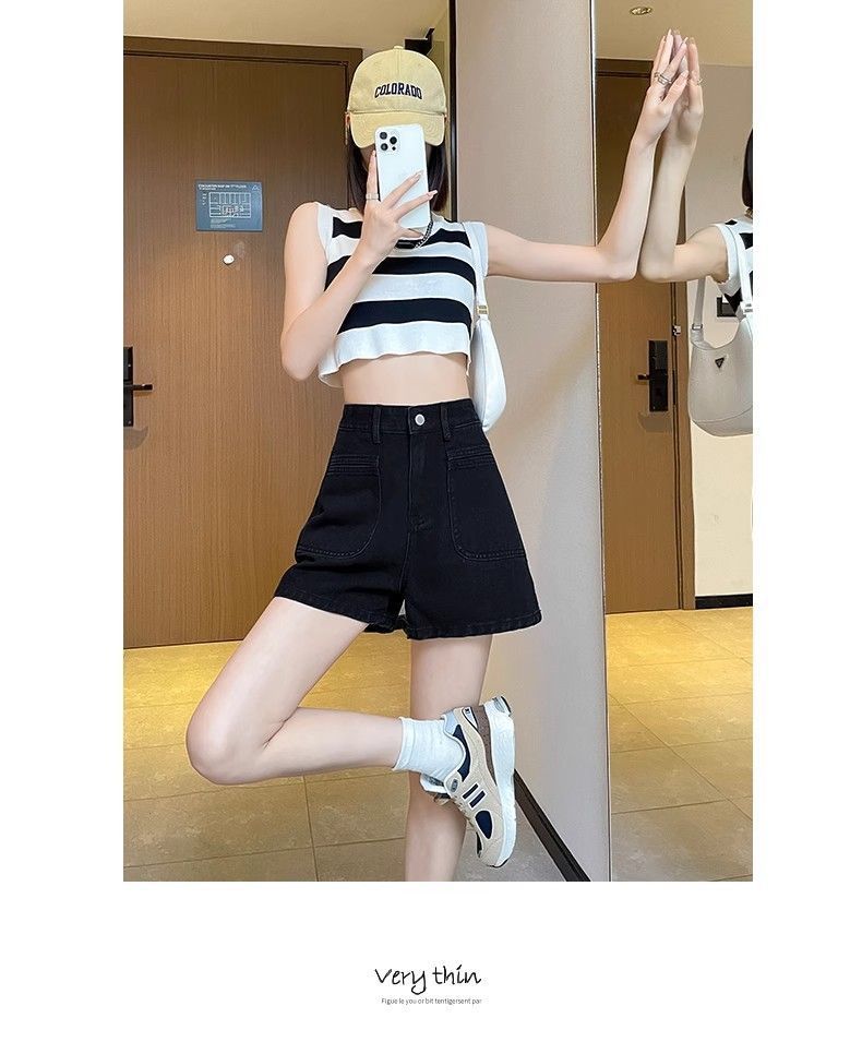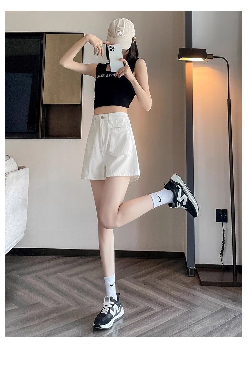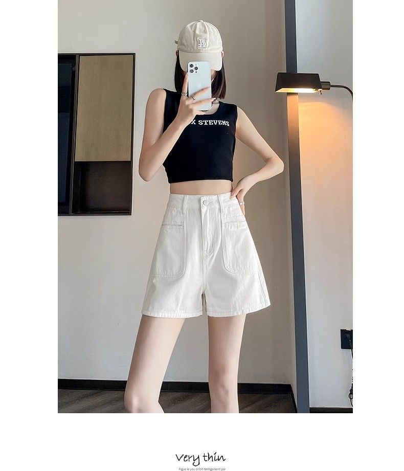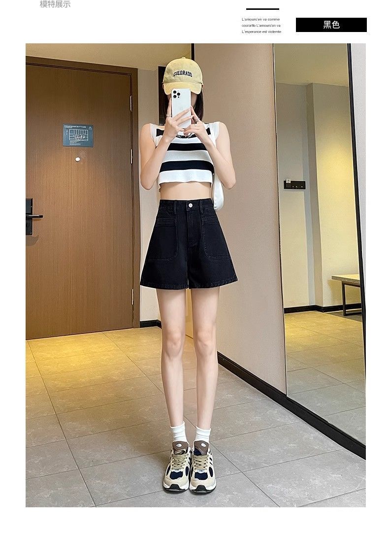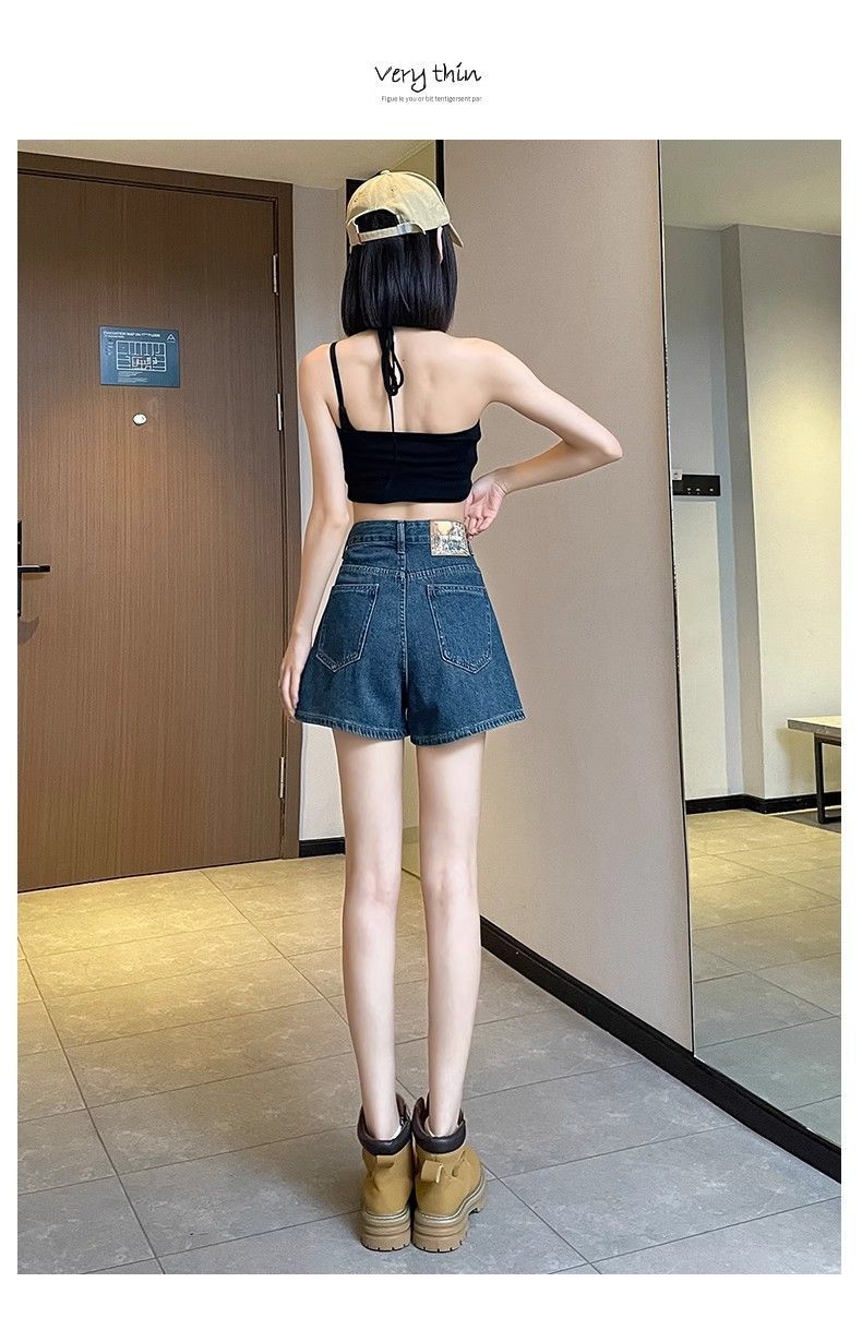Shorts de mezclilla rosas para mujer Verano 2024 Nuevos Cintura alta A- Palabra Sueltos Adelgazantes Pantalones cortos para Spice Girls Ropa exterior Pantalones