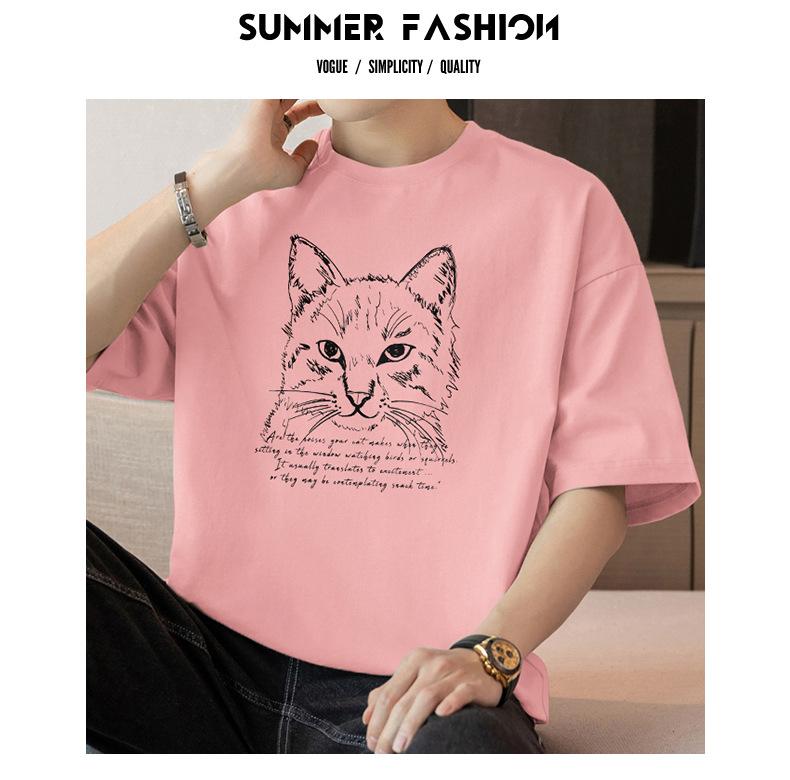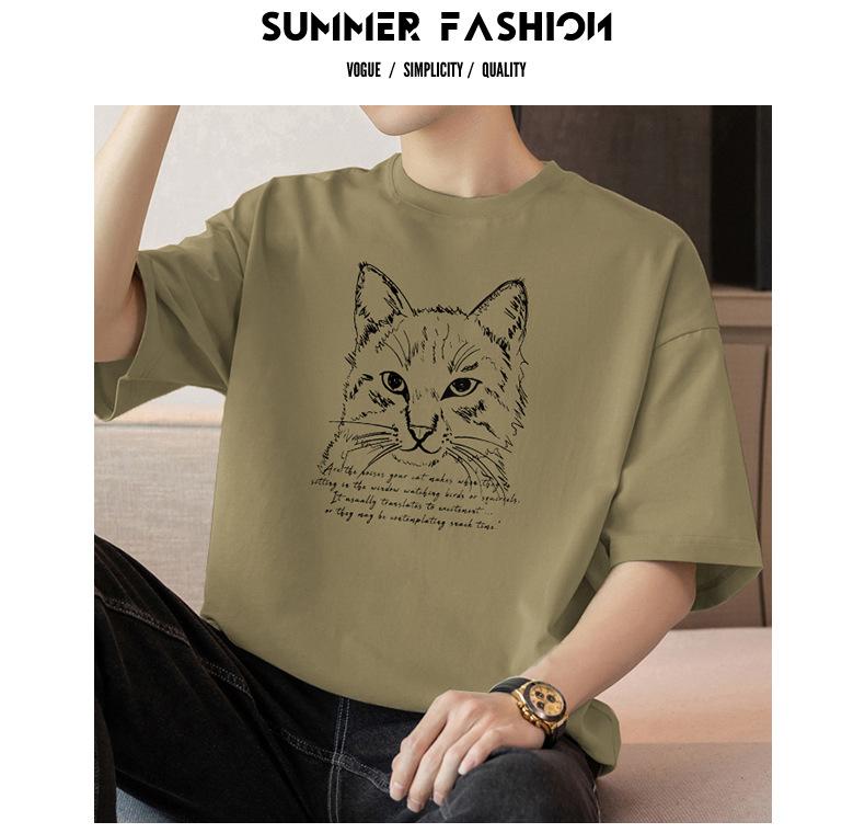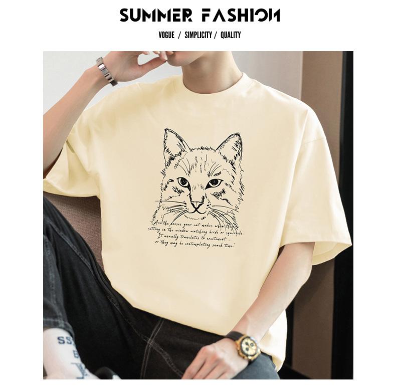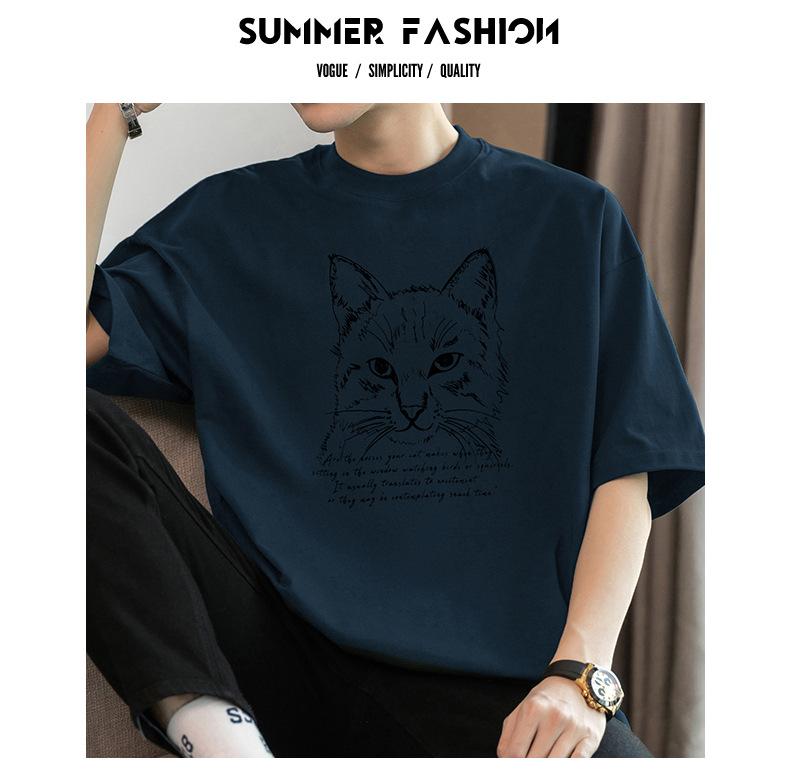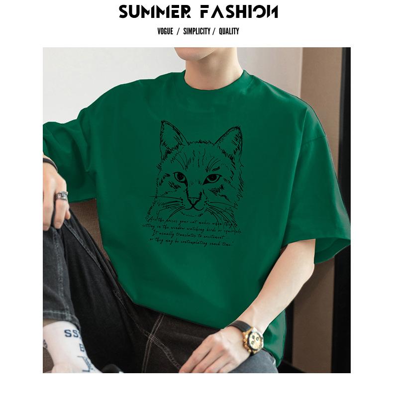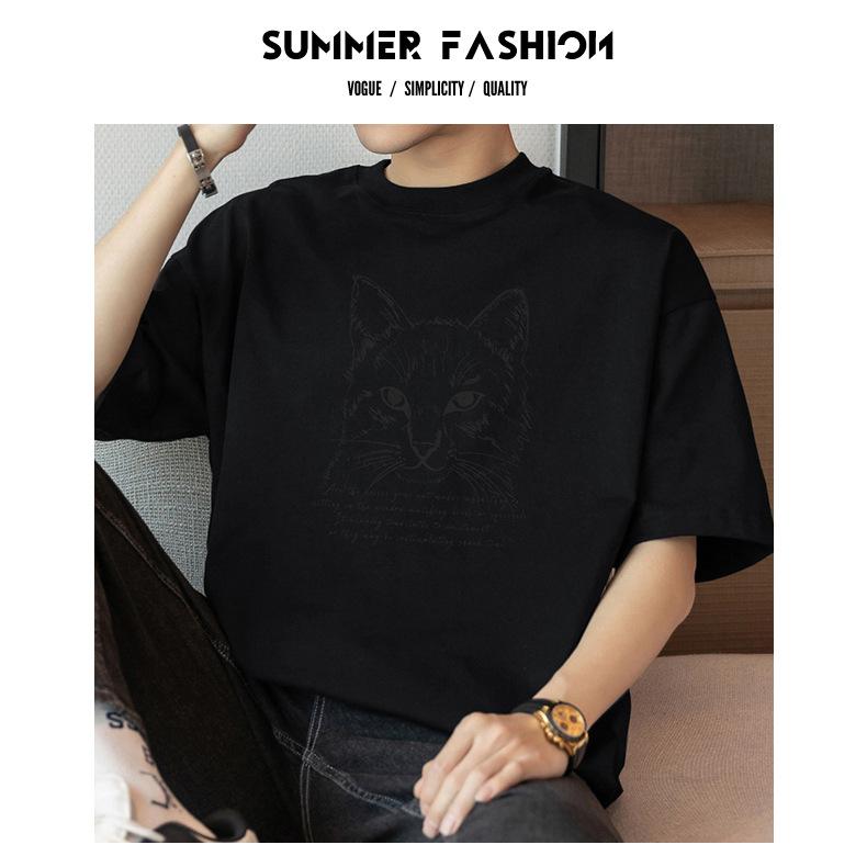 Camiseta de manga corta de algodón pesado de 260 g para hombre, cuello redondo, marca de moda, verano, media manga