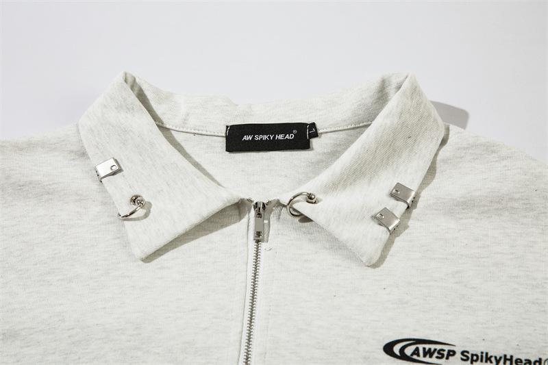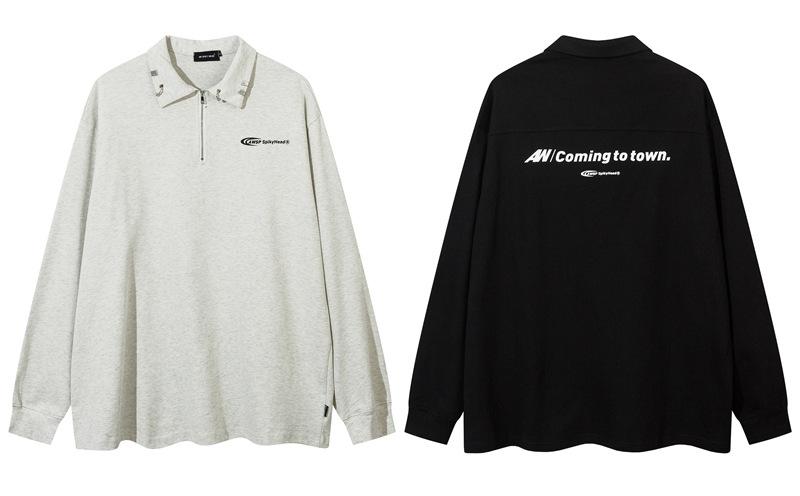 Polo Retro de Estilo Americano con Media Cremallera y Hebilla Metálica para Hombre y Mujer, Suelto Casual para Combinar con Todo, Top para Pareja