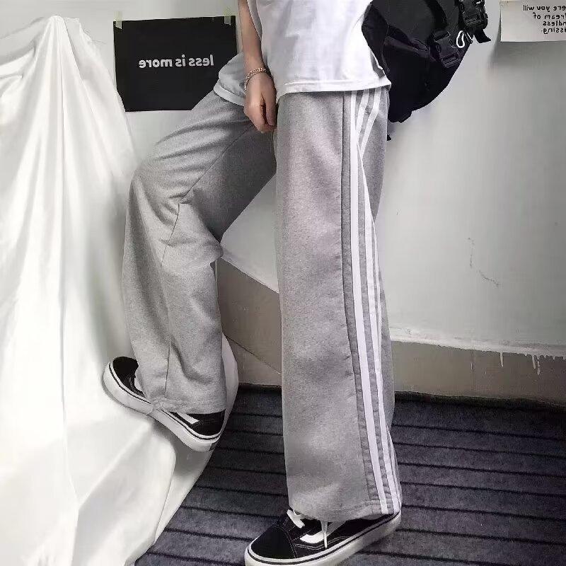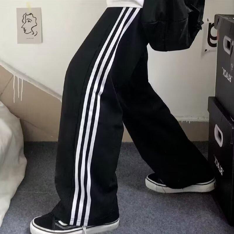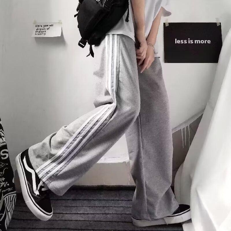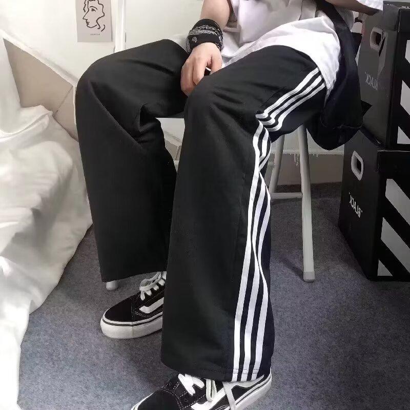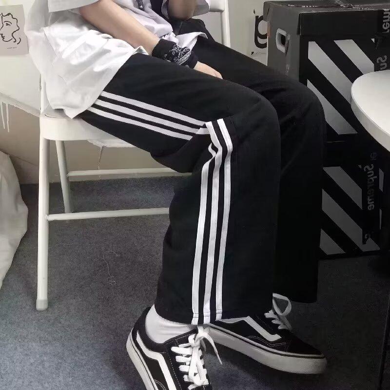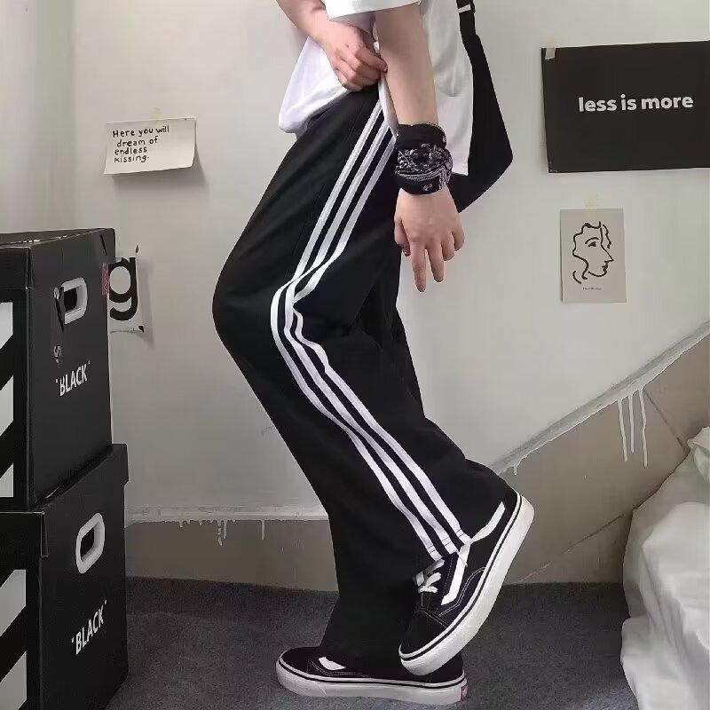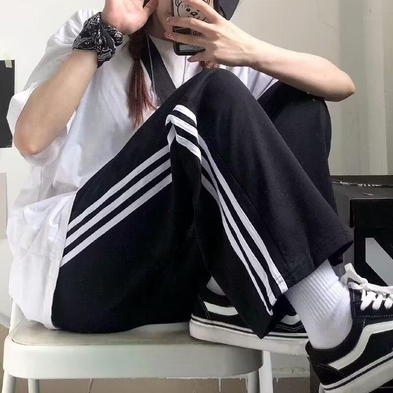Pantalones de retazos a rayas para hombres y mujeres, pantalones deportivos juveniles de estilo retro americano de verano, pantalones casuales holgados de pierna ancha y tubo recto.
