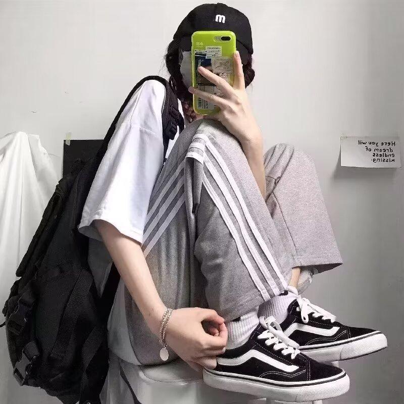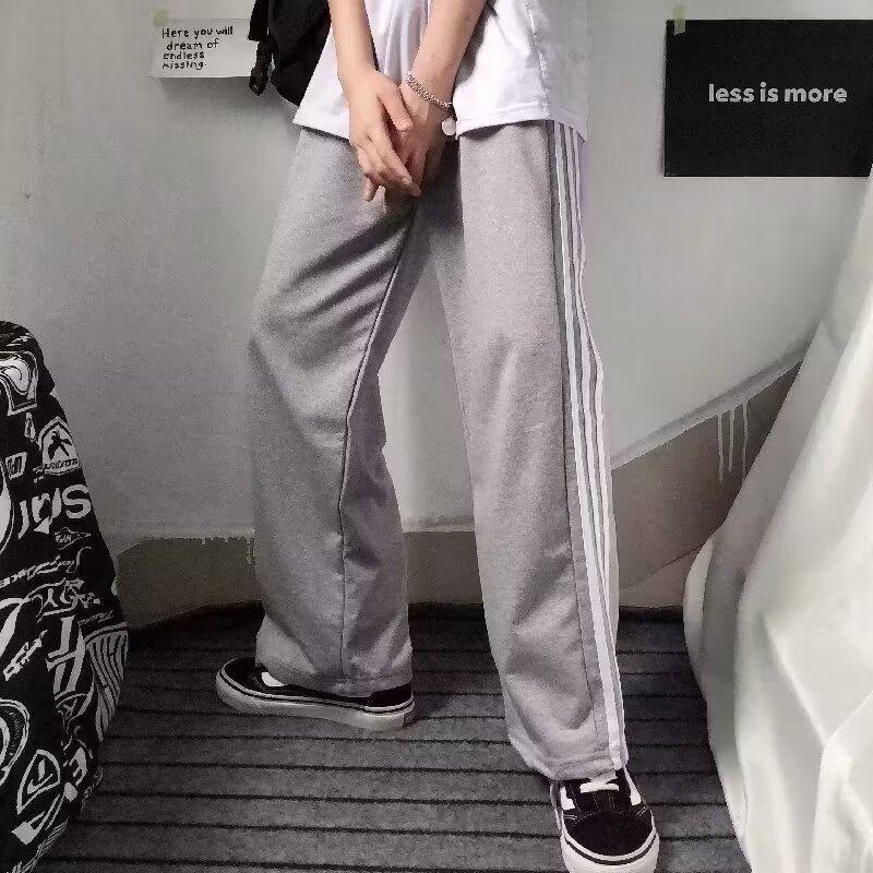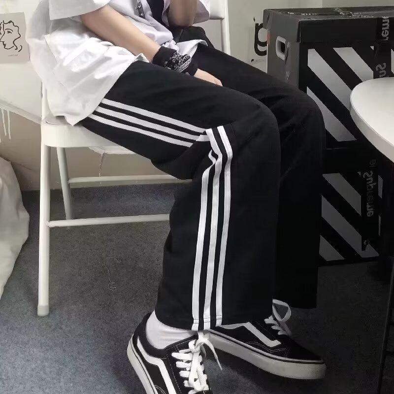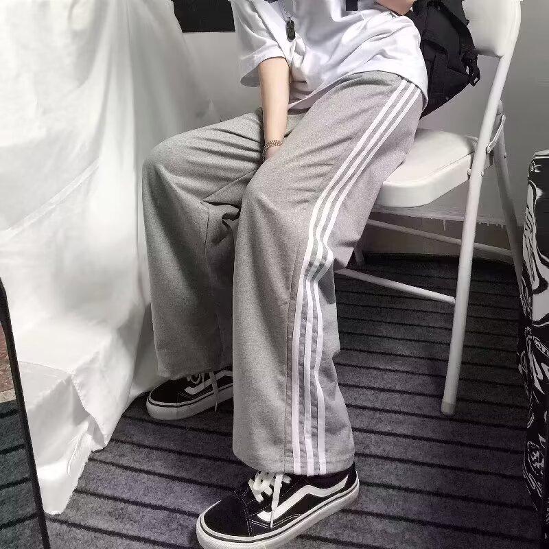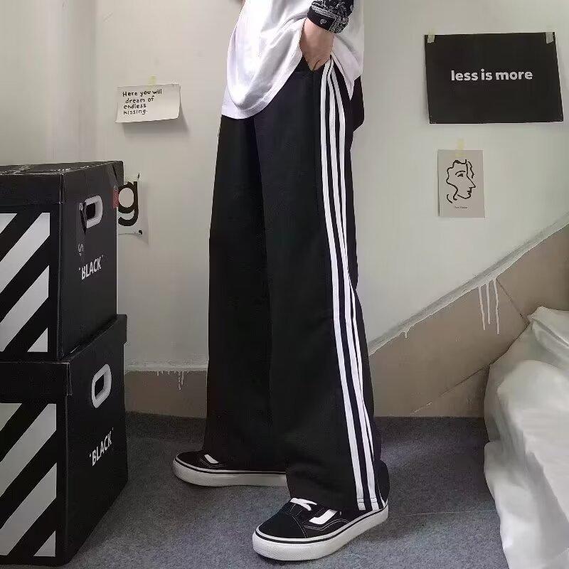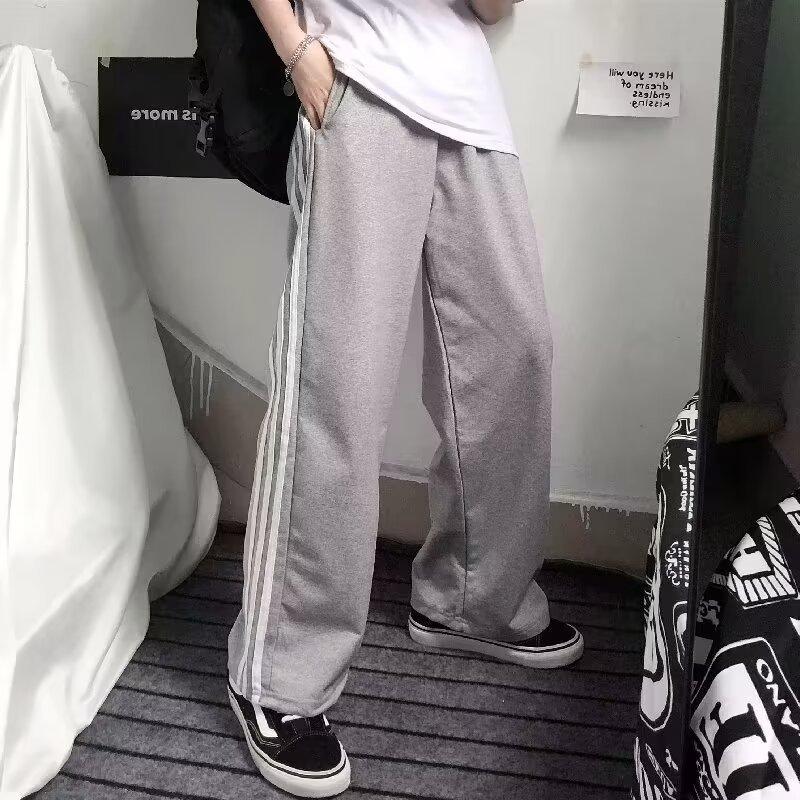 Pantalones de retazos a rayas para hombres y mujeres, pantalones deportivos juveniles de estilo retro americano de verano, pantalones casuales holgados de pierna ancha y tubo recto.