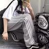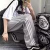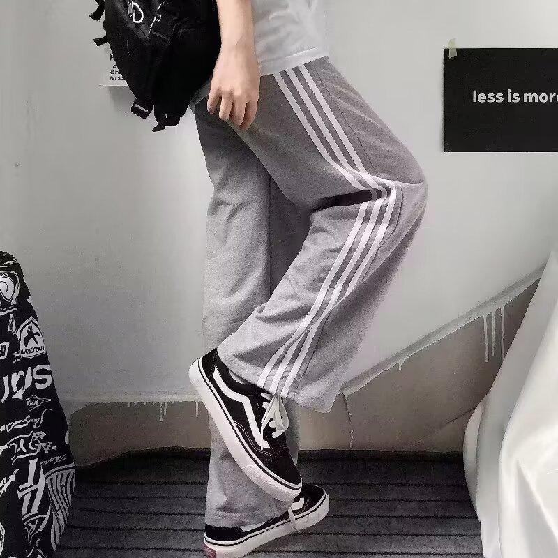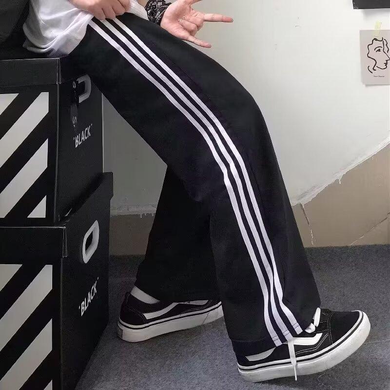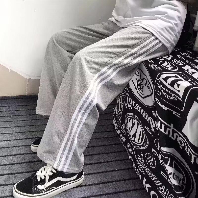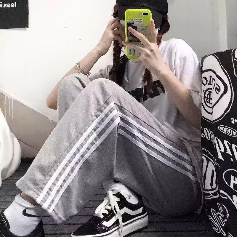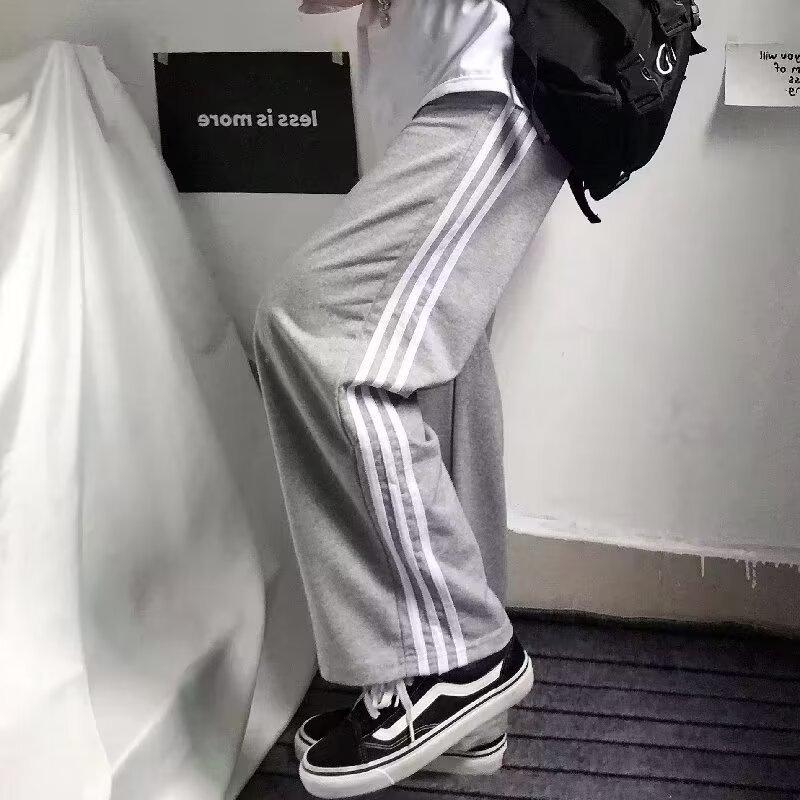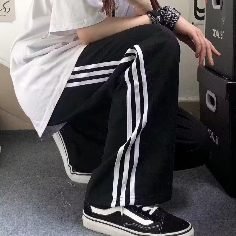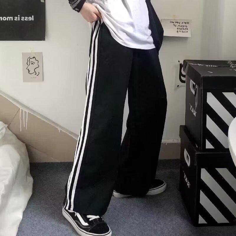 Pantalones de retazos a rayas para hombres y mujeres, pantalones deportivos juveniles de estilo retro americano de verano, pantalones casuales holgados de pierna ancha y tubo recto.