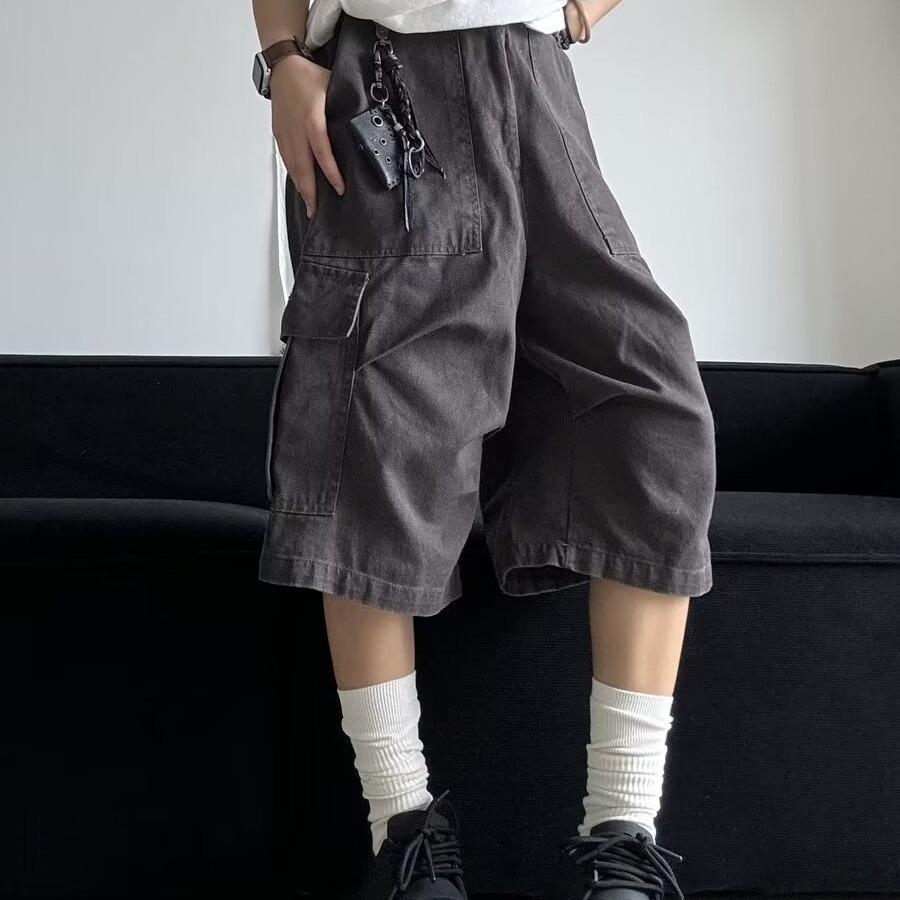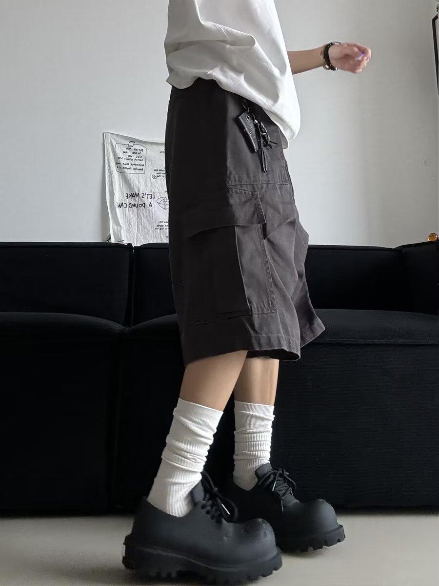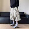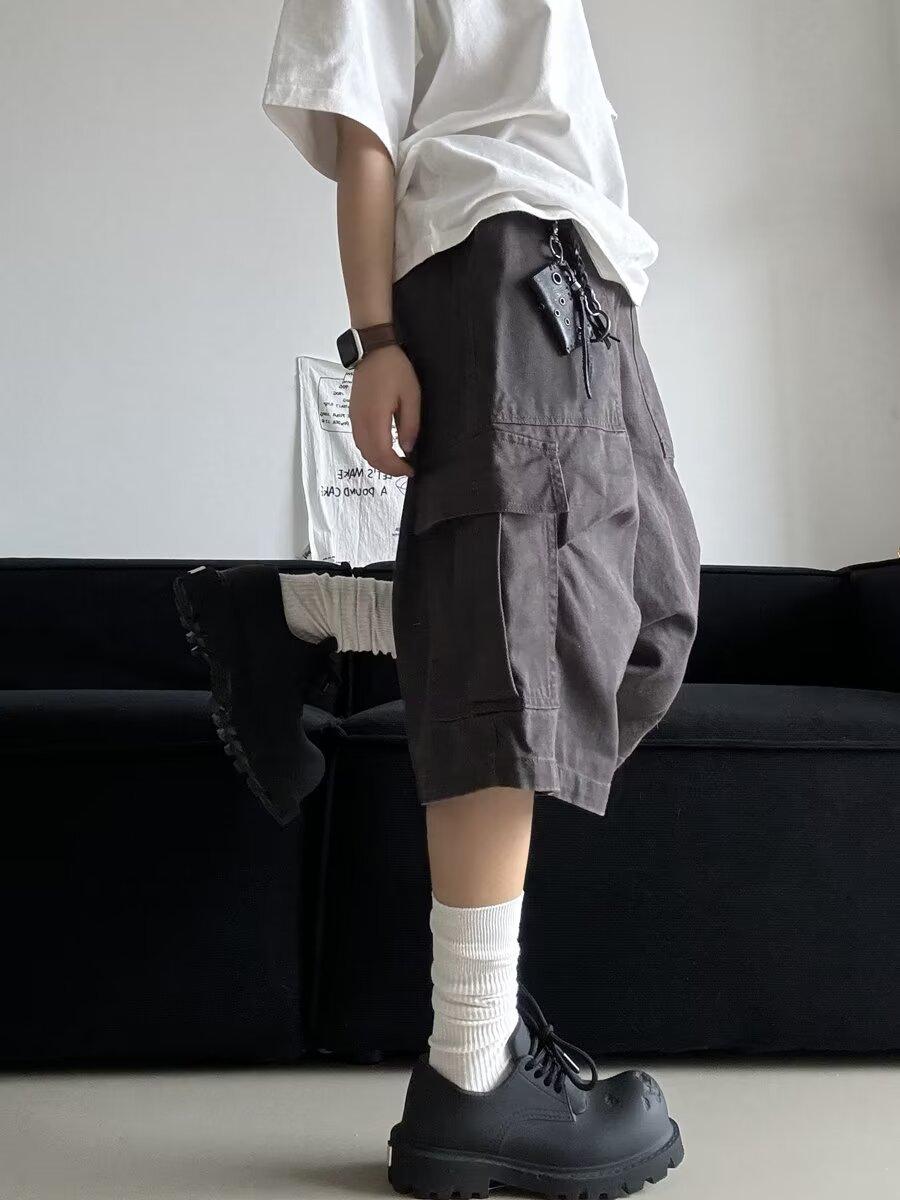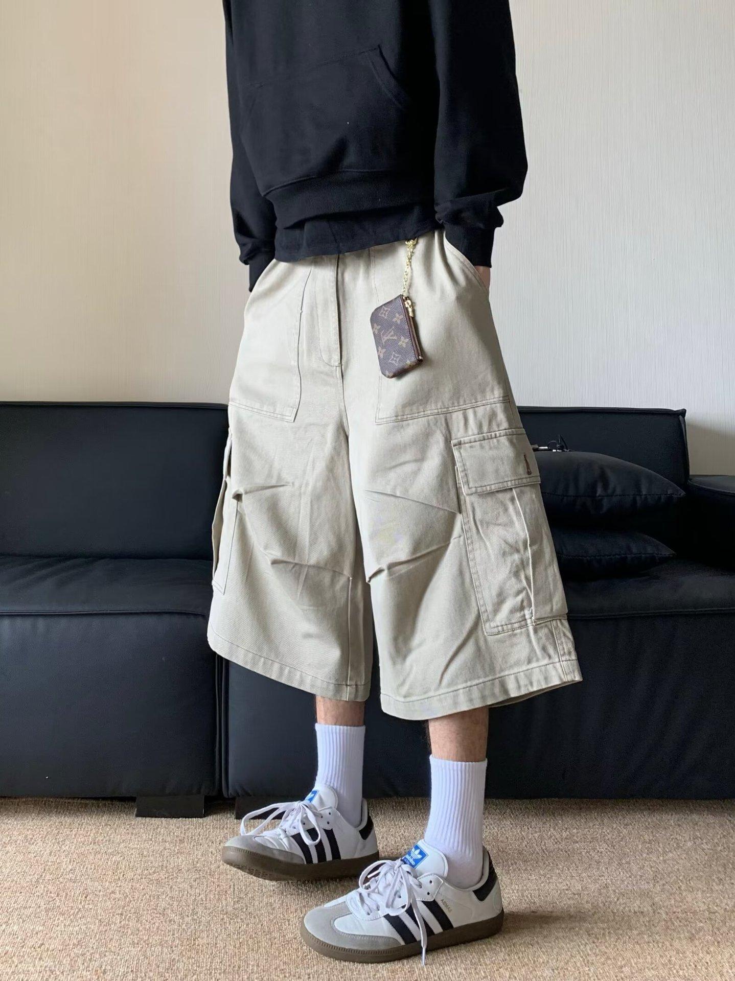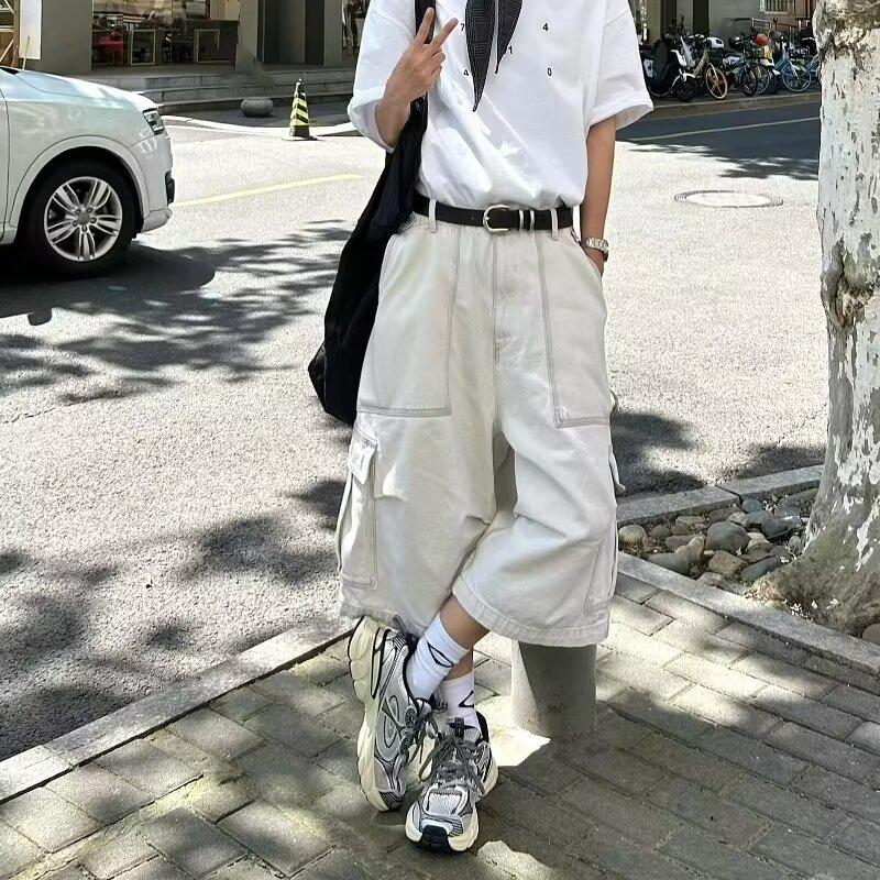 Pantalones cortos estilo americano retro con bolsillos grandes para hombres y mujeres, pantalones casuales holgados de pierna ancha de marca de moda urbana de verano.