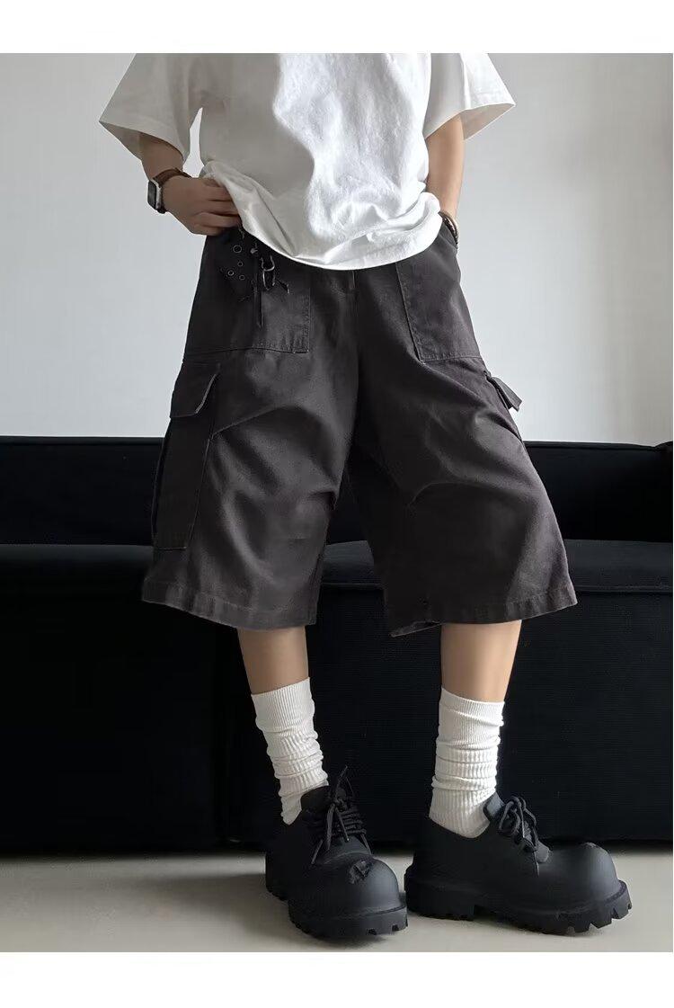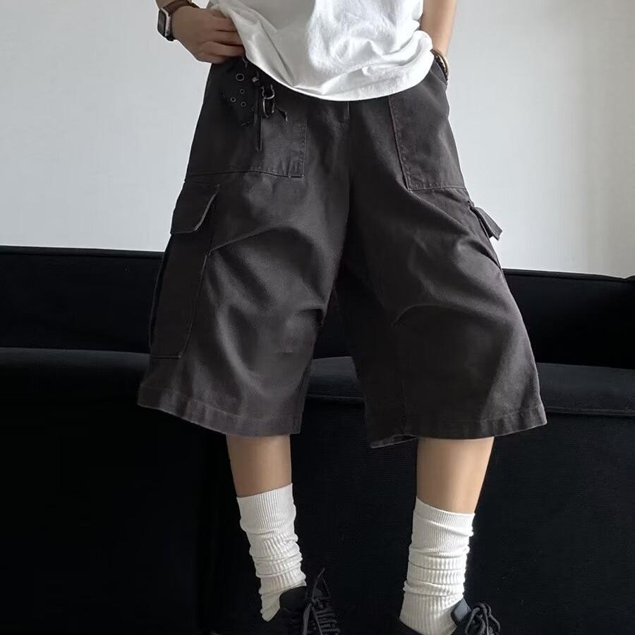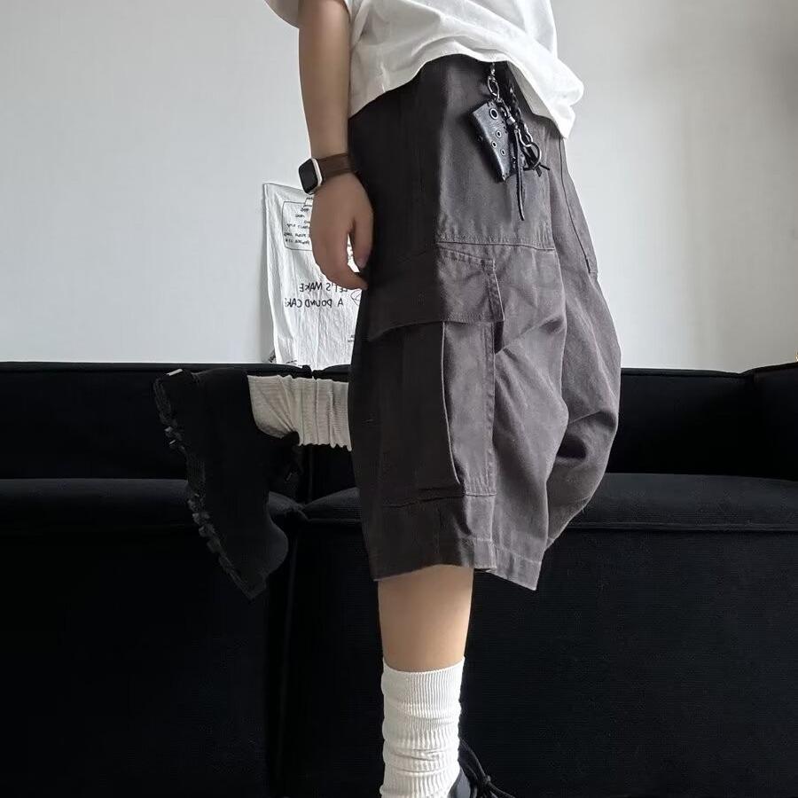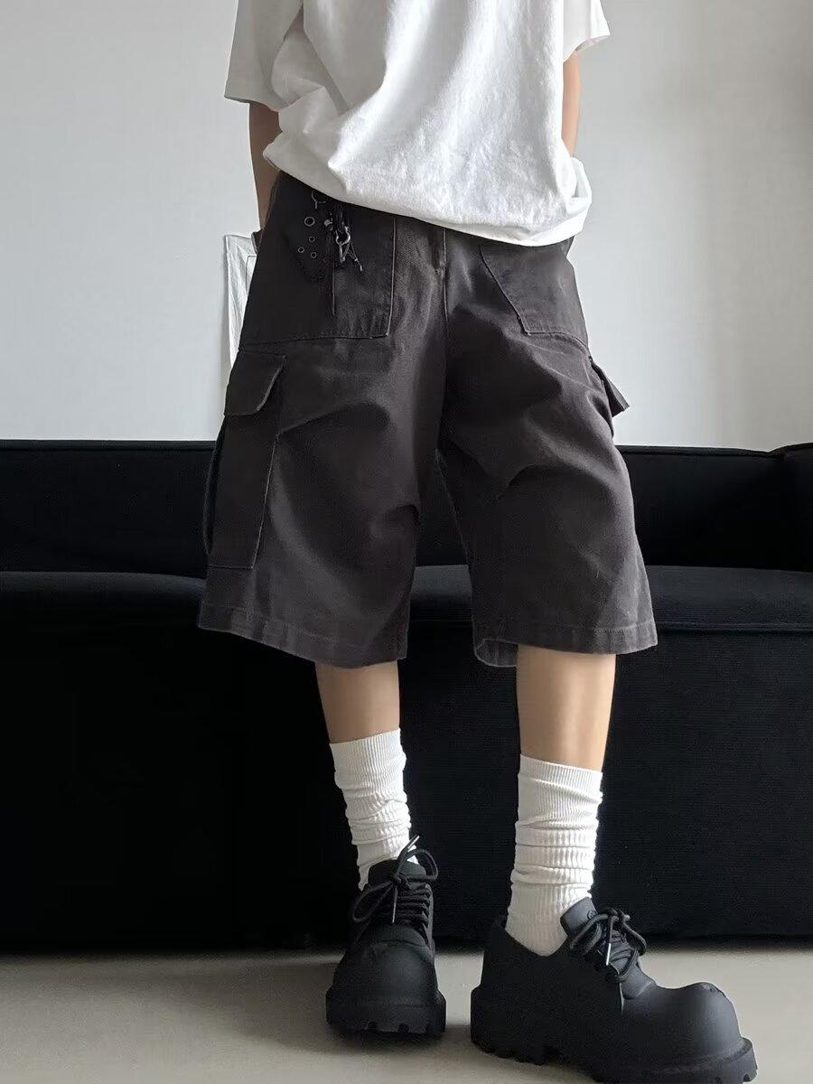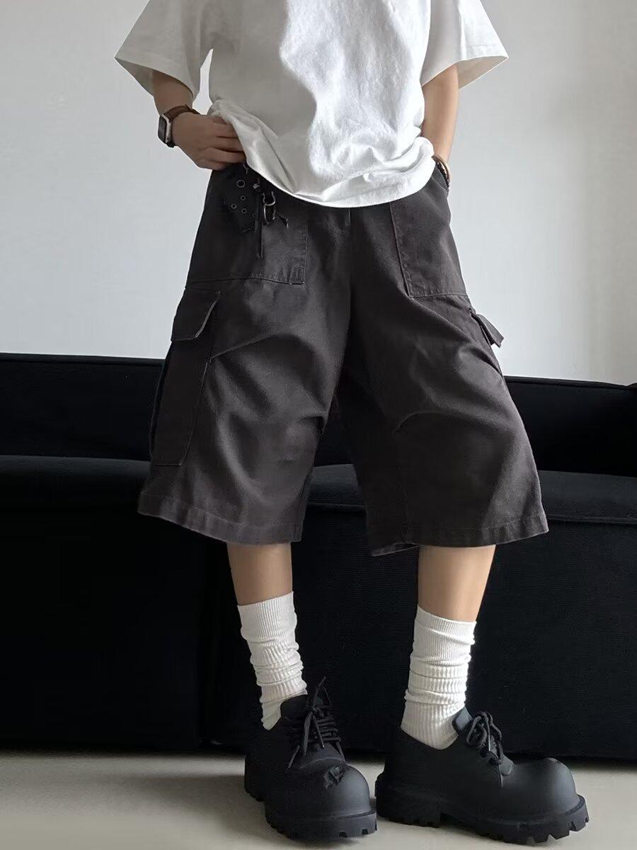 Pantalones cortos estilo americano retro con bolsillos grandes para hombres y mujeres, pantalones casuales holgados de pierna ancha de marca de moda urbana de verano.