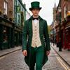 Nuevo Estilo Irlandés Europeo y Americano Pajarita Frac Ropa Medieval Retro Abrigo Punk de Longitud Media Disfraz de Fiesta y Performance
