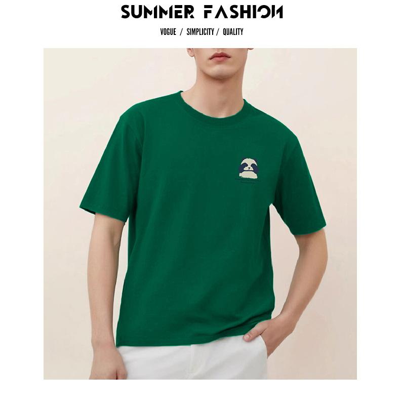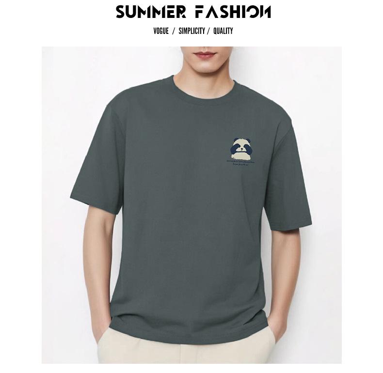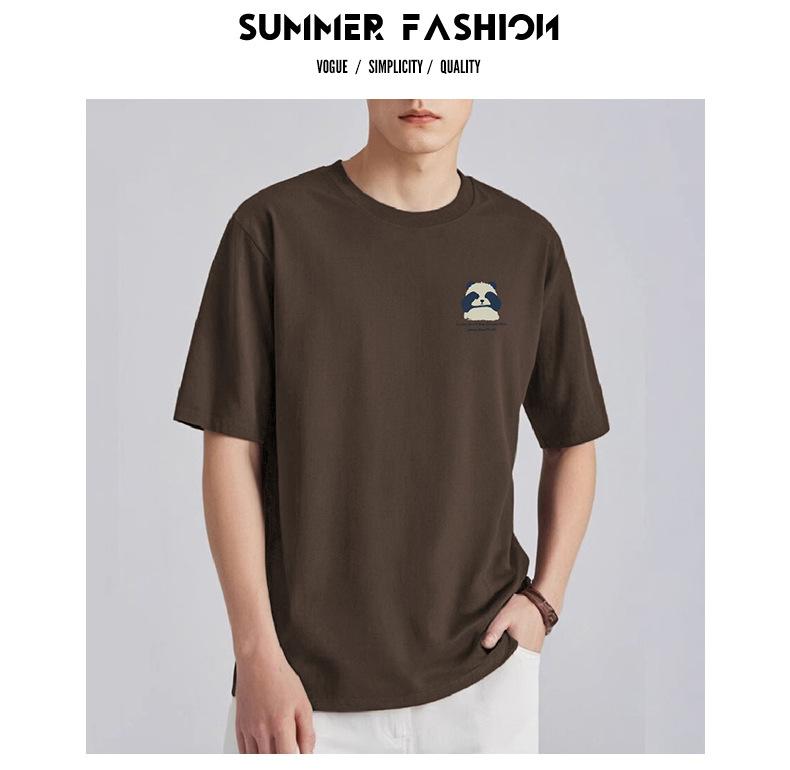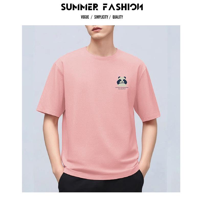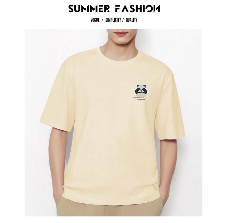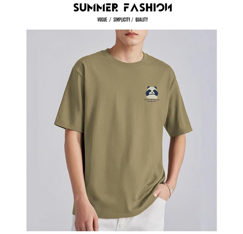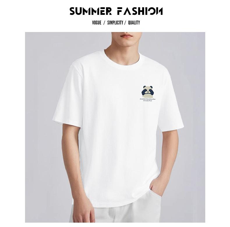 Camiseta Americana de Algodón Pesado de 260g para Hombre de Manga Corta y Cuello Redondo Ropa Moderna con Estampado de Oso de Media Manga Camiseta de Algodón