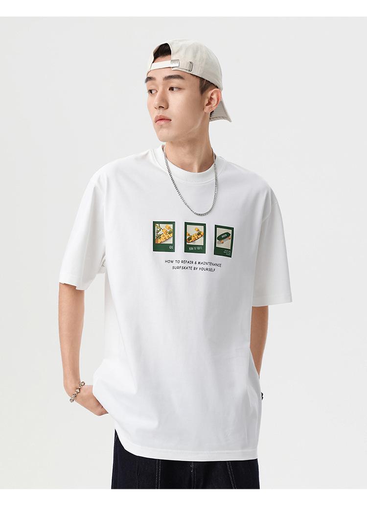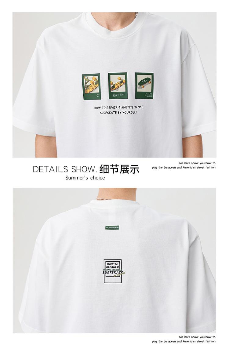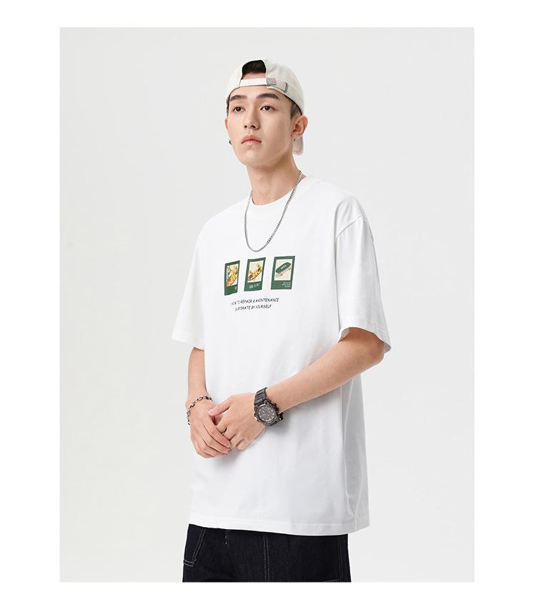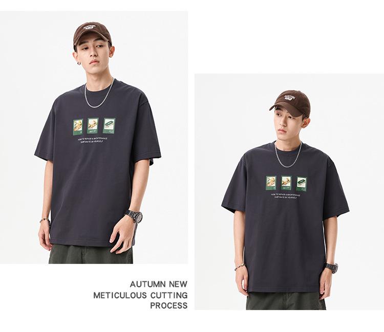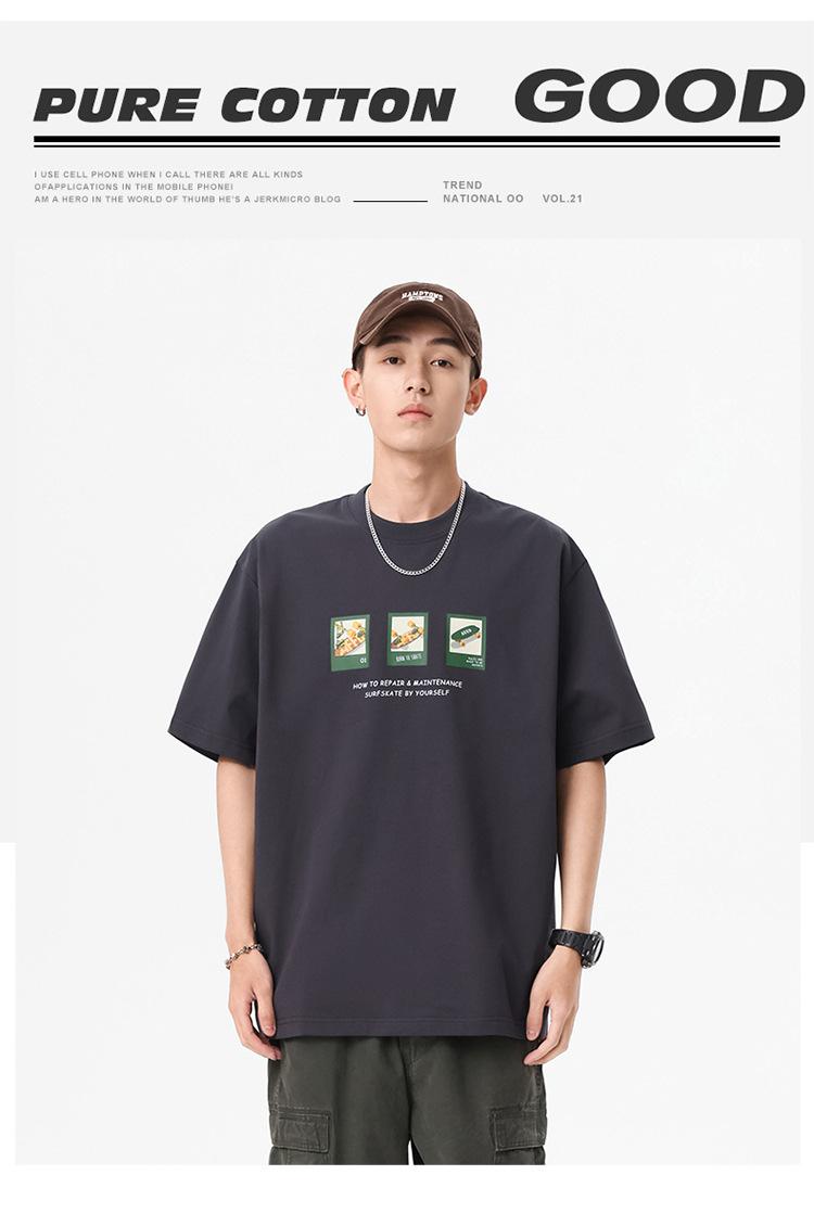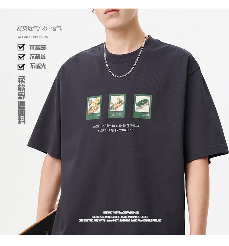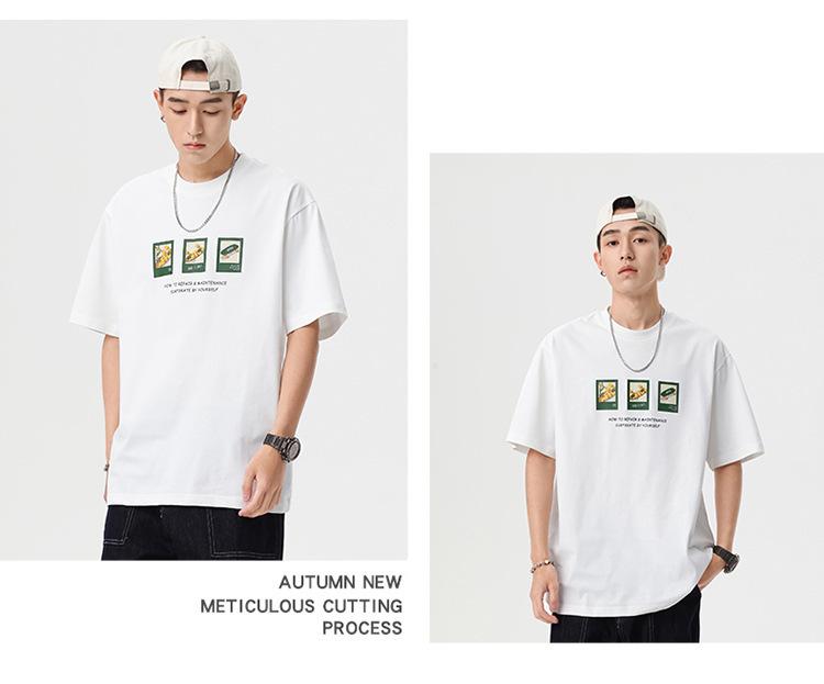 Camiseta de verano fina y pesada de manga corta para hombre, camiseta de cuello redondo que combina con todo, sencilla, informal, holgada, de talla grande, con estampado americano, de media manga