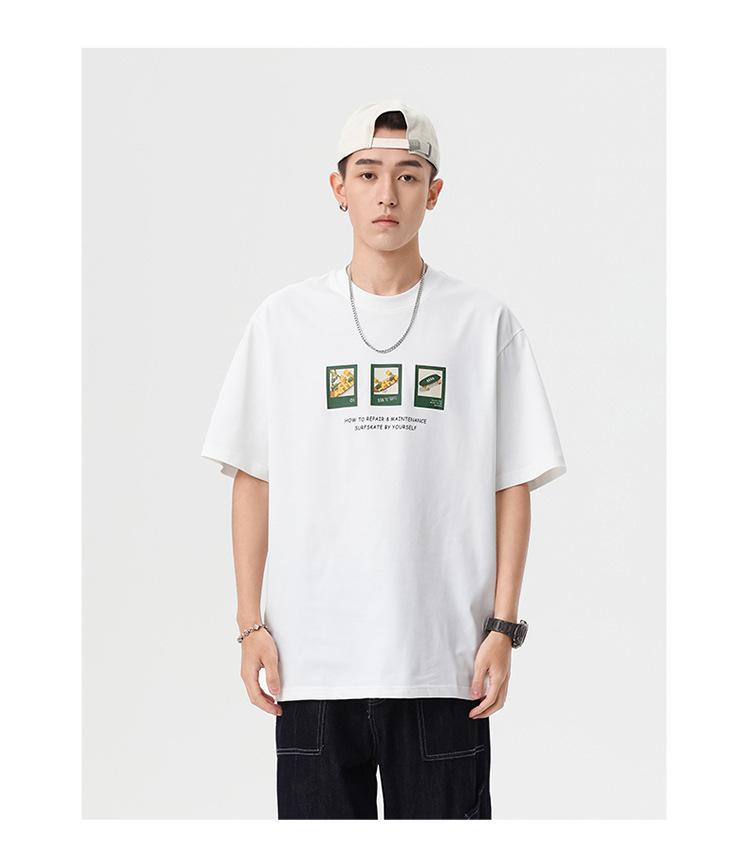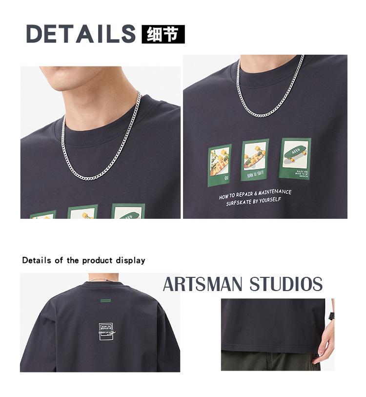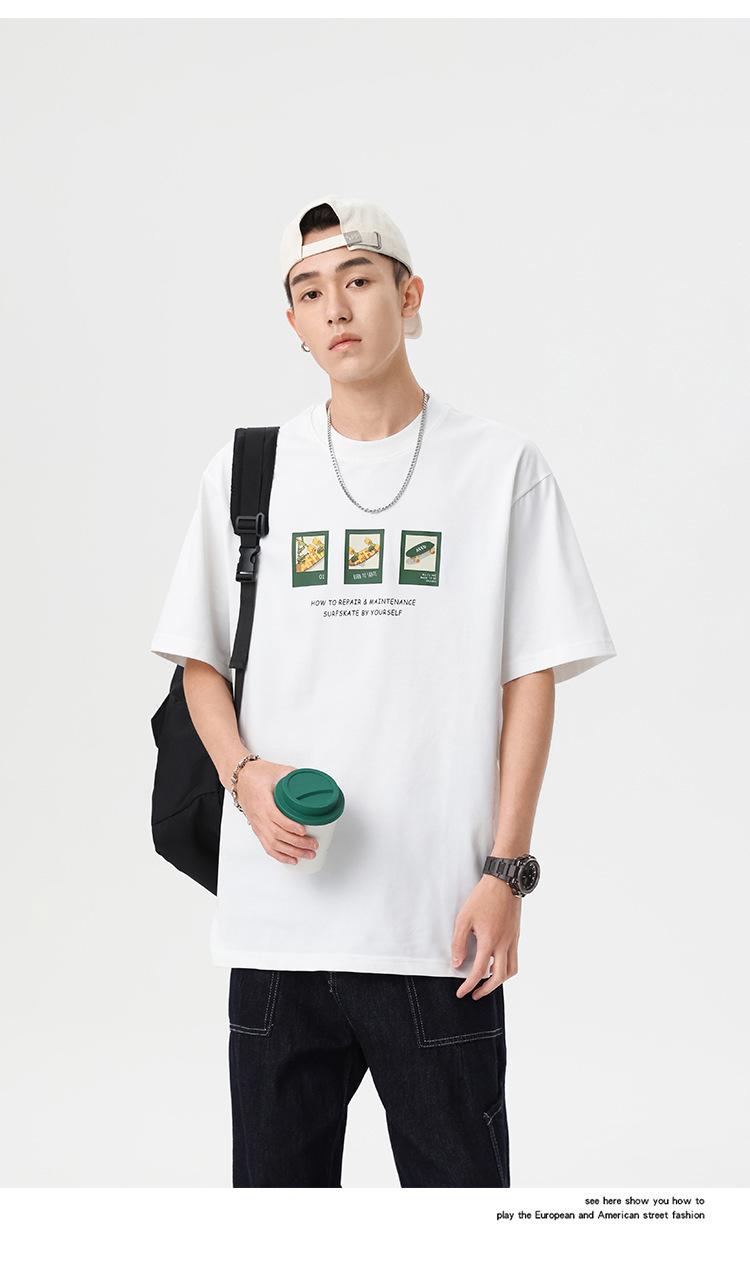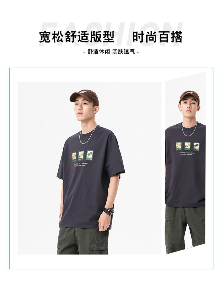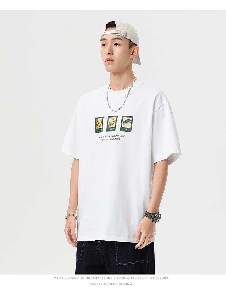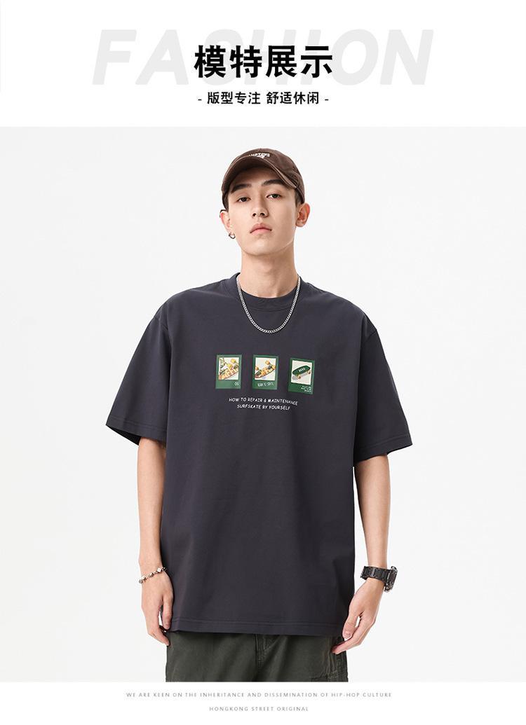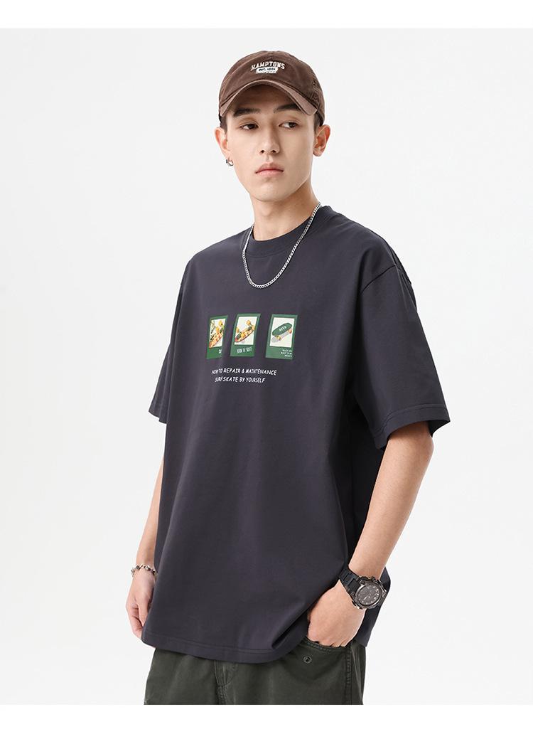 Camiseta de verano fina y pesada de manga corta para hombre, camiseta de cuello redondo que combina con todo, sencilla, informal, holgada, de talla grande, con estampado americano, de media manga