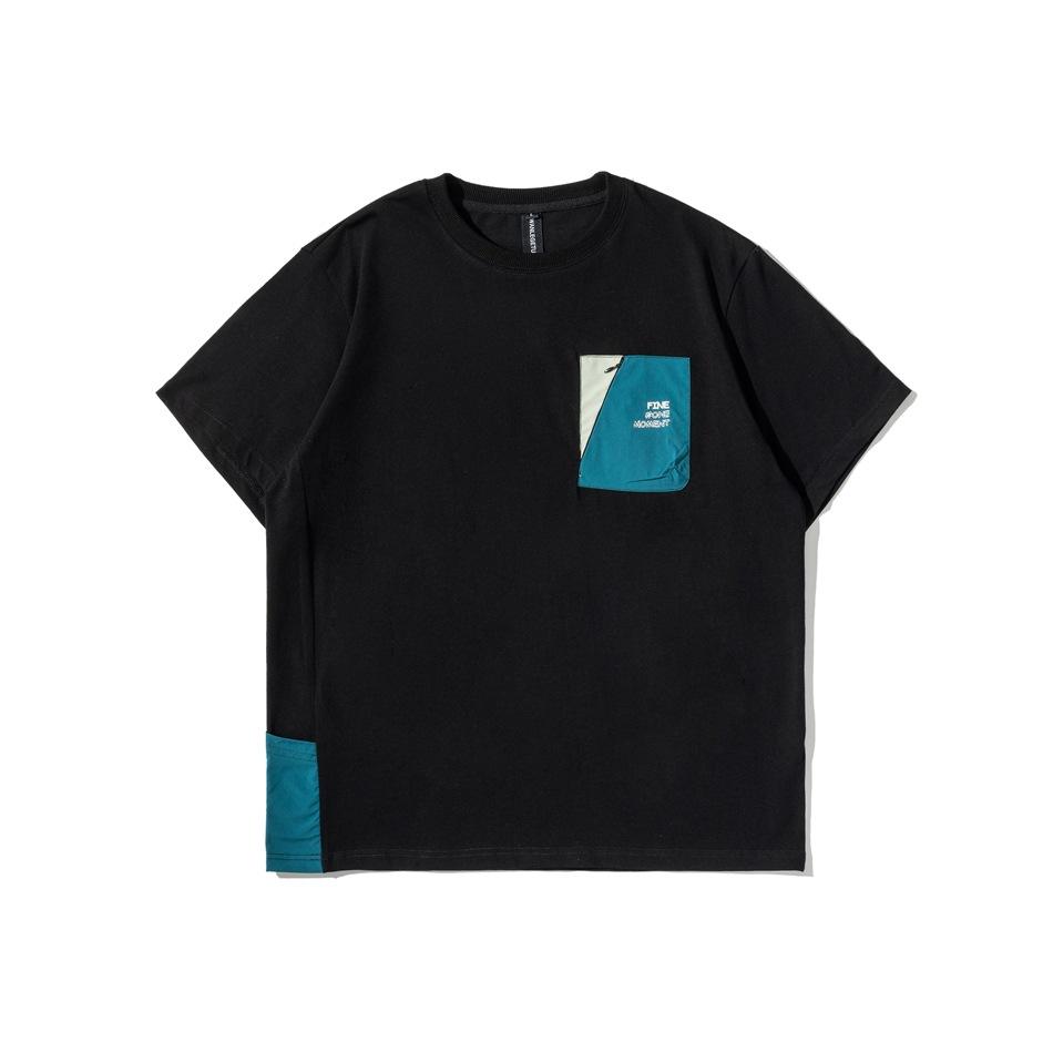 WANLEGETU Camiseta de cuello redondo con bolsillo para exteriores de montaña, camiseta holgada para hombre, camiseta de manga corta de verano a la moda T2328